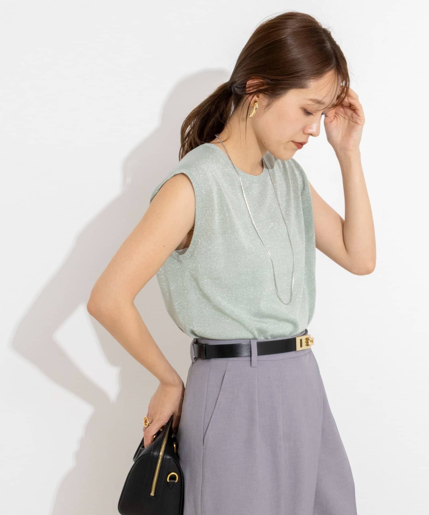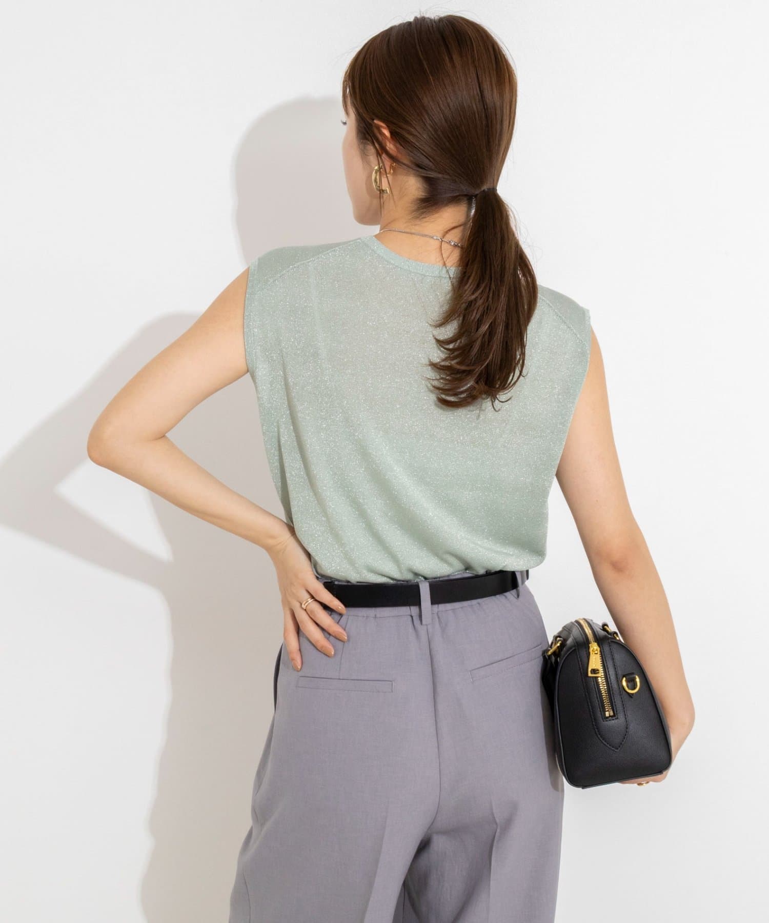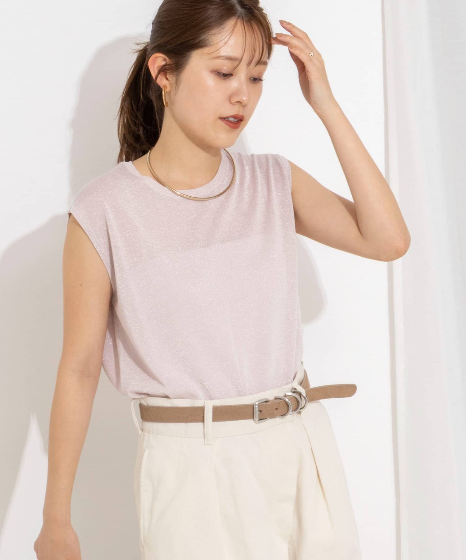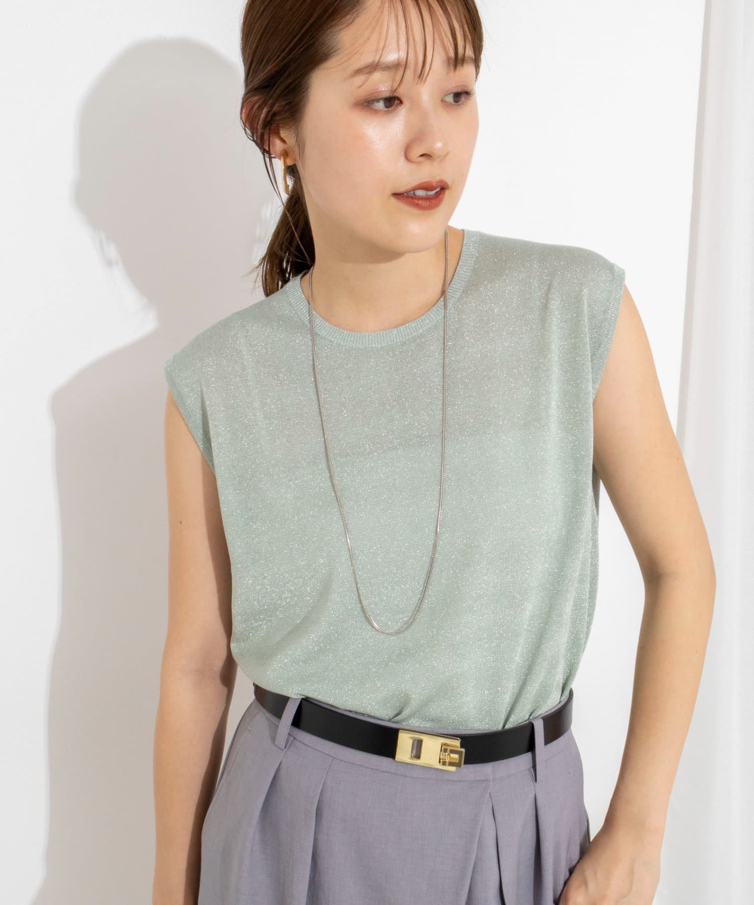 ・ラメの糸を使用したシャイニーなノースリーブプルオーバー