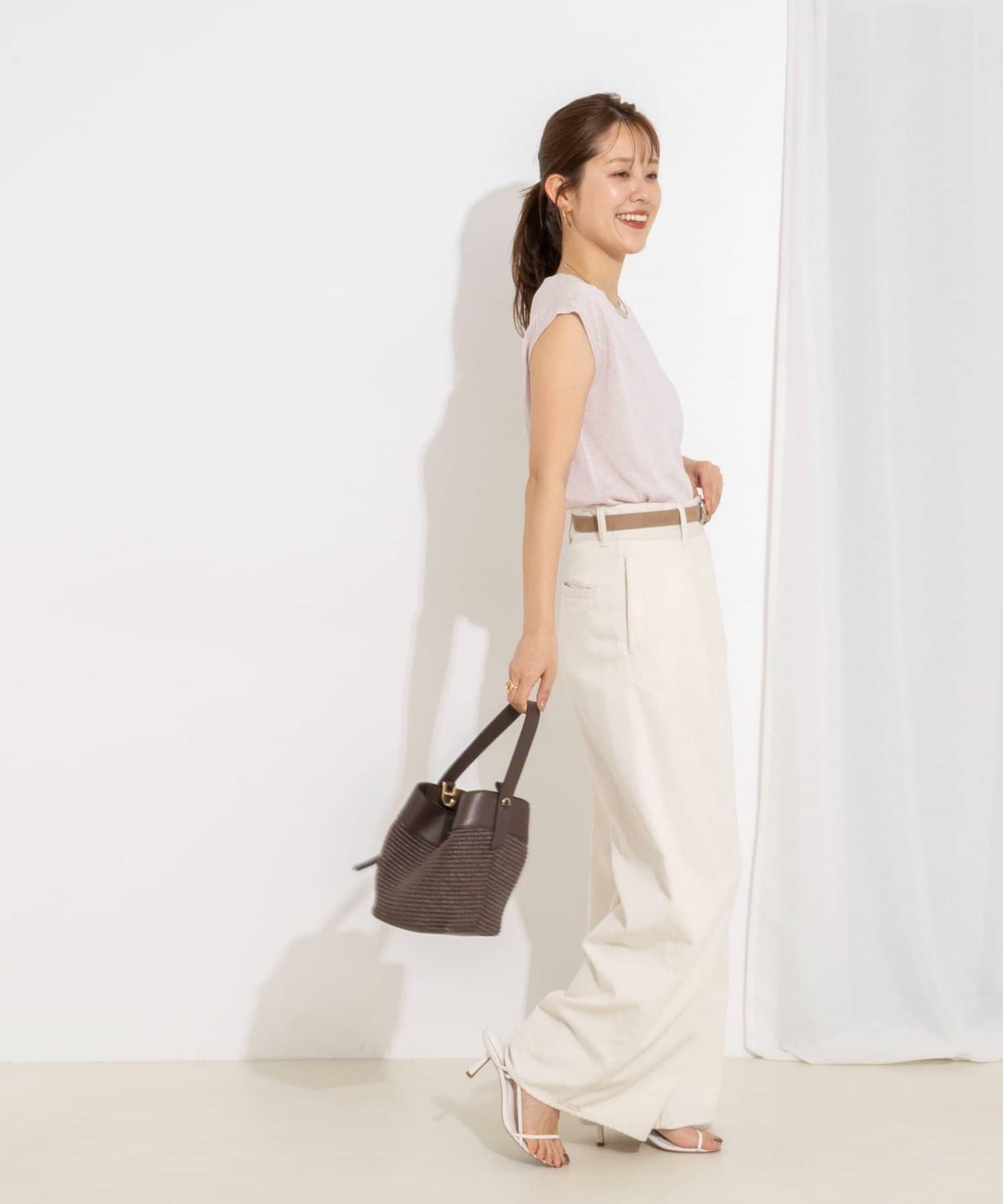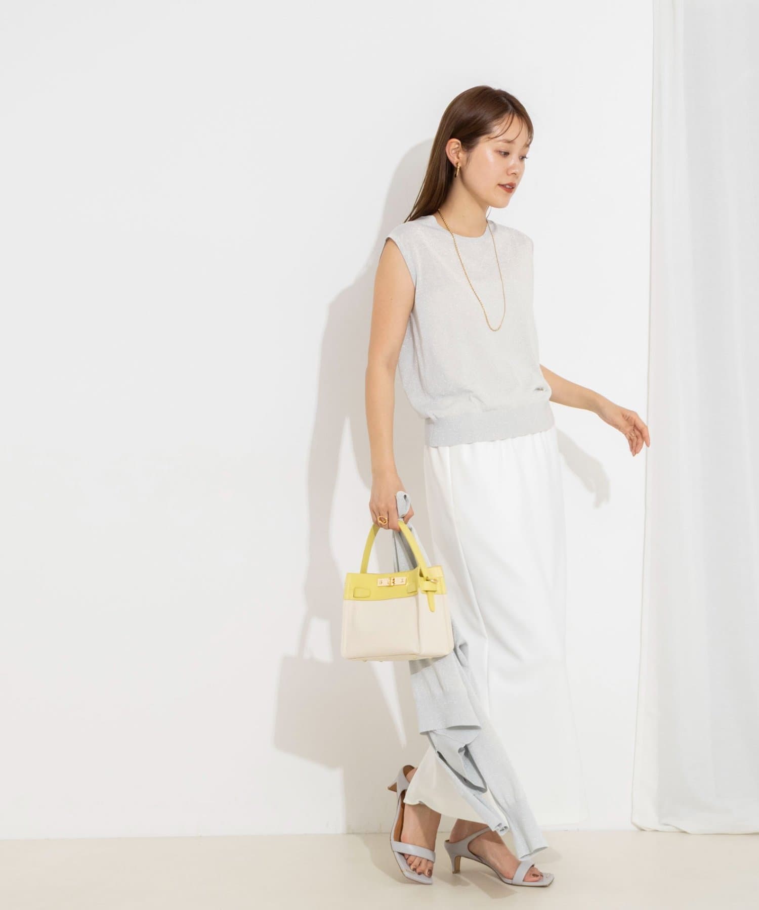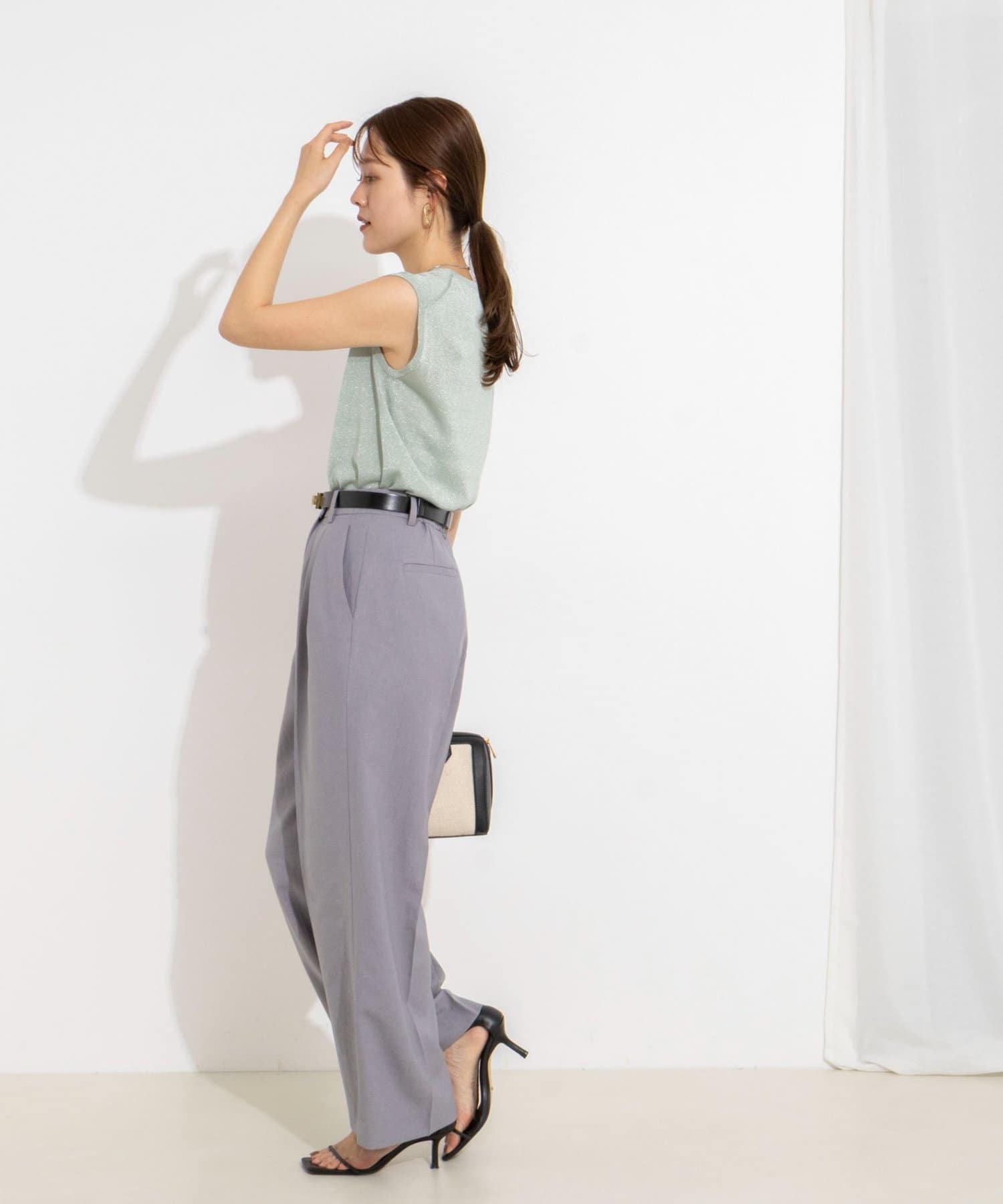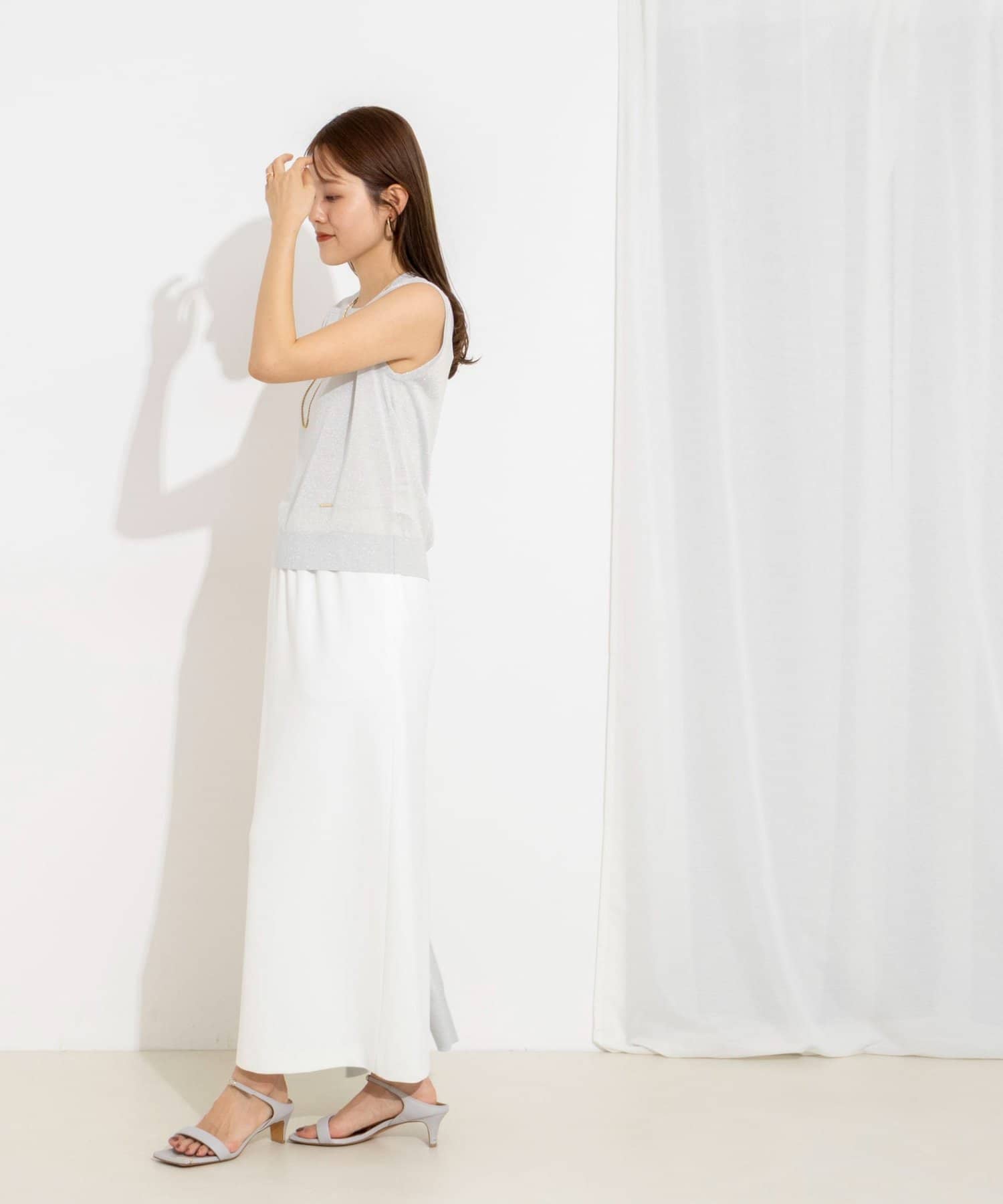 ・ラメの糸を使用したシャイニーなノースリーブプルオーバー
