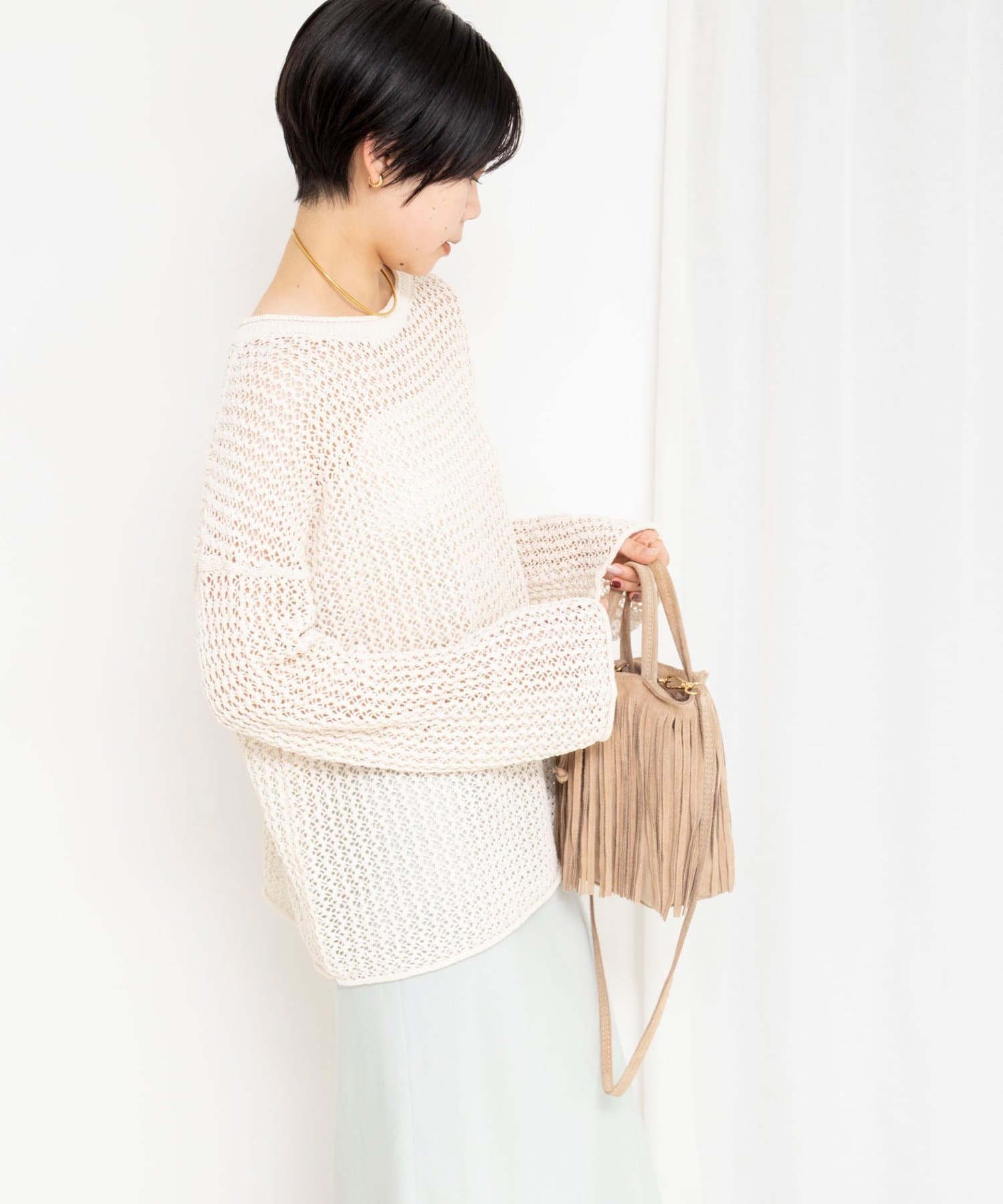 ・ルーズシルエットのメッシュ編みは、着るだけでこなれた雰囲気