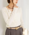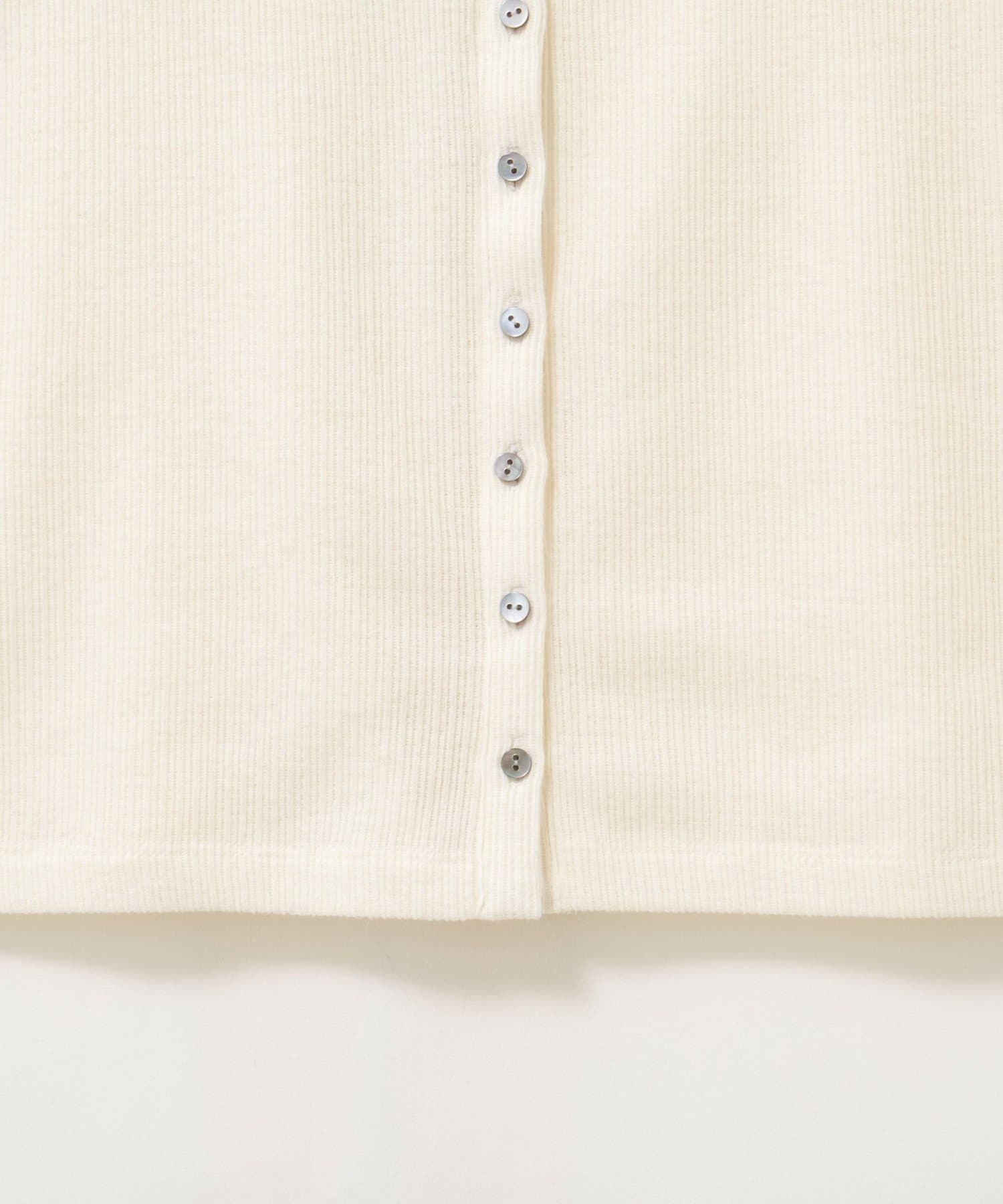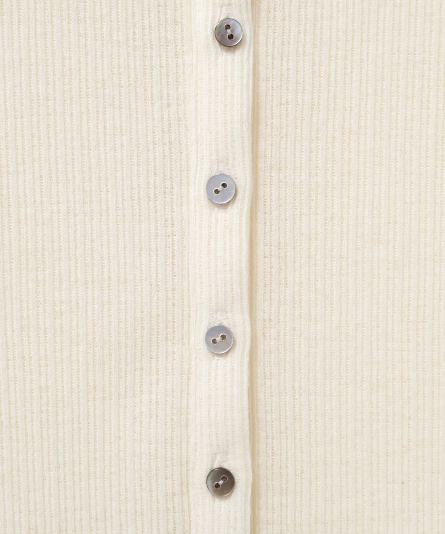 ・フロントには小さめのシェルボタンをたっぷり配置し、上品なアクセントに