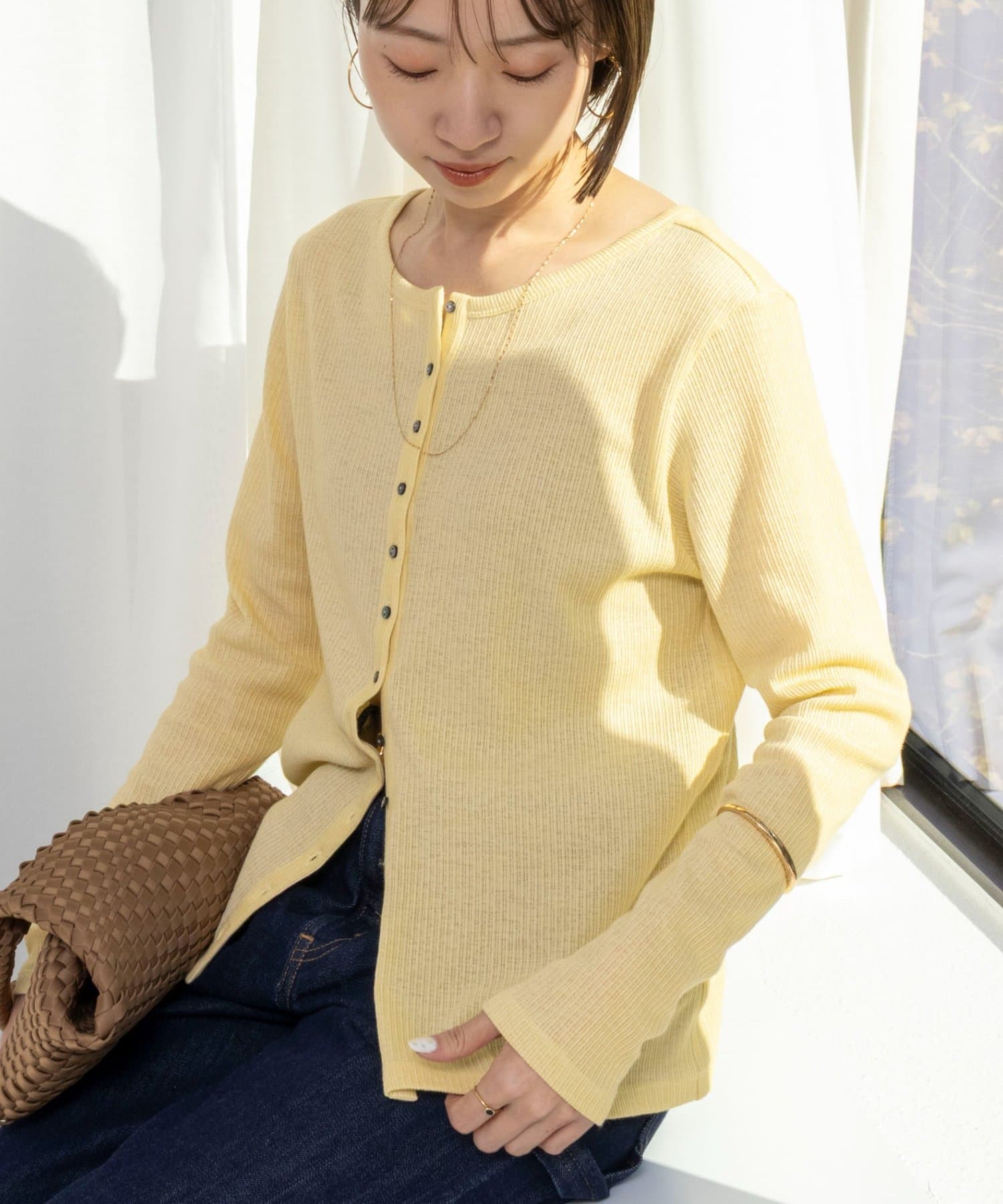 ・しぼ感のあるナチュラルな表情が魅力のテレコ素材を使用したカーディガン