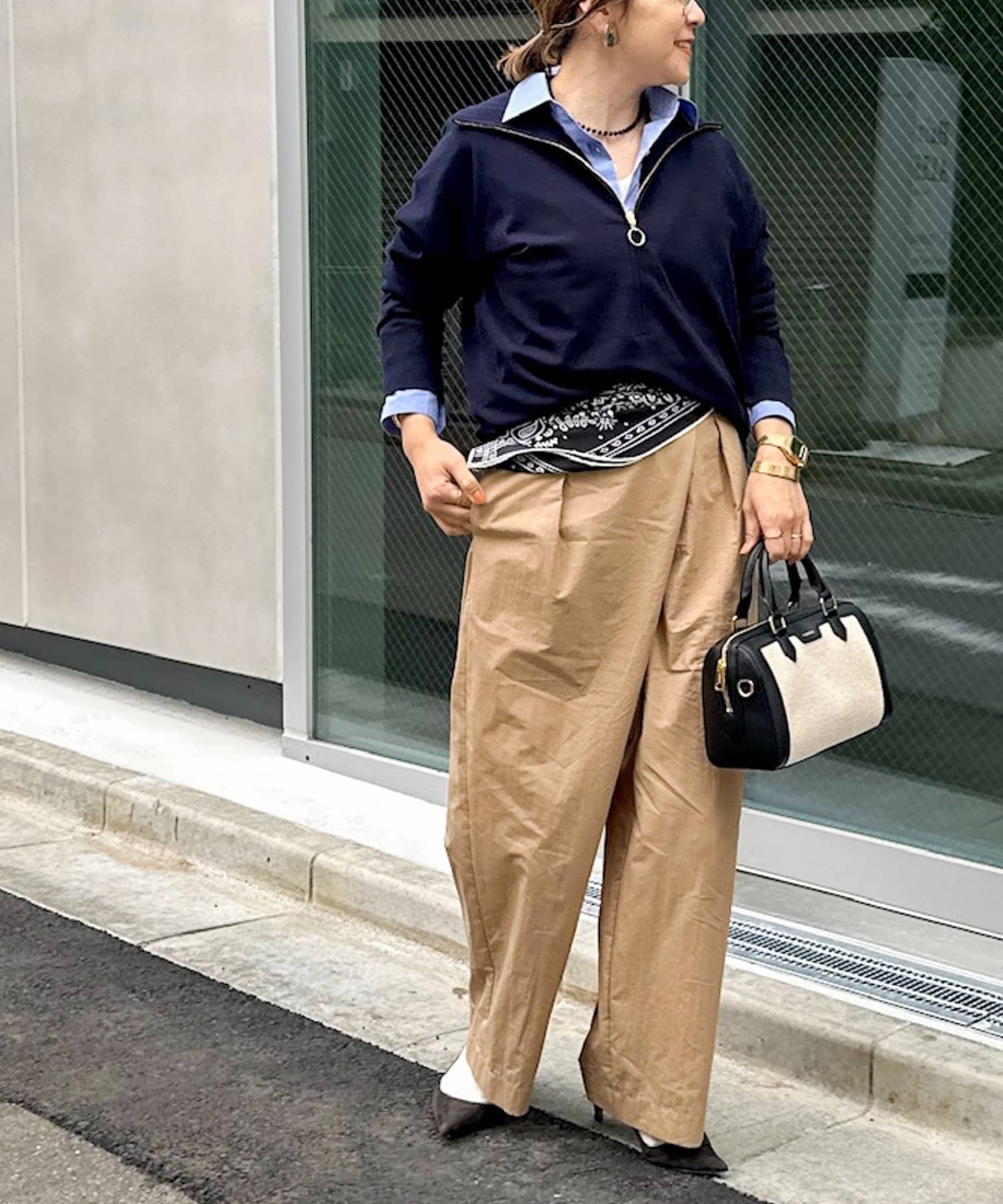 ・90年代のリバイバルもあり、ハーフZIP×ゆったりシルエットが着るだけで今っぽいスタイルを演出