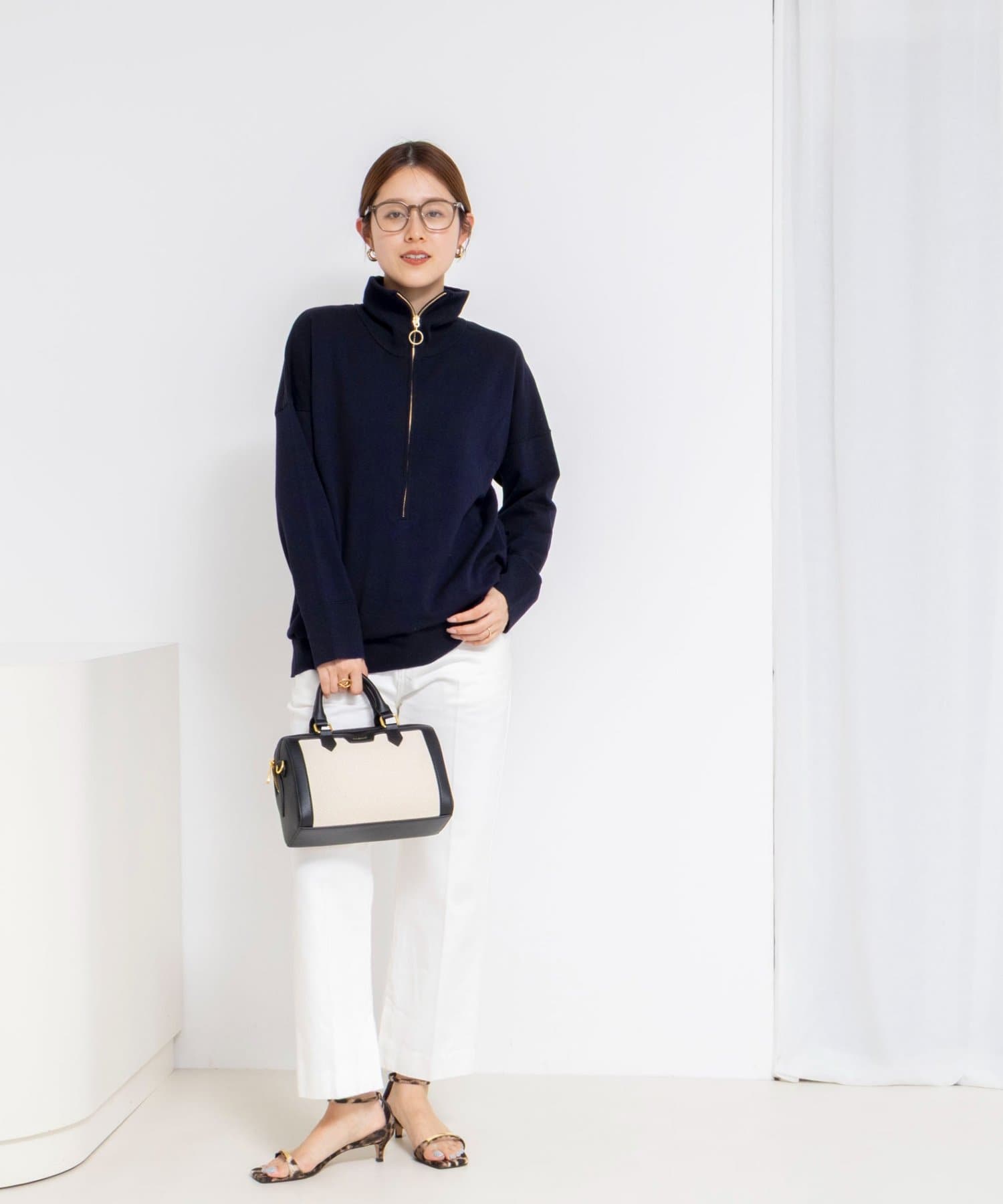 ・ファスナーの開け方次第で、ハイネックやスキッパーシャツのような表情の変化を楽しめるニット
