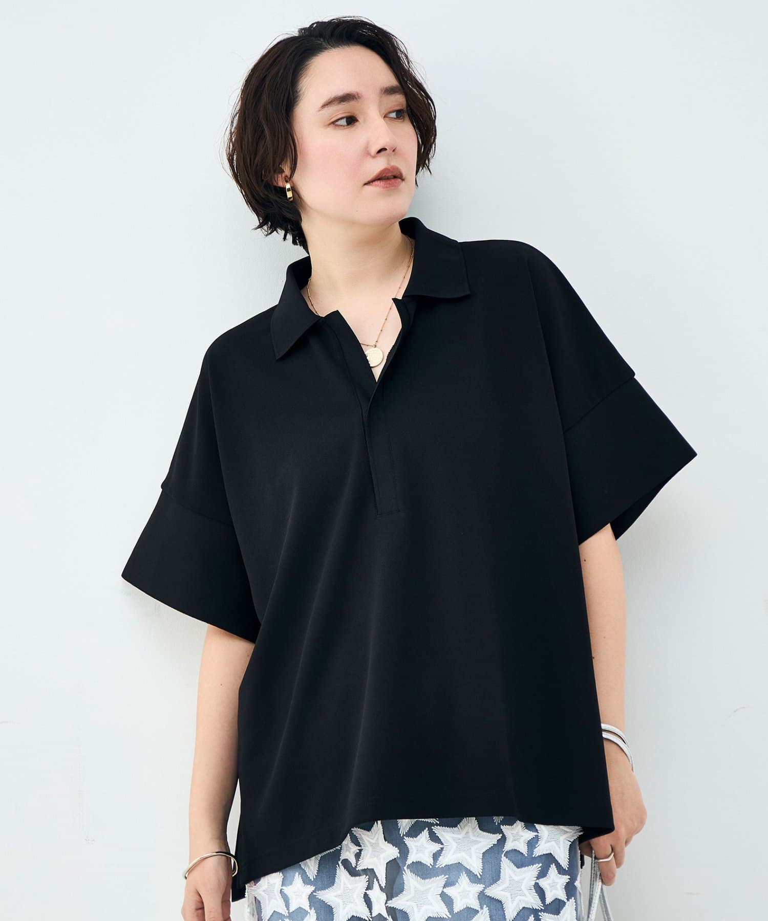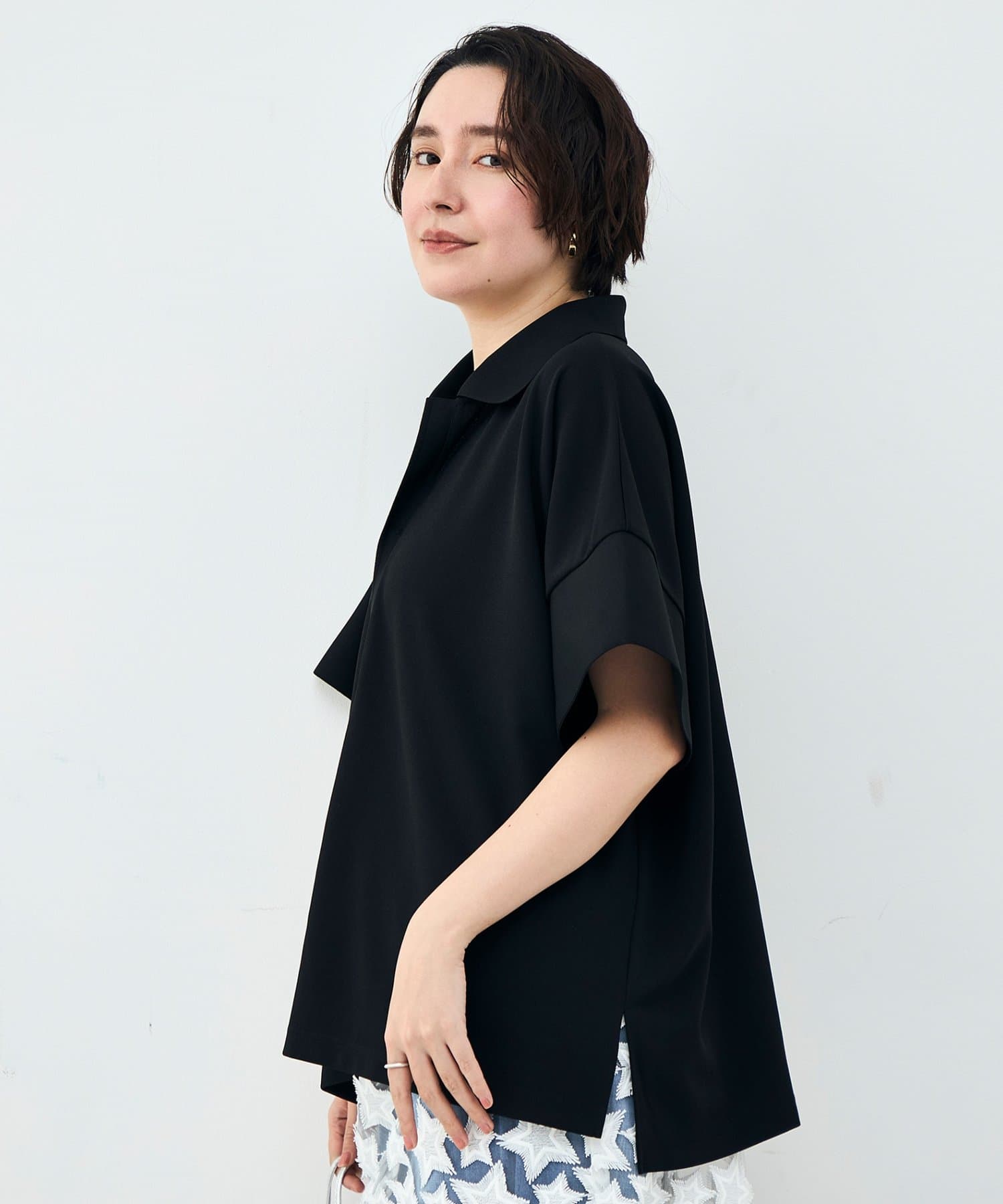 ウォッシャブルョーポロ襟ハーフスリーブジゼットダンボール