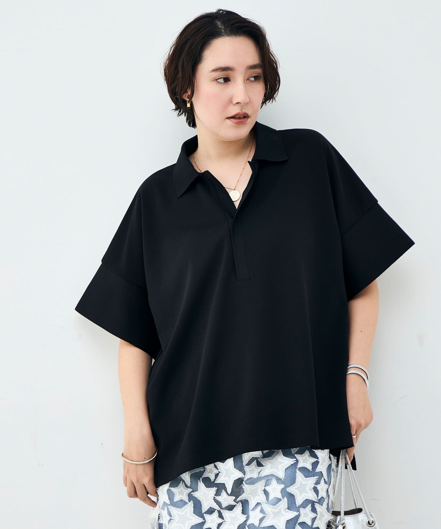 ・シワになりにくいジョーゼットダンボールのポロ襟ハーフスリーブ