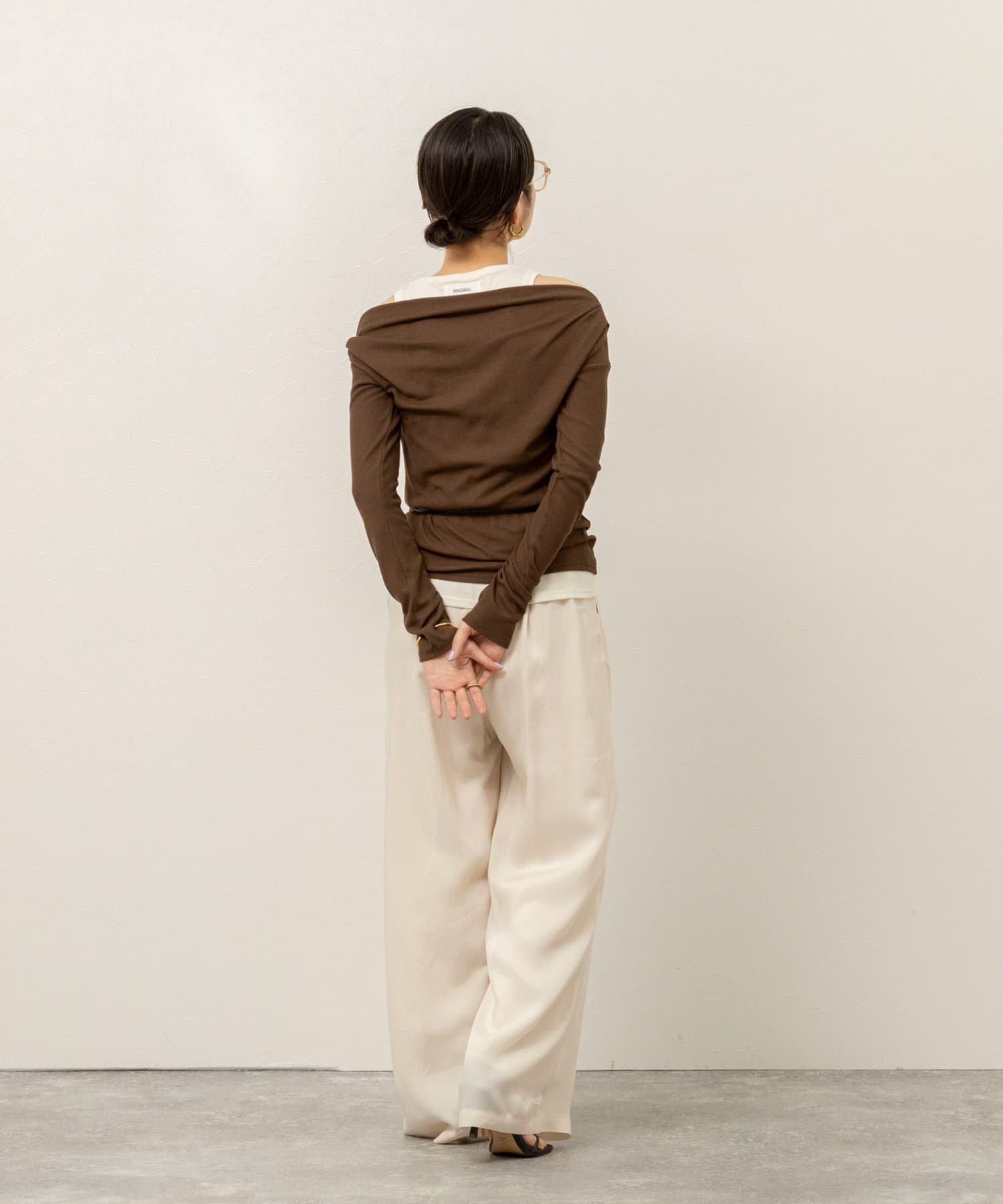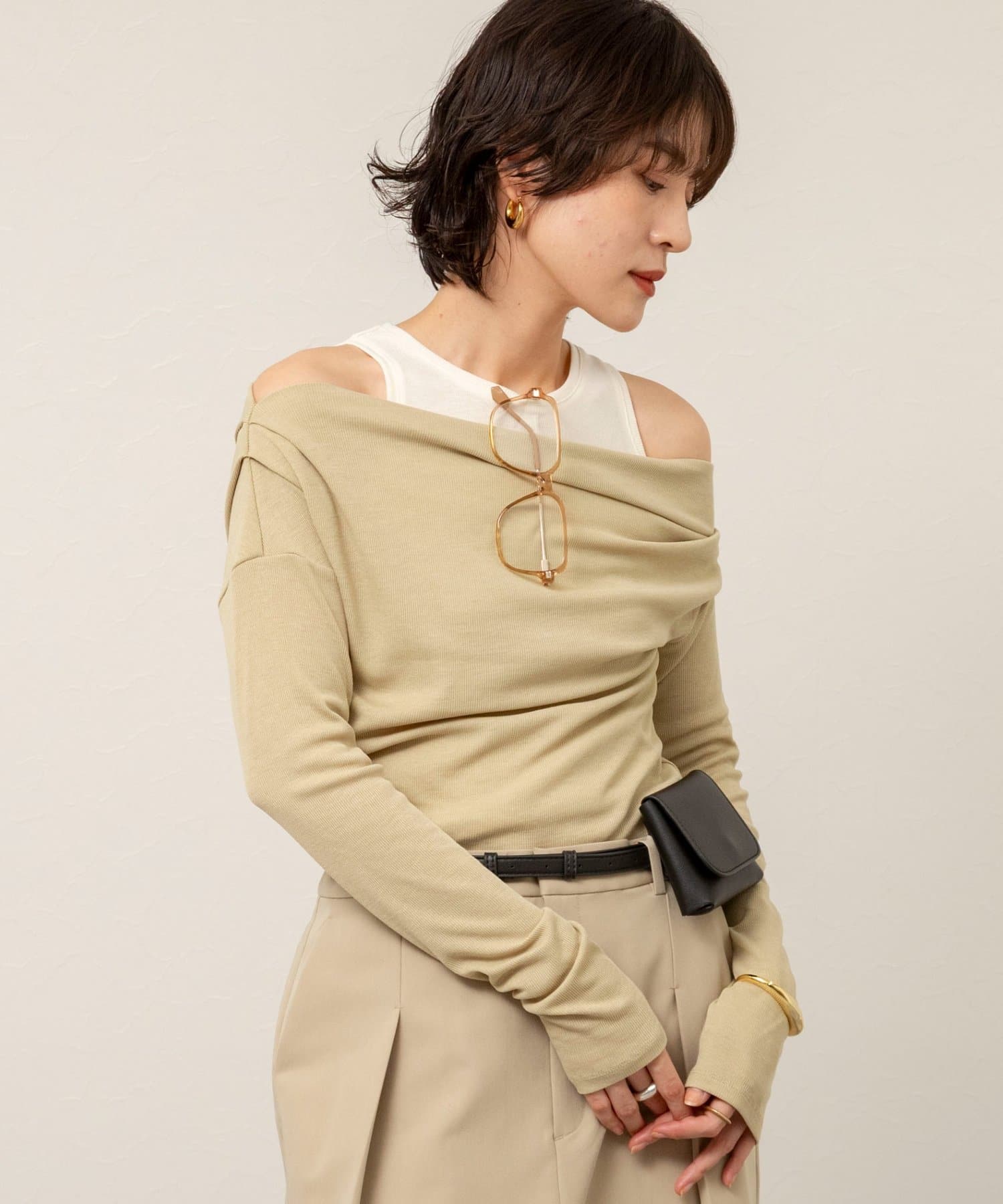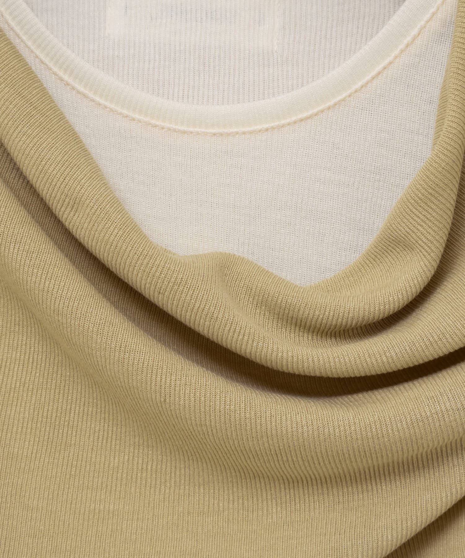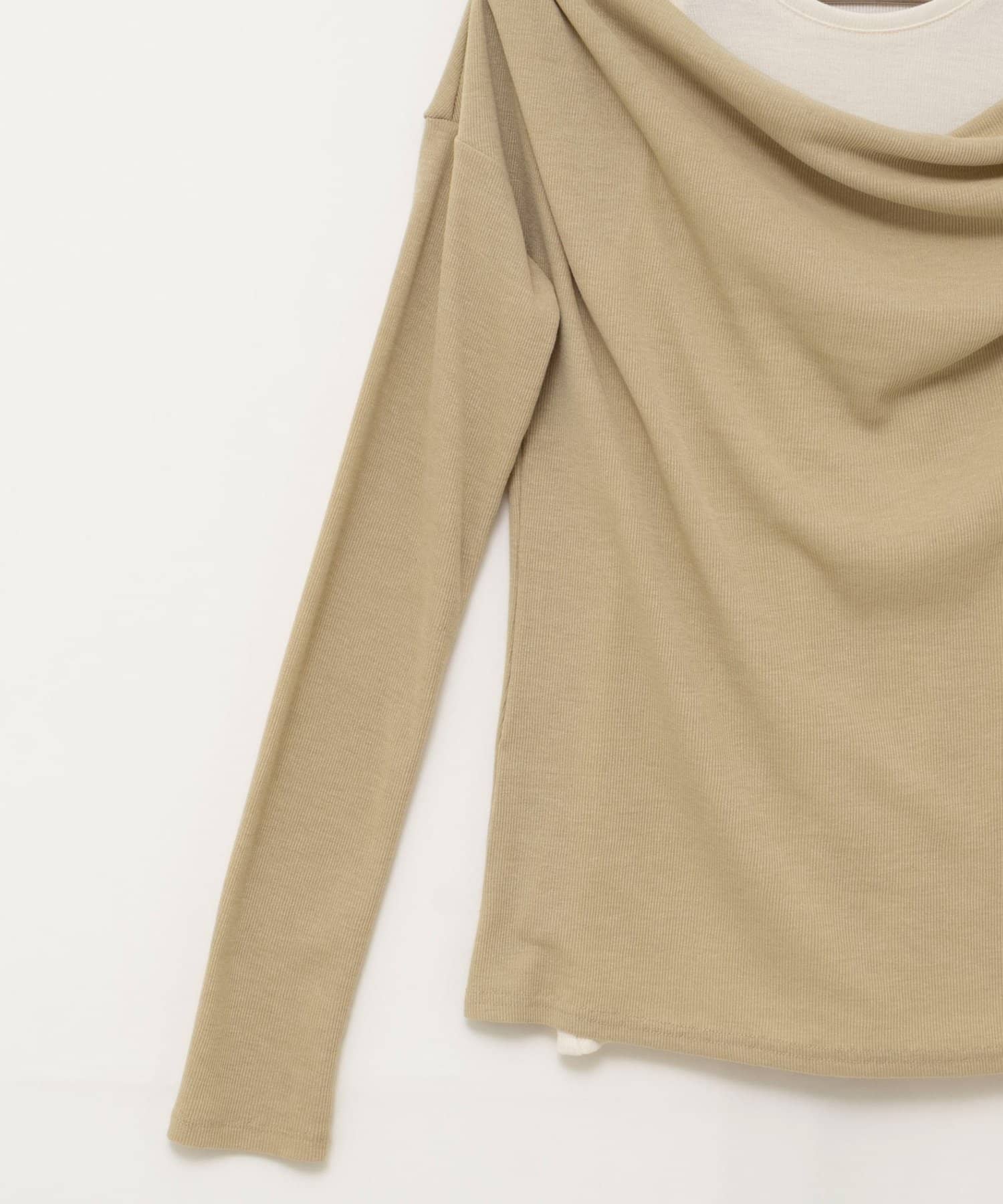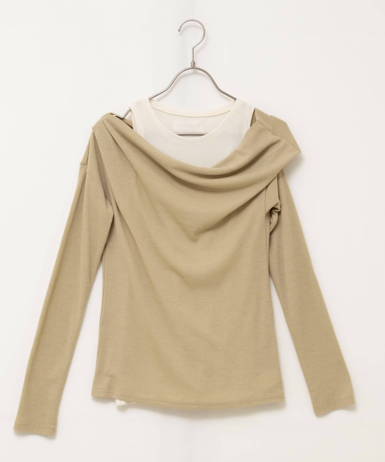 ・抜け感のあるドレープデザインが、女性らしい雰囲気を演出するレイヤードドレープロンT