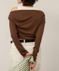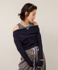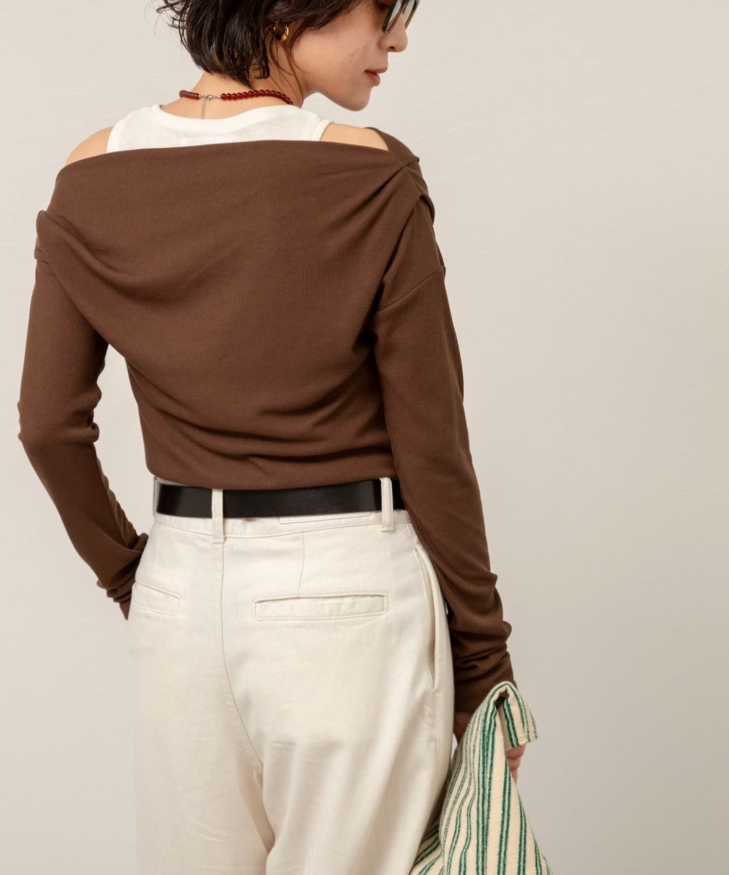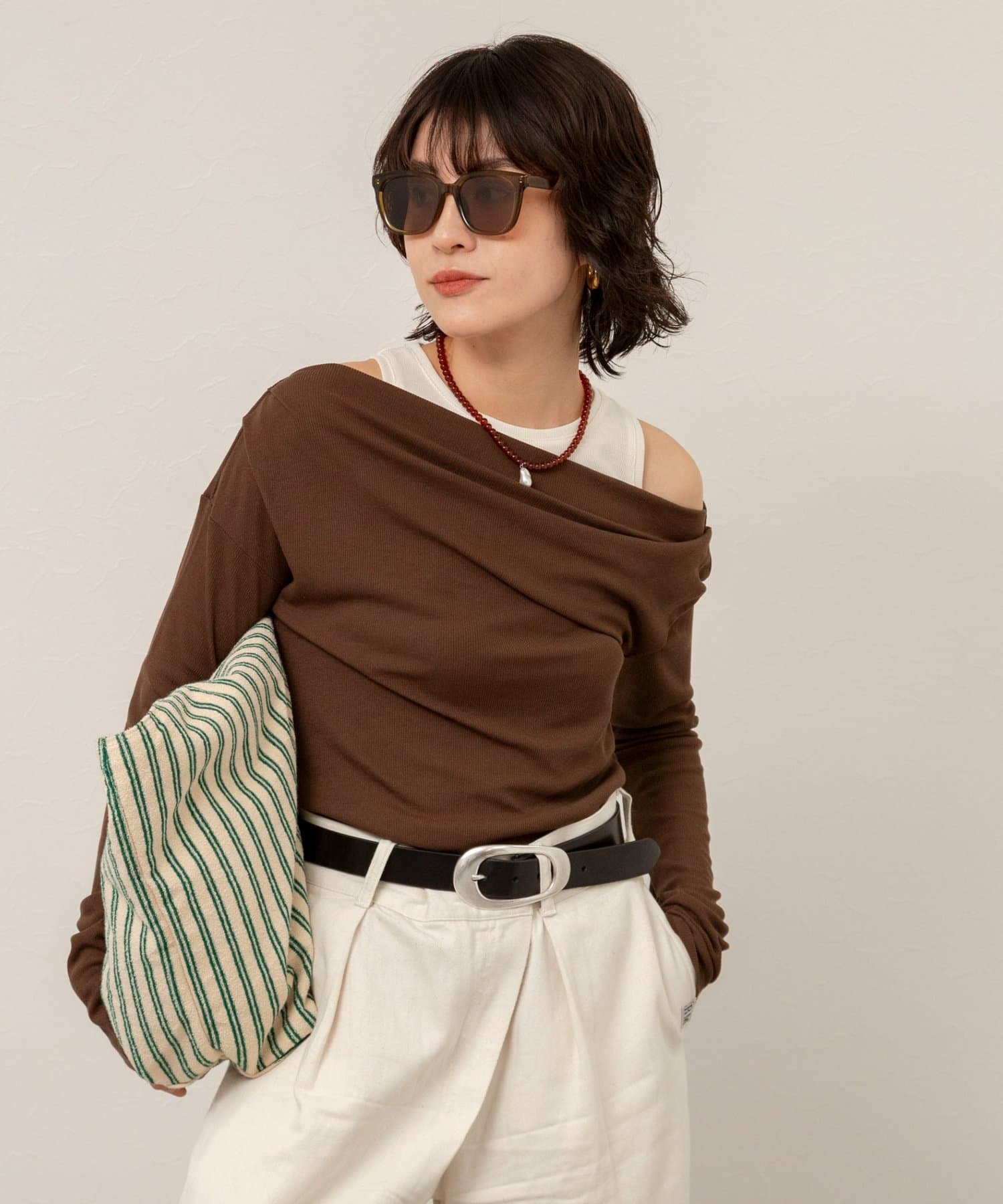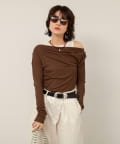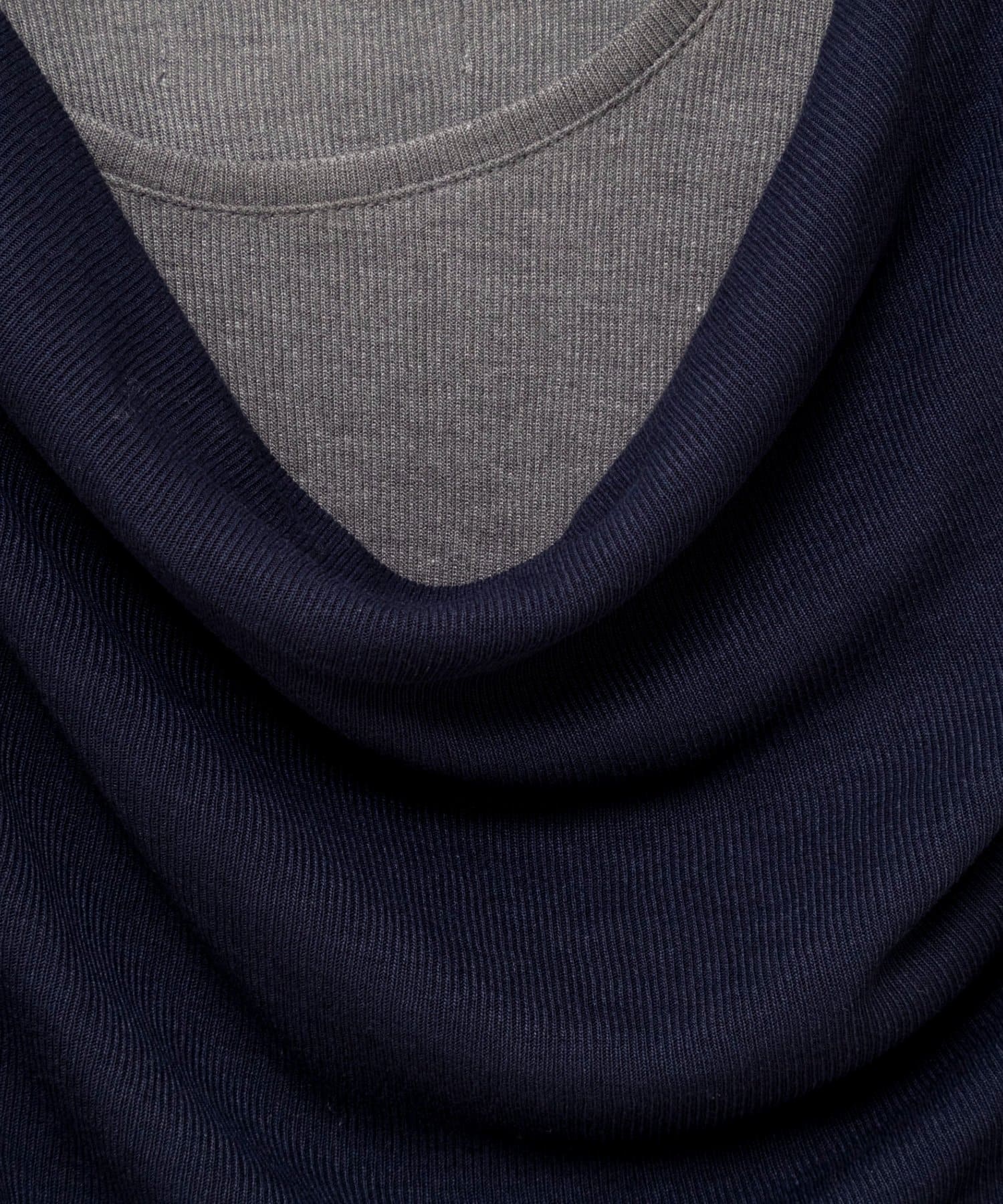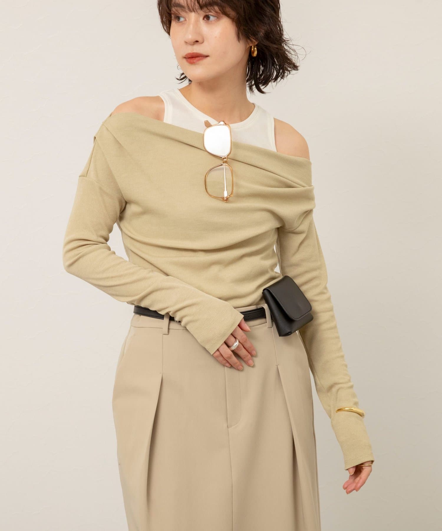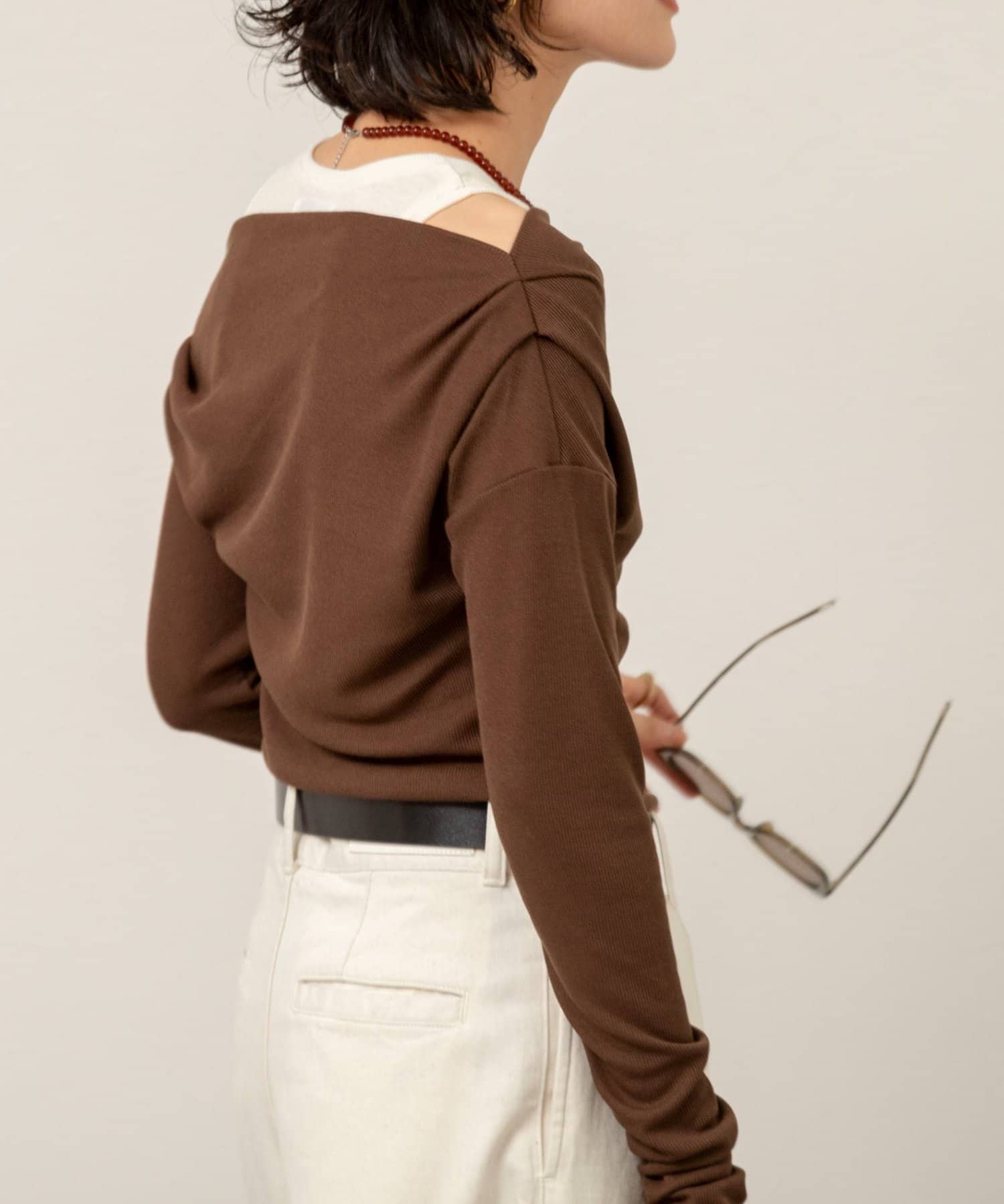 ・抜け感のあるドレープデザインが、女性らしい雰囲気を演出するレイヤードドレープロンT
