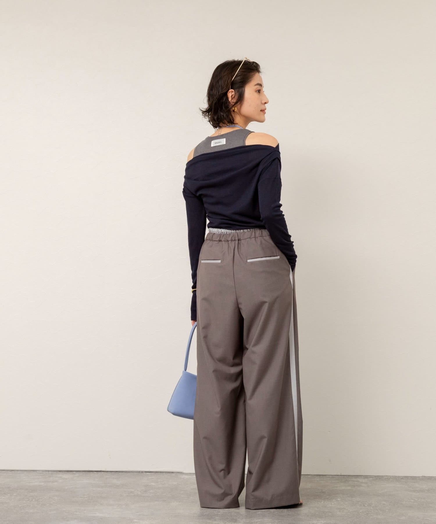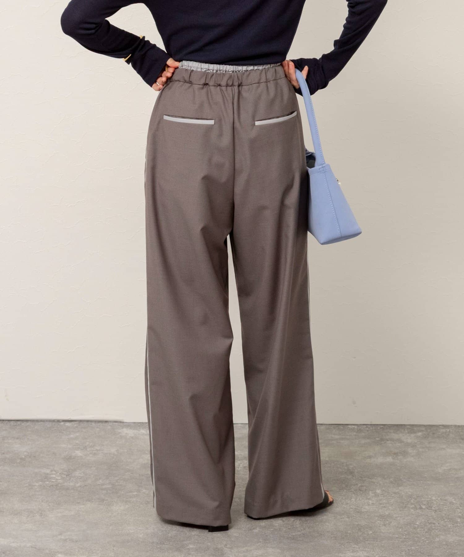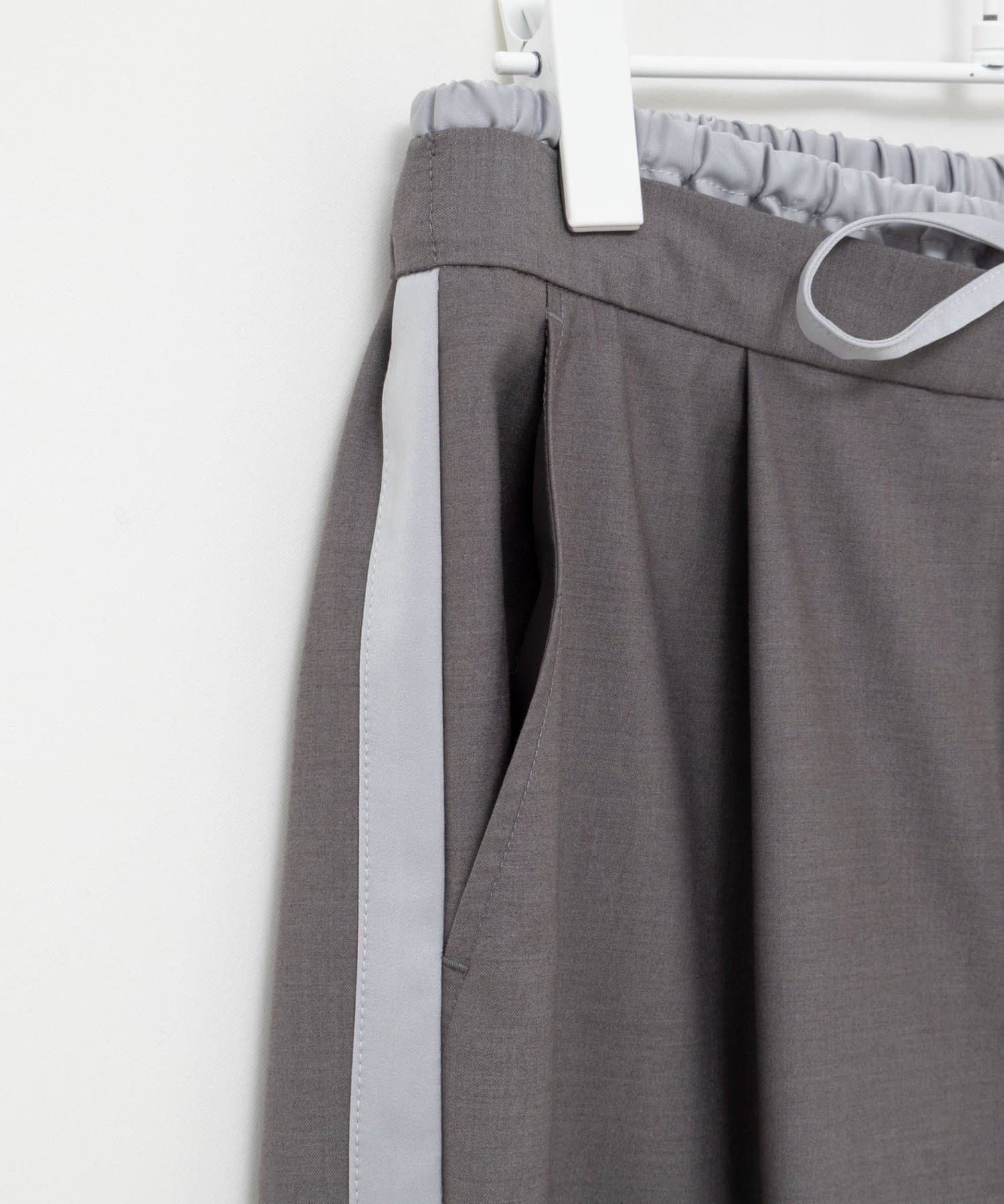 ・サイドにラインを配した、スラックスライクなラインパンツ