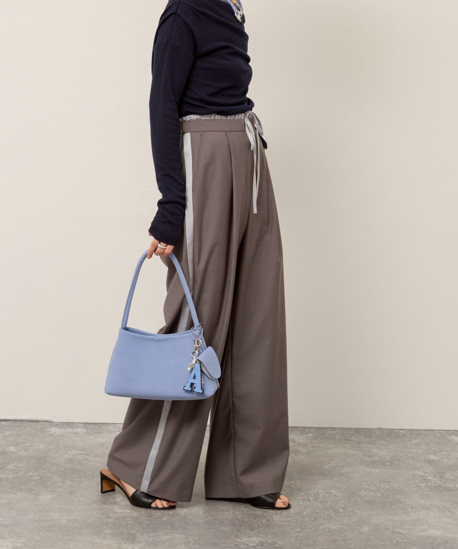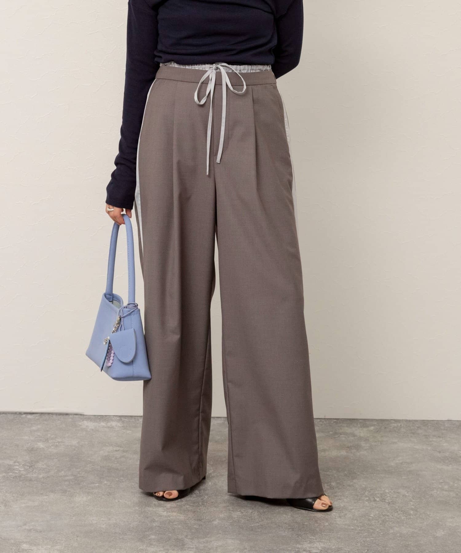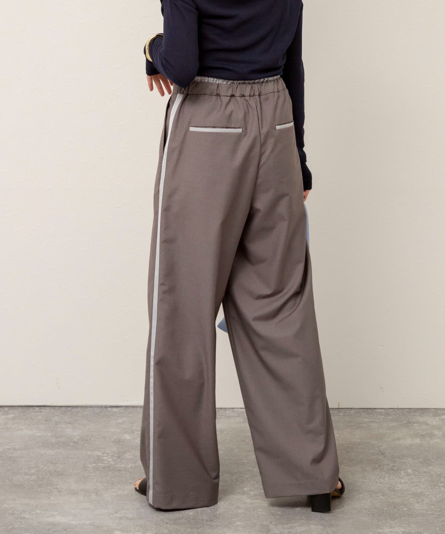 ・サイドにラインを配した、スラックスライクなラインパンツ