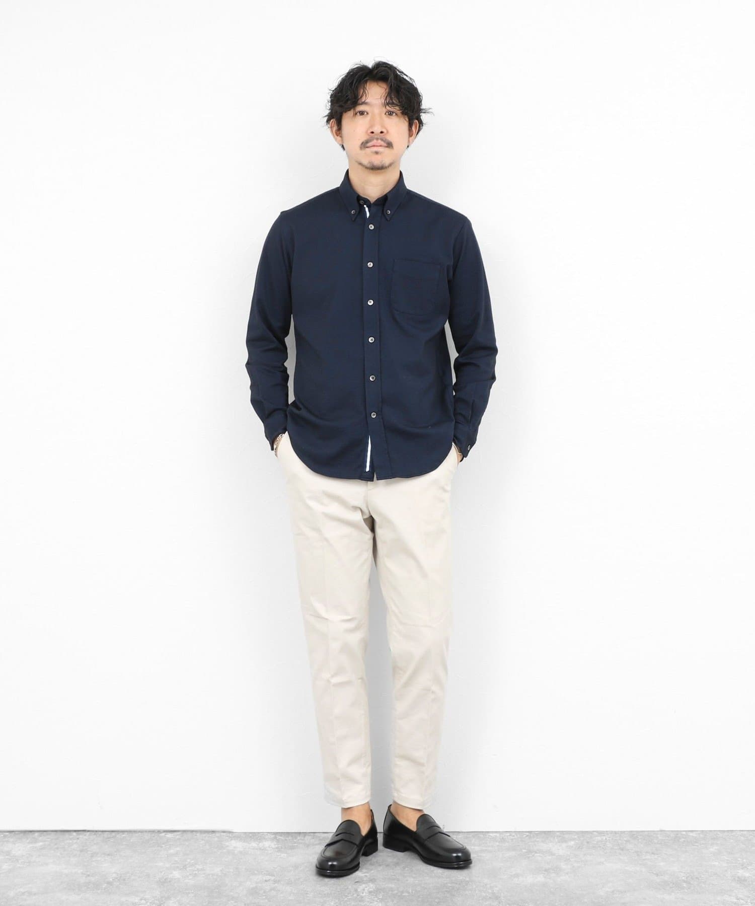 ・チノパンやデニムと合わせてキレイめカジュアルに