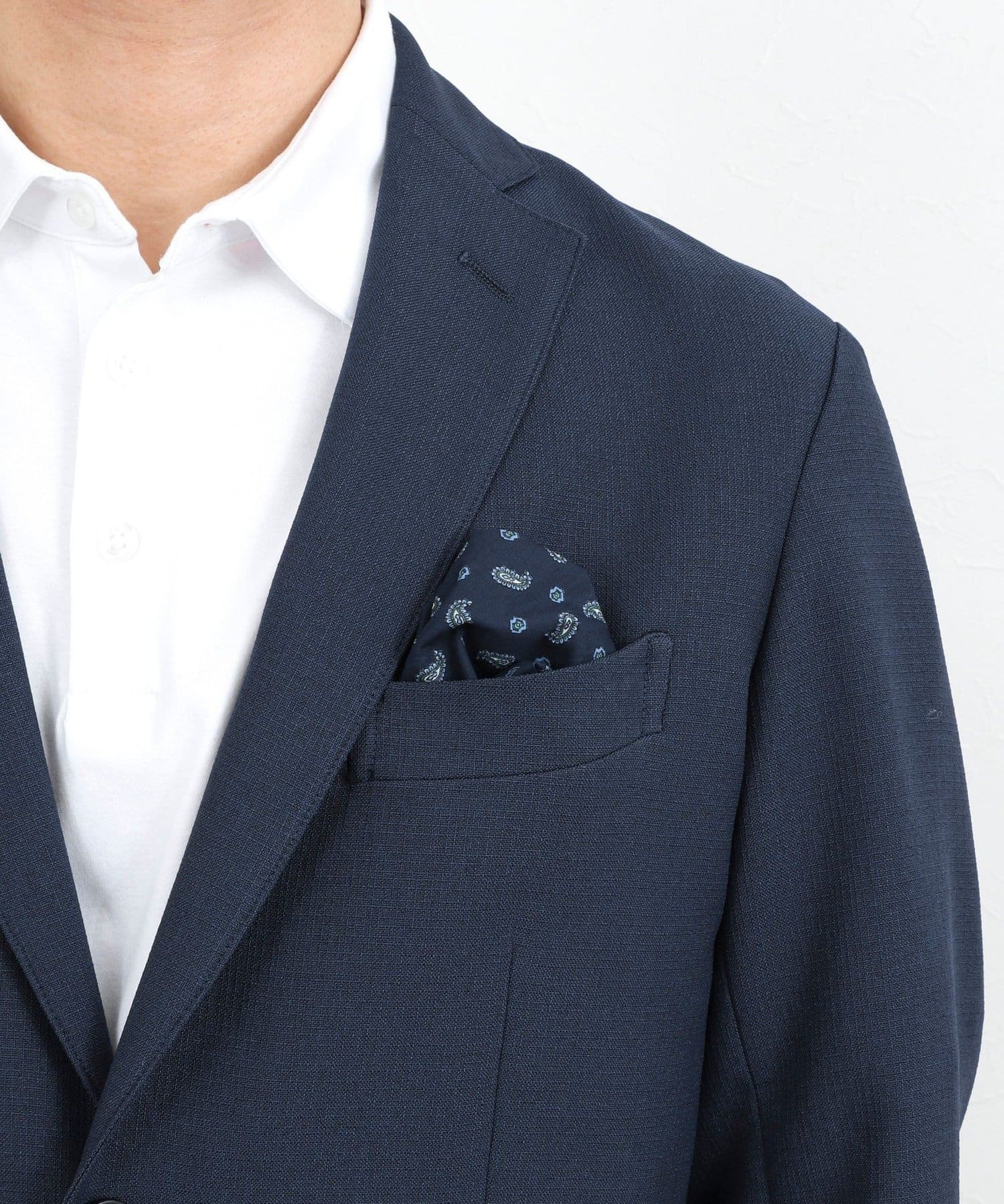 ・チーフポケット内布を引っ張り出すとチーフ代わりに