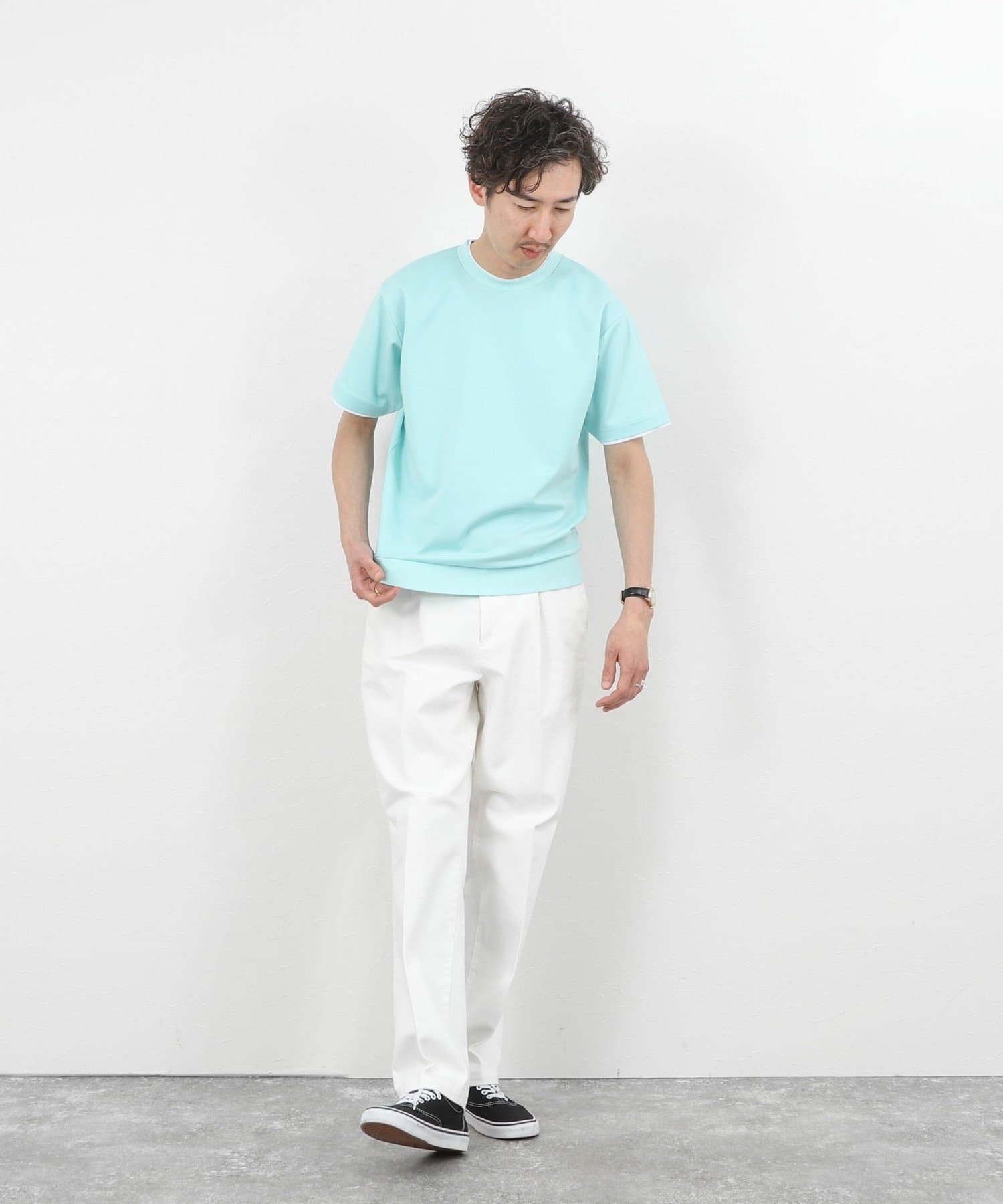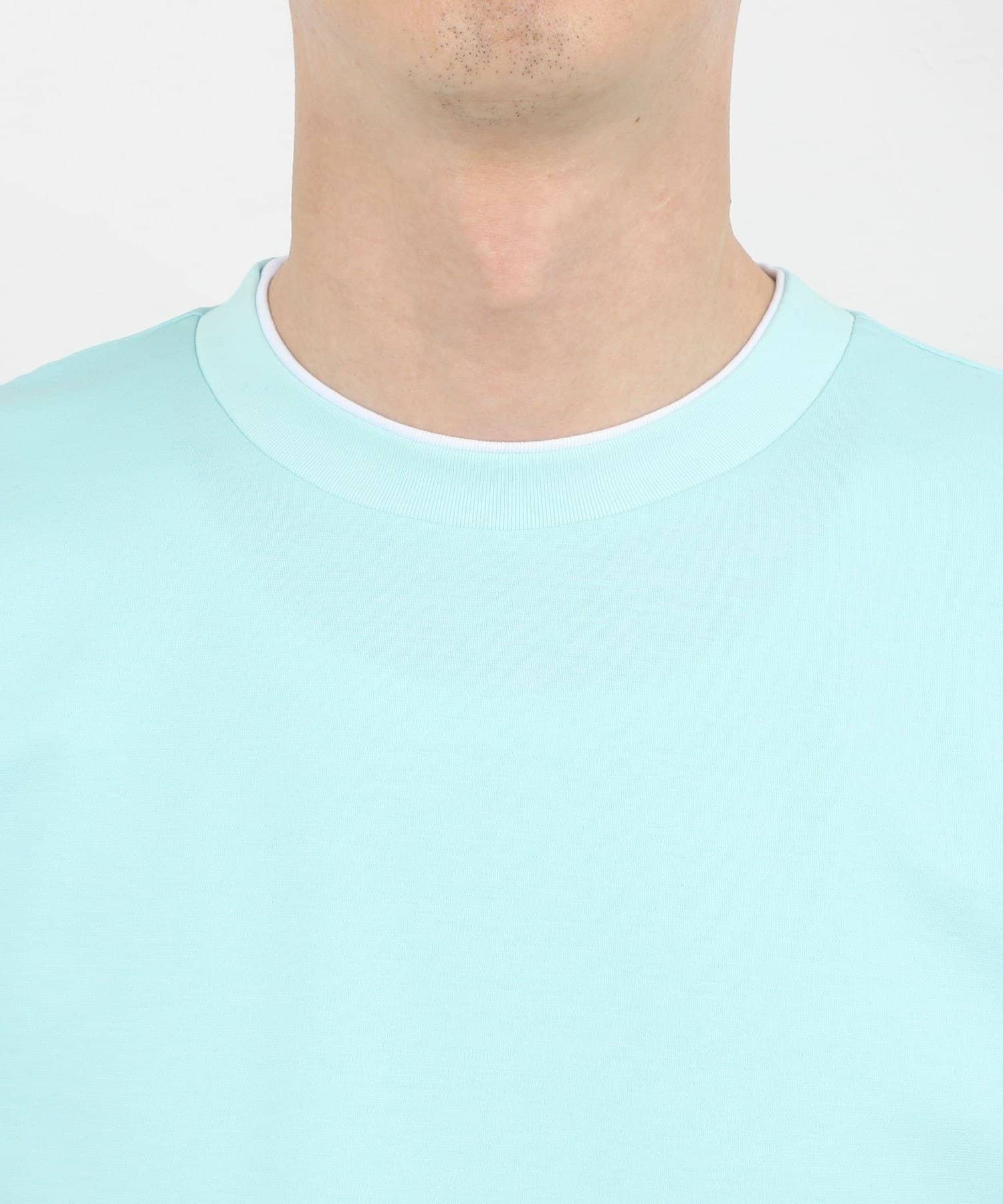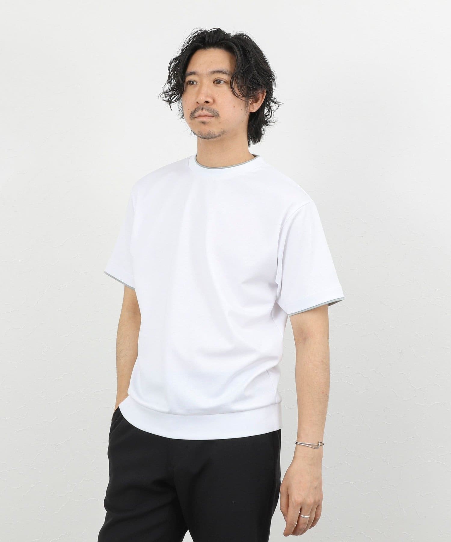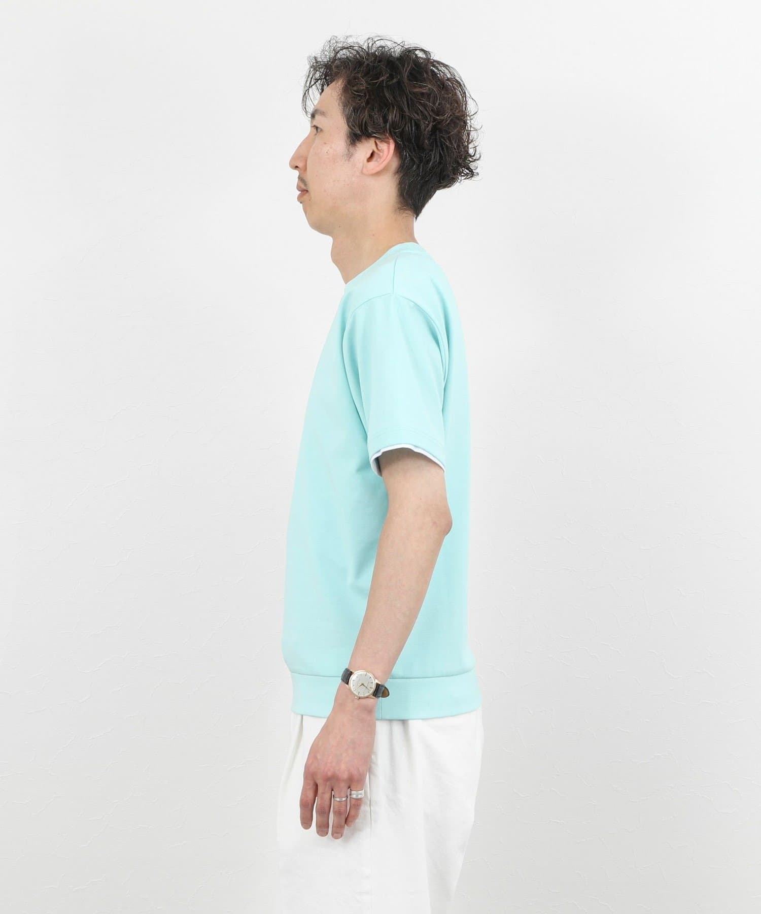 ・ネックと袖口をフェイクレイヤード仕様にした半袖Tシャツ