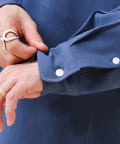 シンプルなデザインの中に、使いやすい胸ポケットを配置。ミニマルな中にさりげないアクセント。