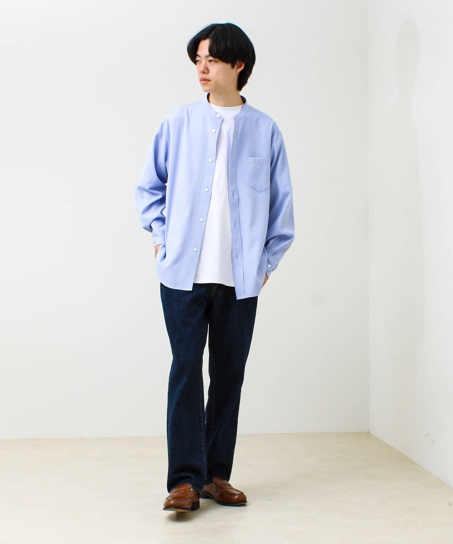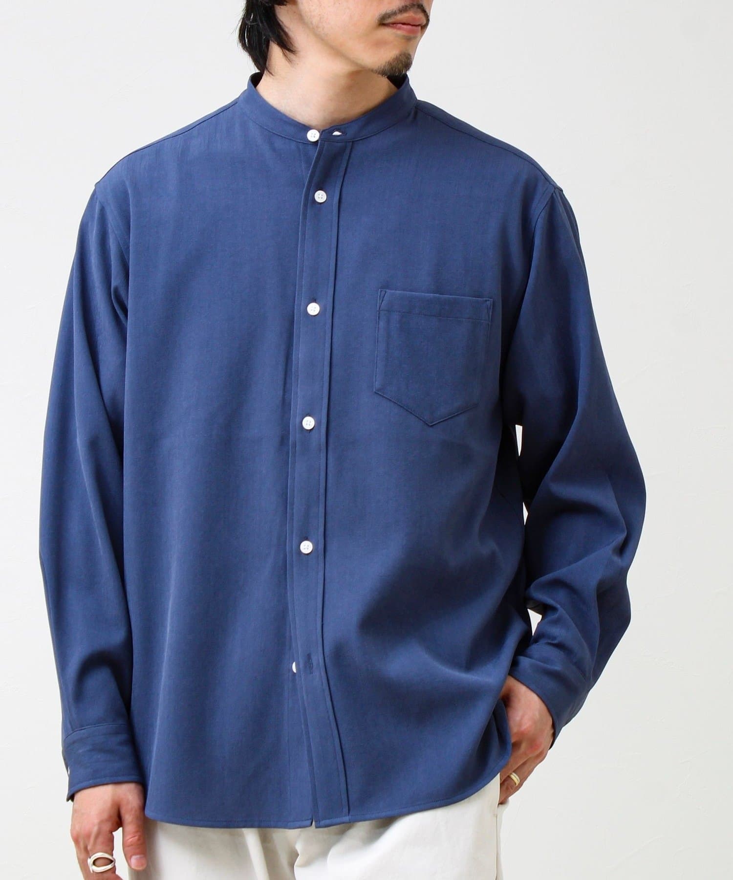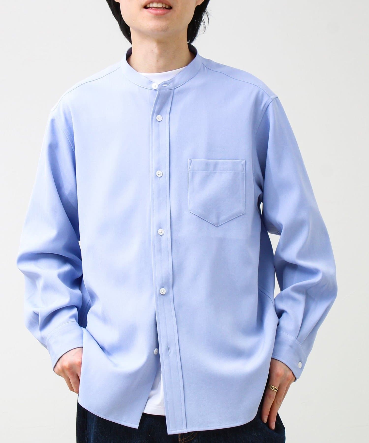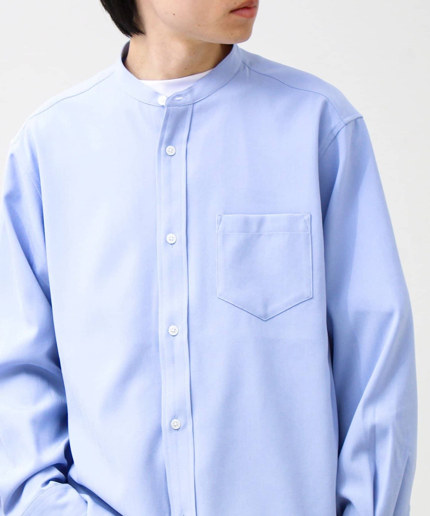 ・首元がすっきり見えるバンドカラー