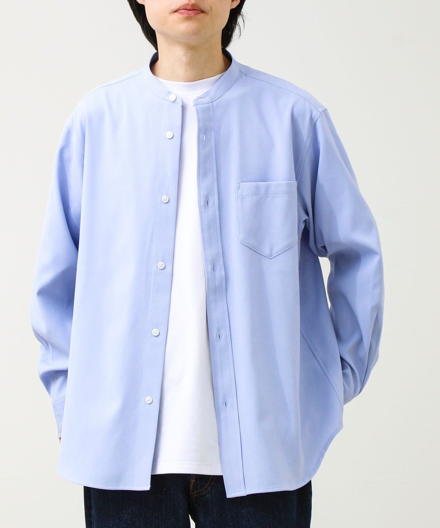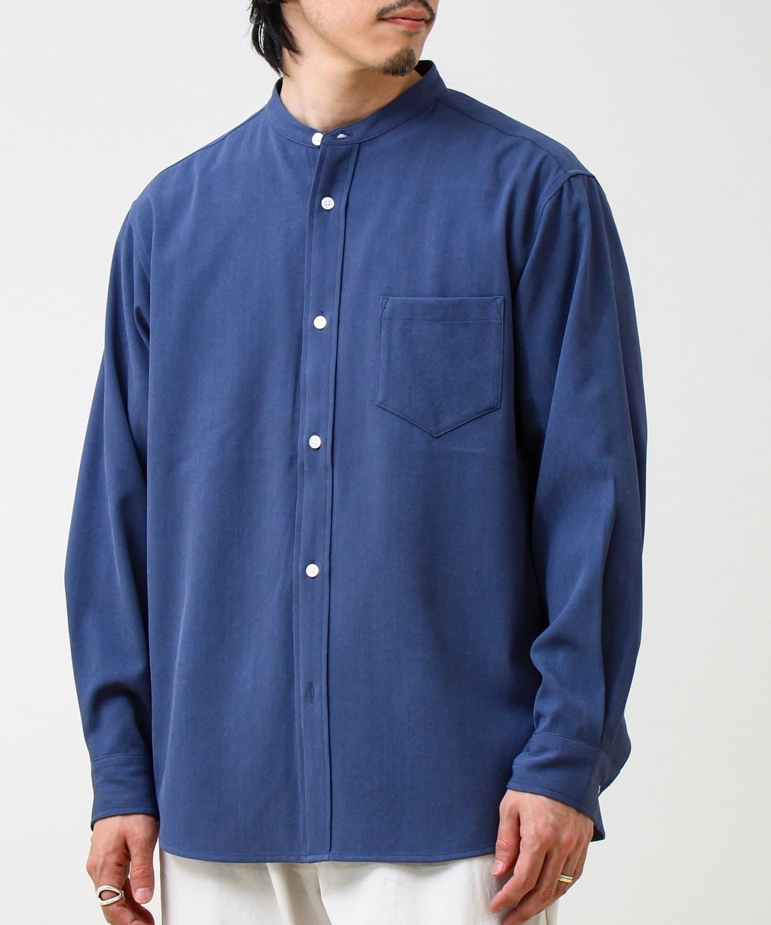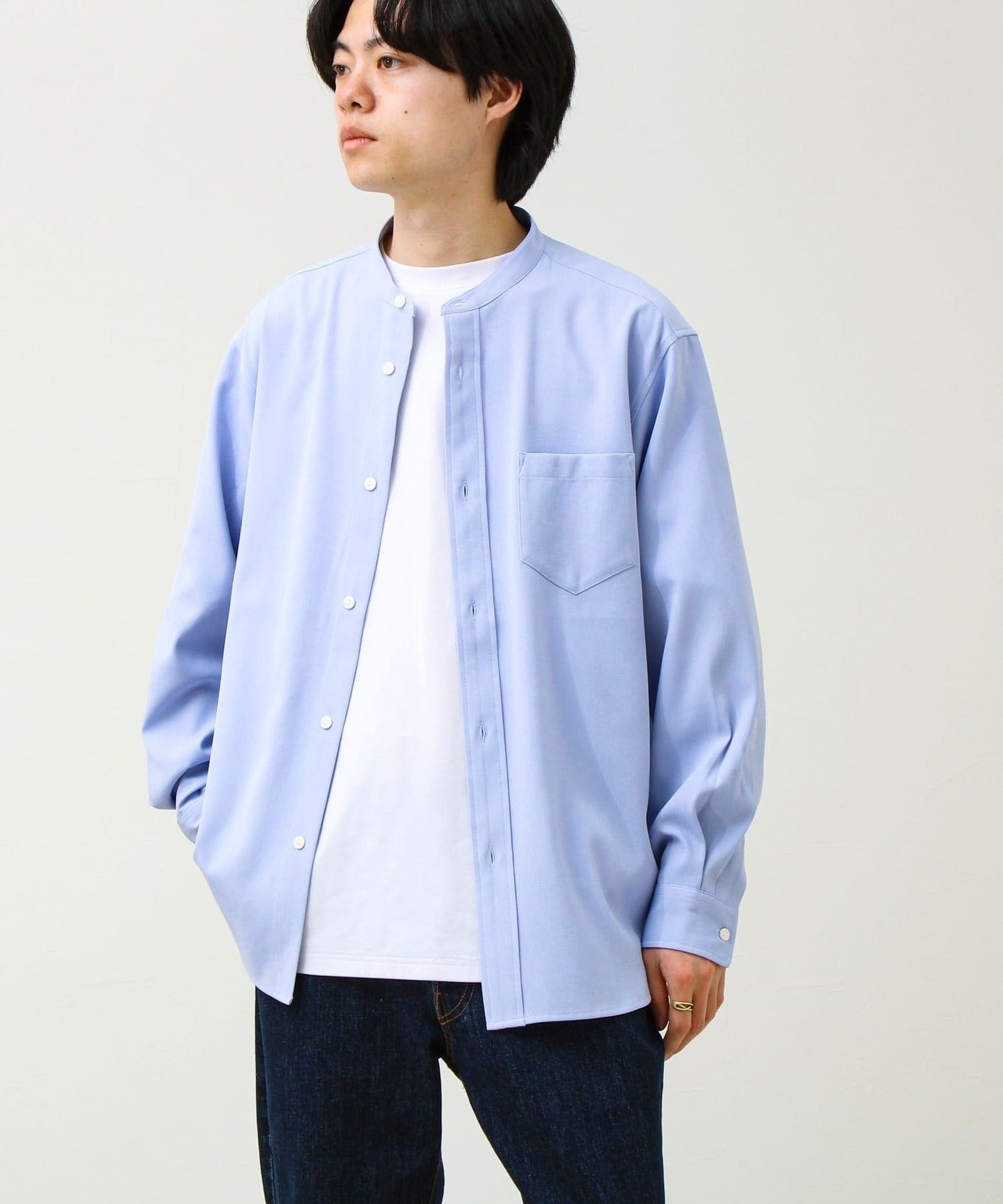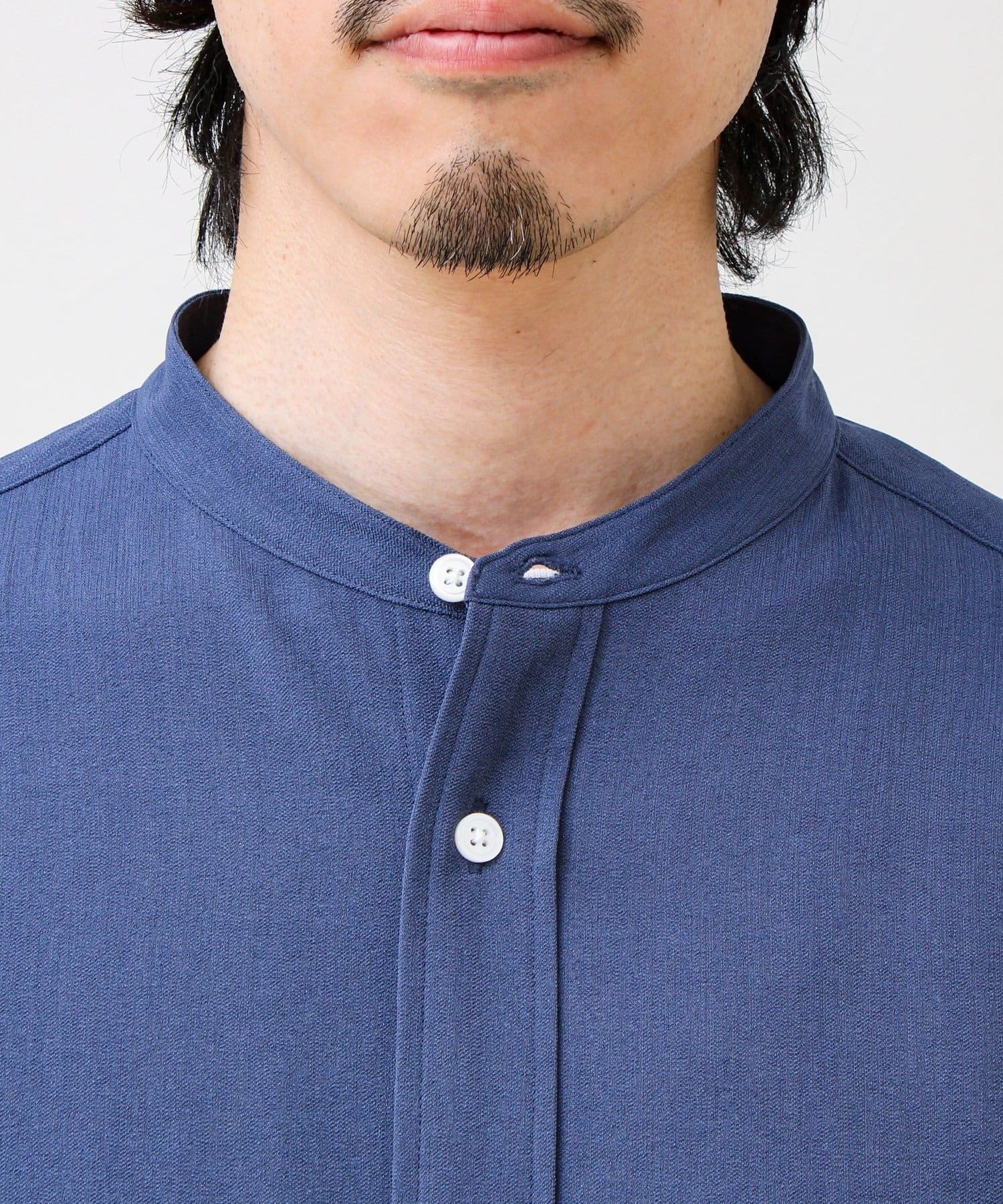 “シャツ見え×カットソーの快適さ”が叶う、軽やか素材のcrunchyバンドカラーシャツ