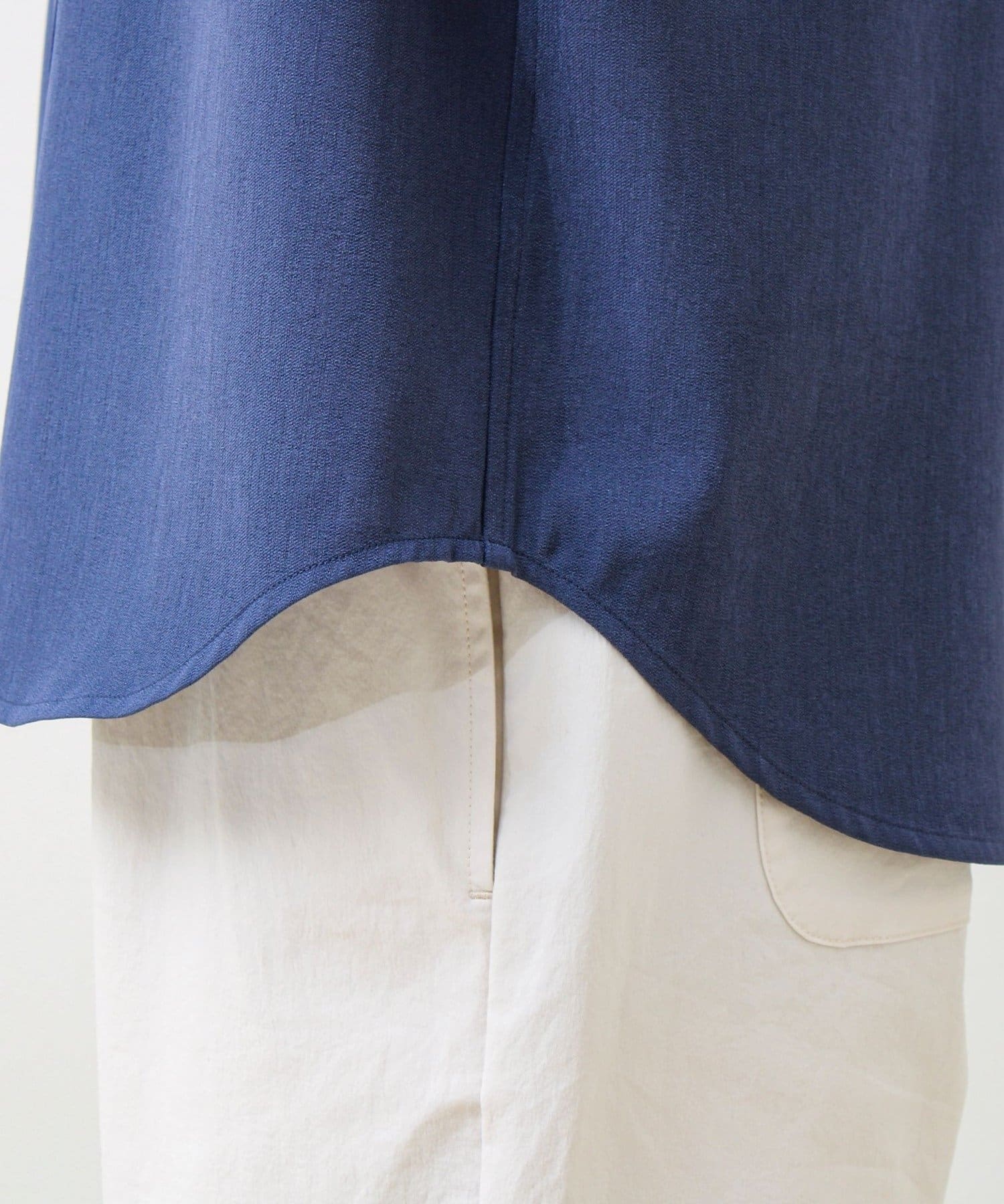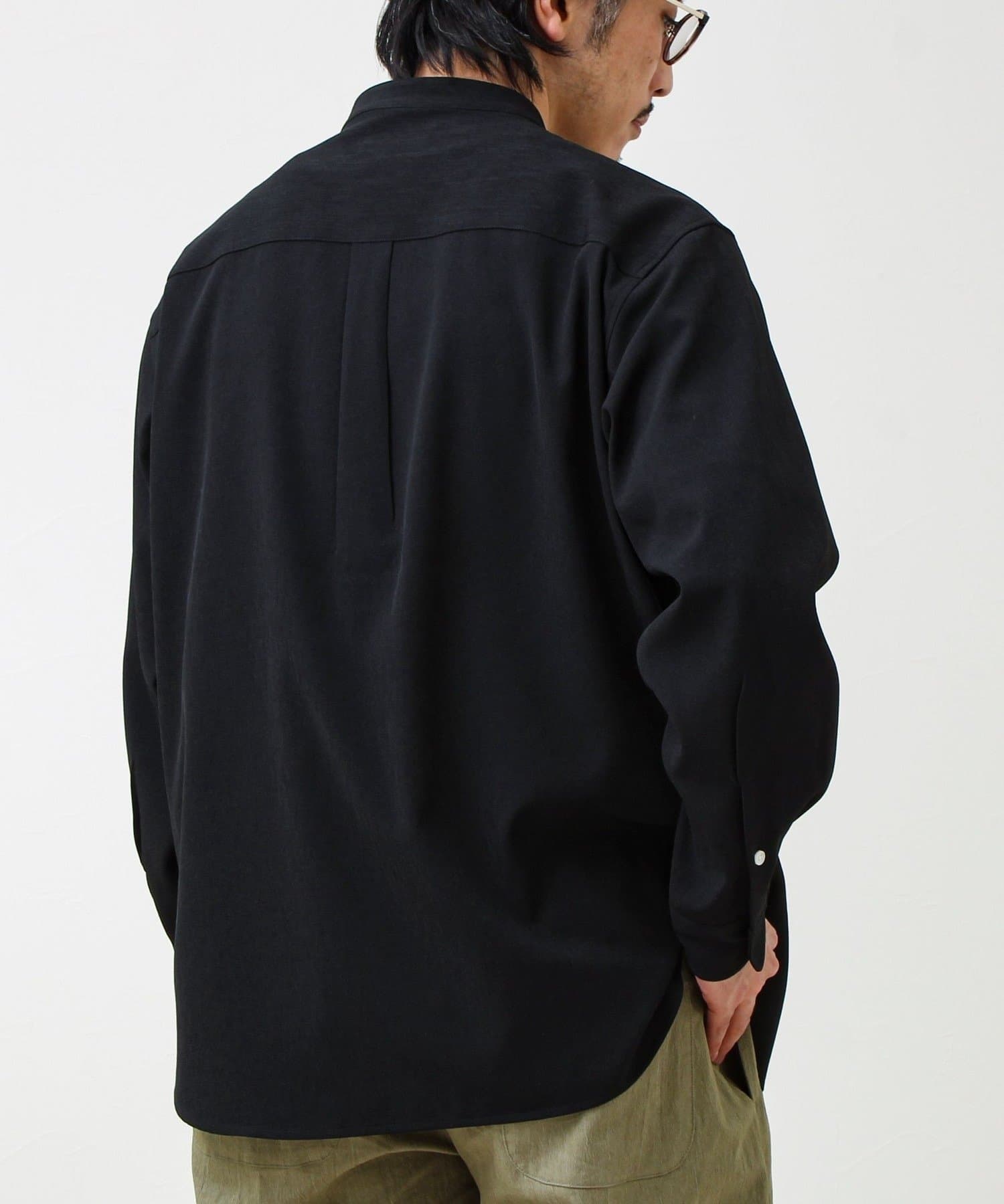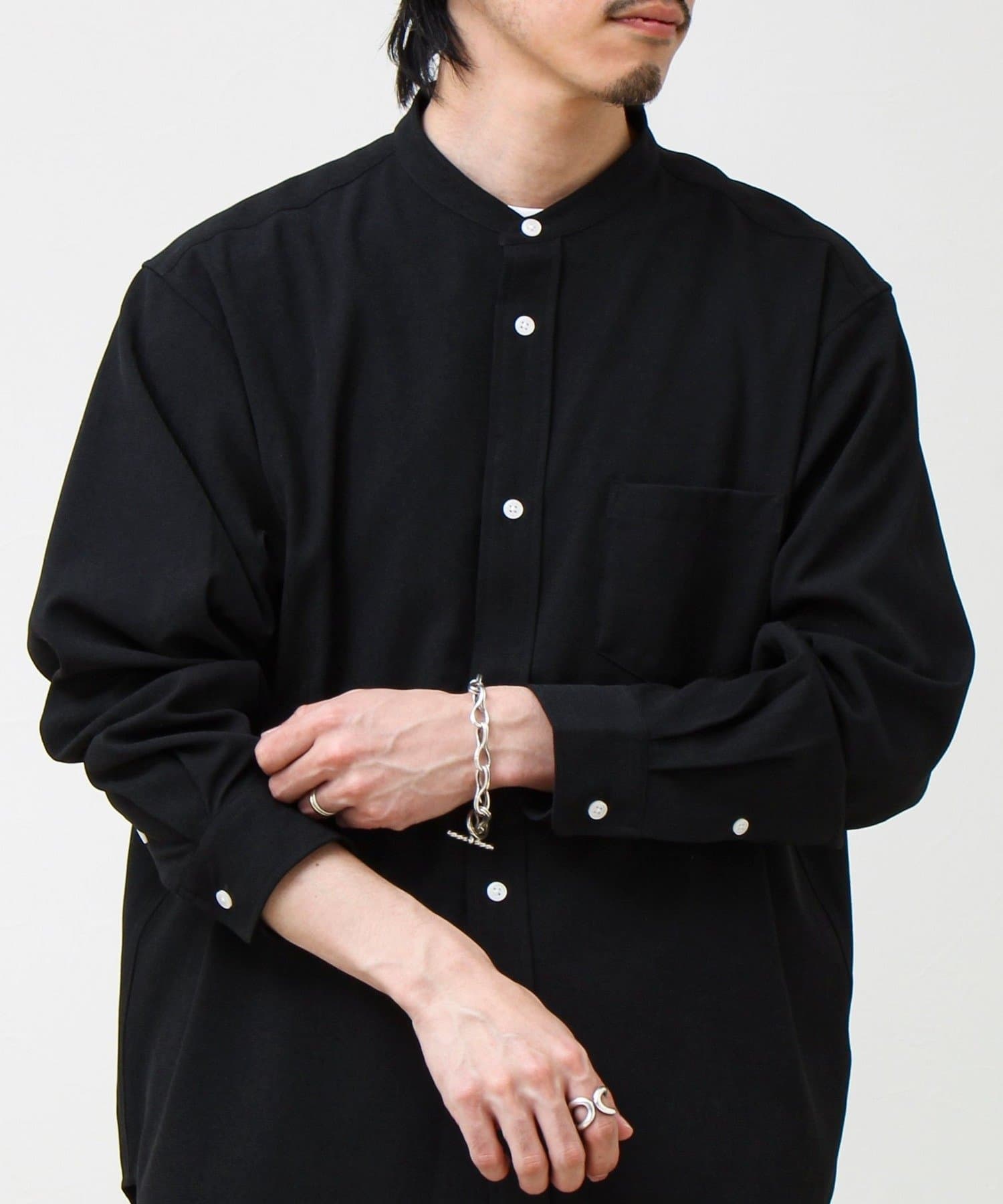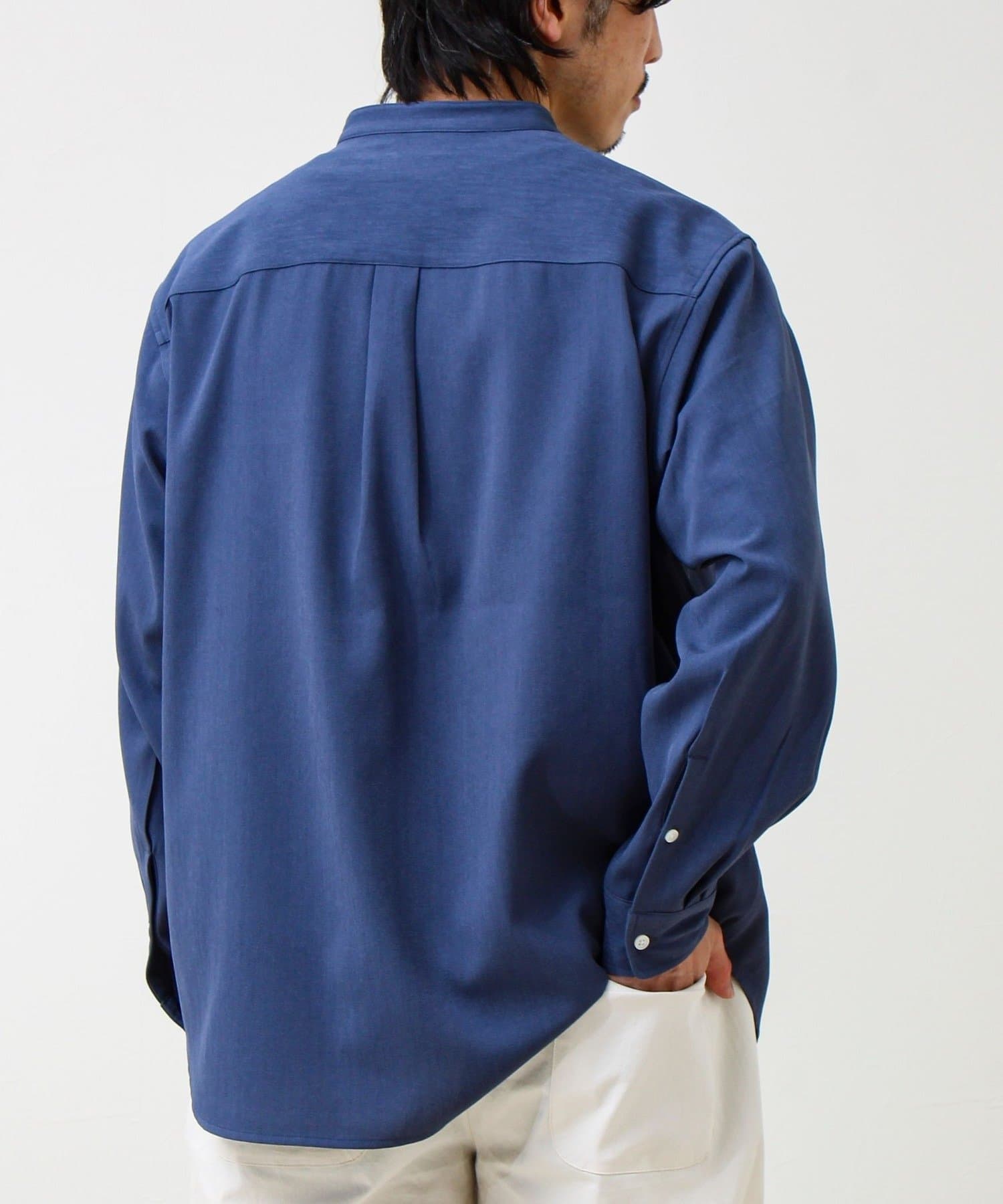 “シャツ見え×カットソーの快適さ”が叶う、軽やか素材のcrunchyバンドカラーシャツ