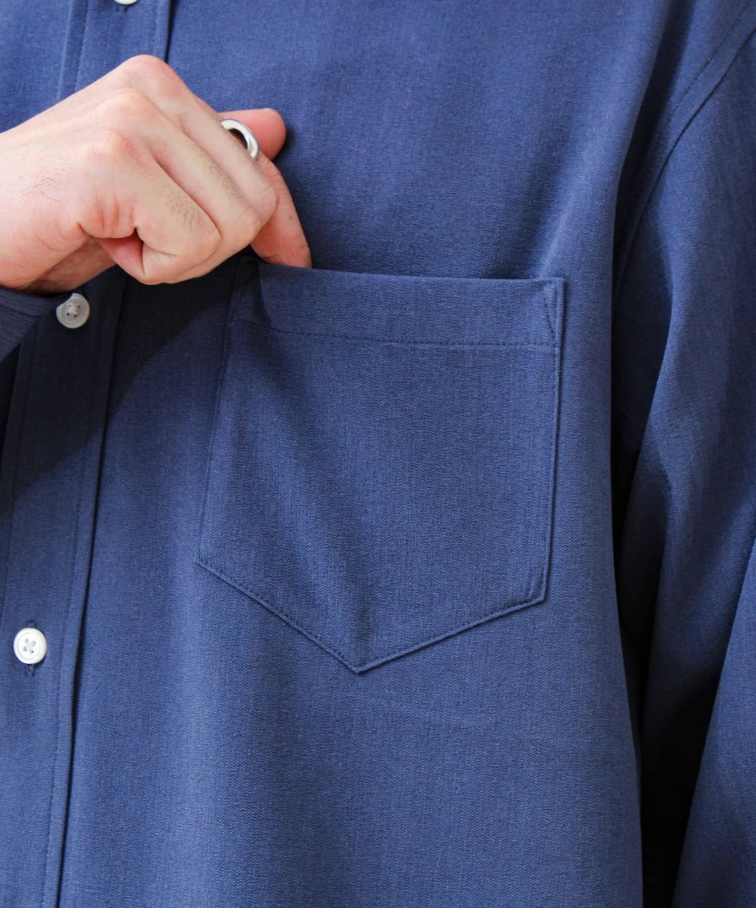 ミニ楊柳調のシャリ感ある生地を使用。見た目はきちんとシャツなのに、カットソーのような伸縮性があり着心地抜群。デイリーに気負わず着られる1枚です。