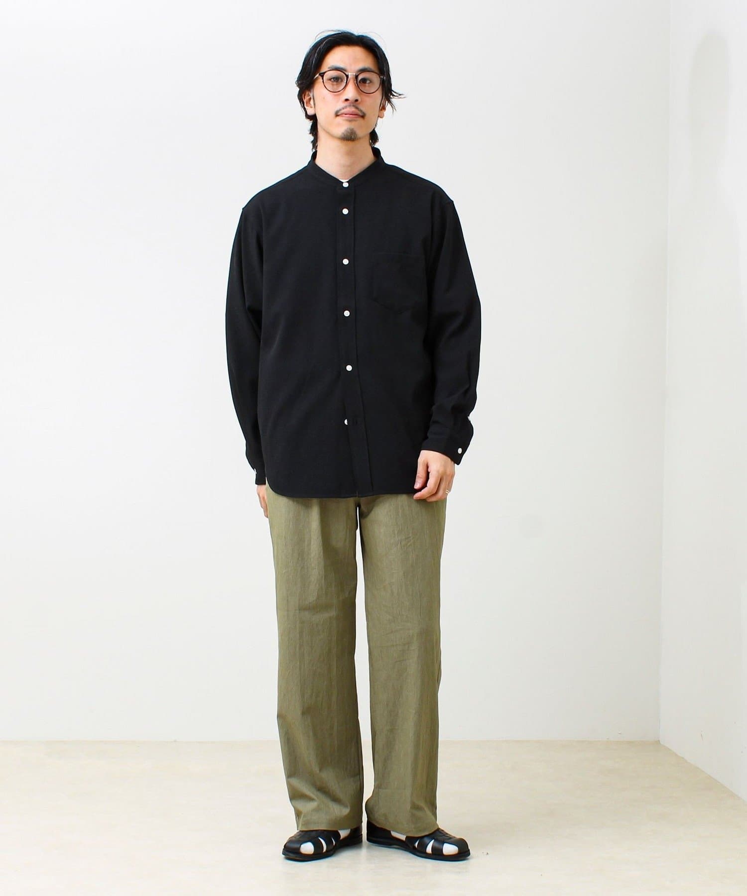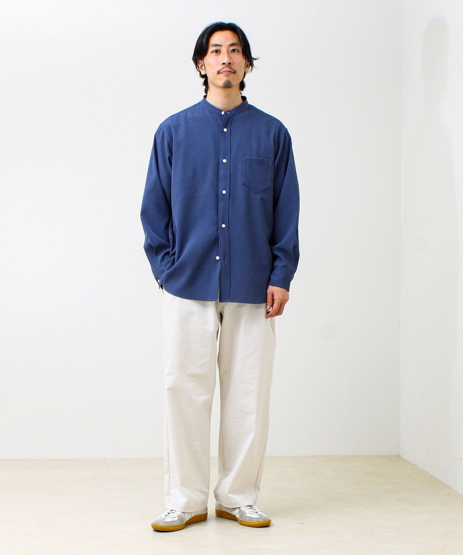 #GLOSTER #バンドカラーシャツ #大人カジュアル #きれいめカジュアル #春シャツ #シャツコーデ #リラックススタイル #イージーケア #26SS #クリーンスタイル