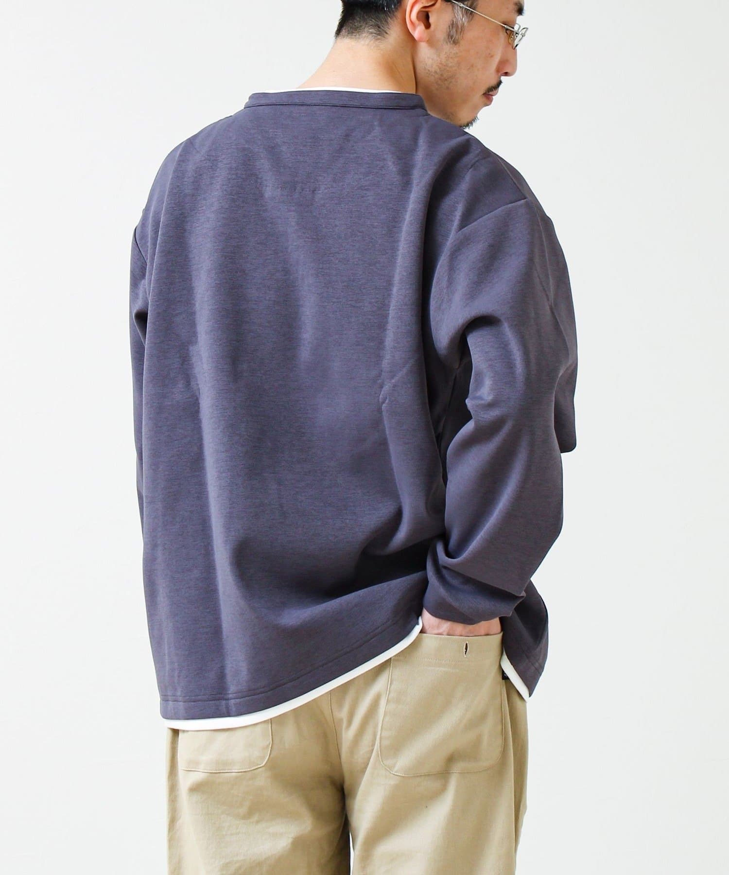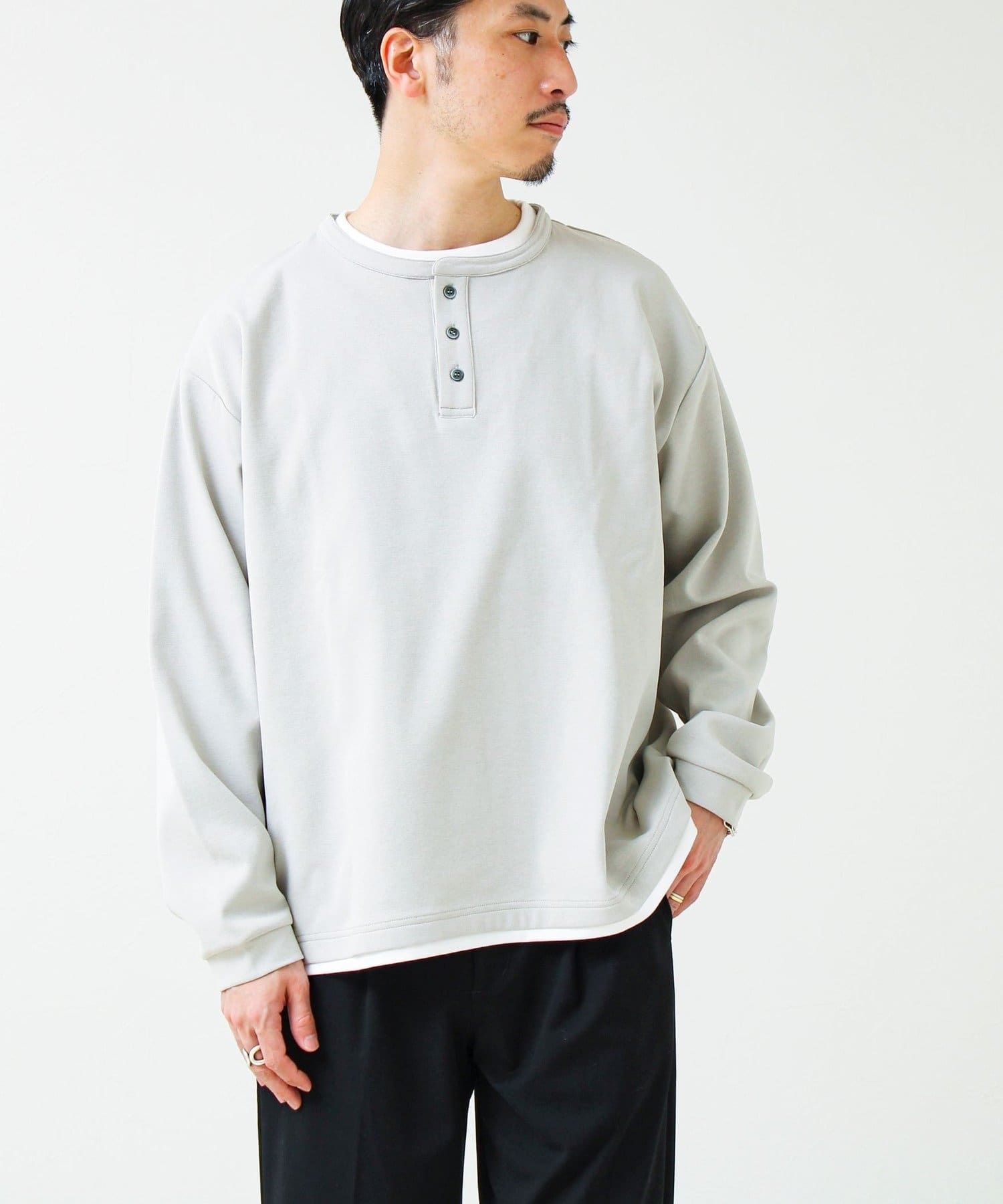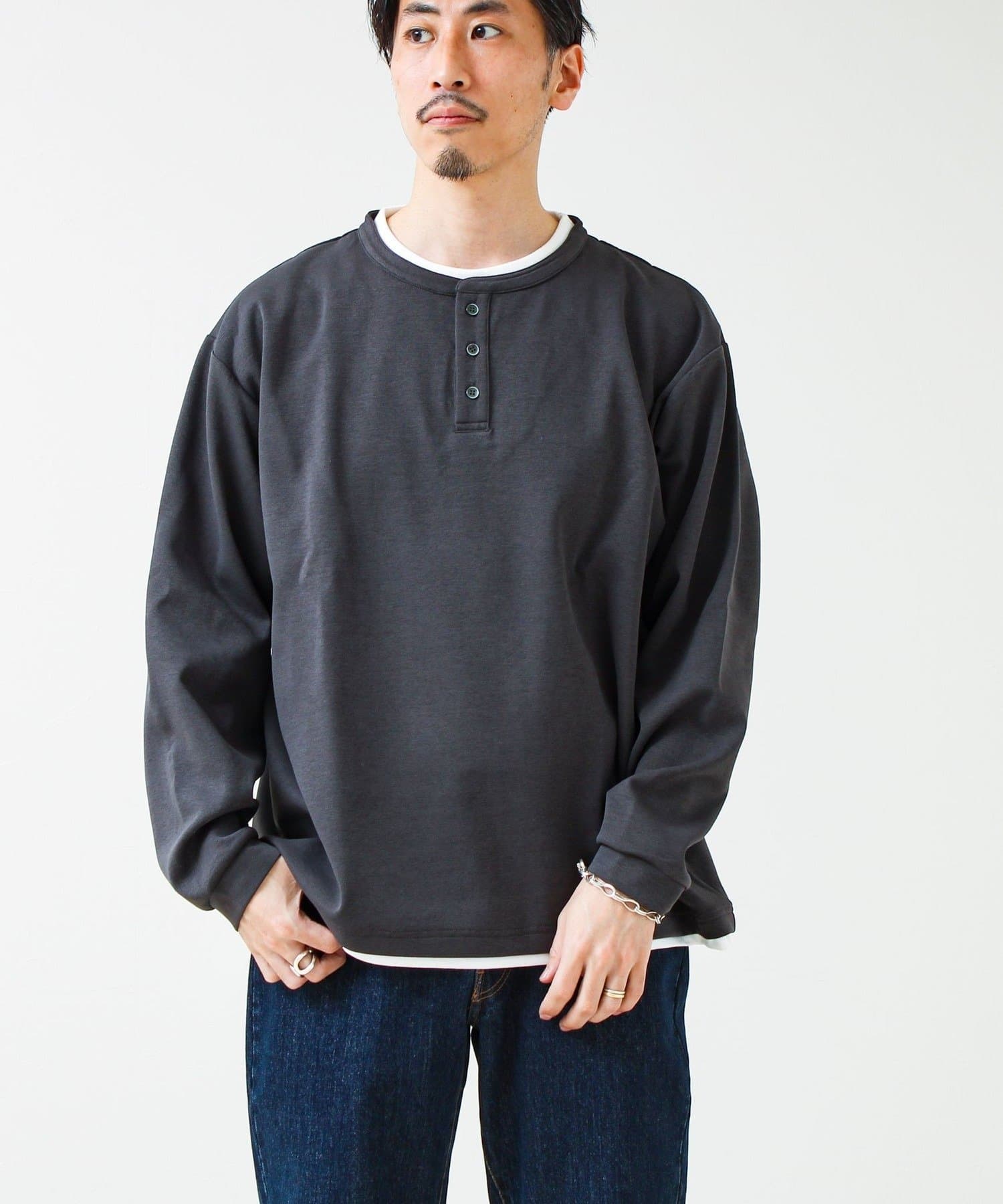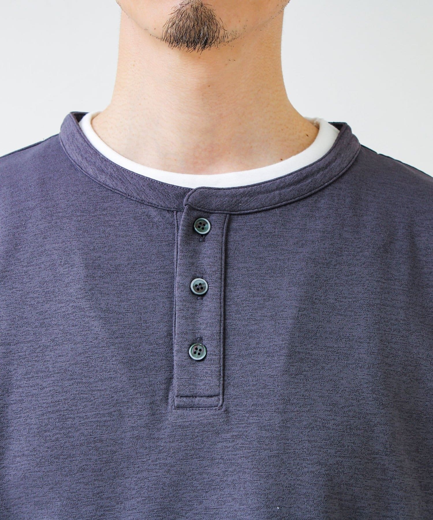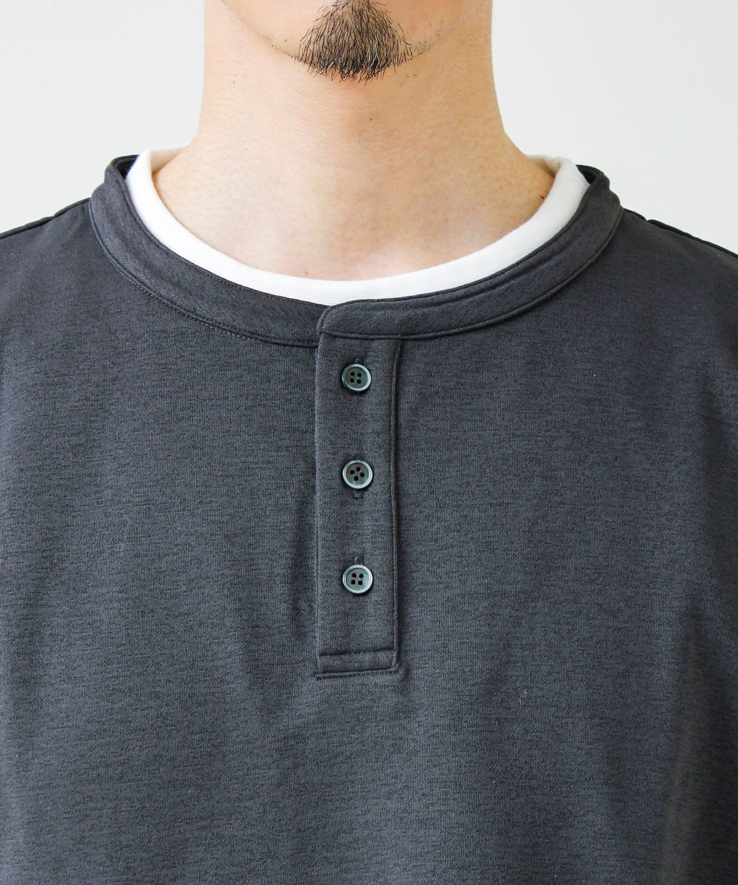 【1枚で完成する】杢ダンボール ヘンリーネックフェイクレイヤー ロンT
