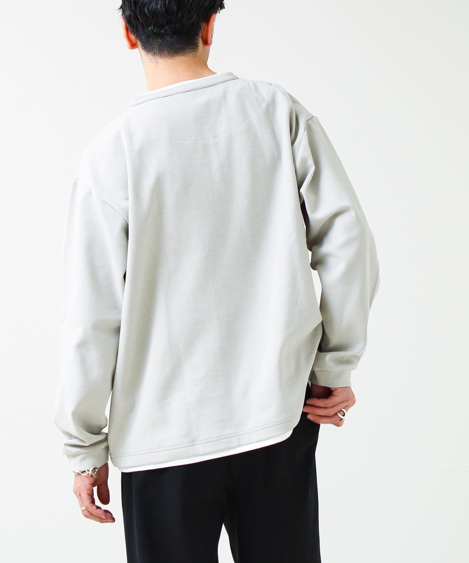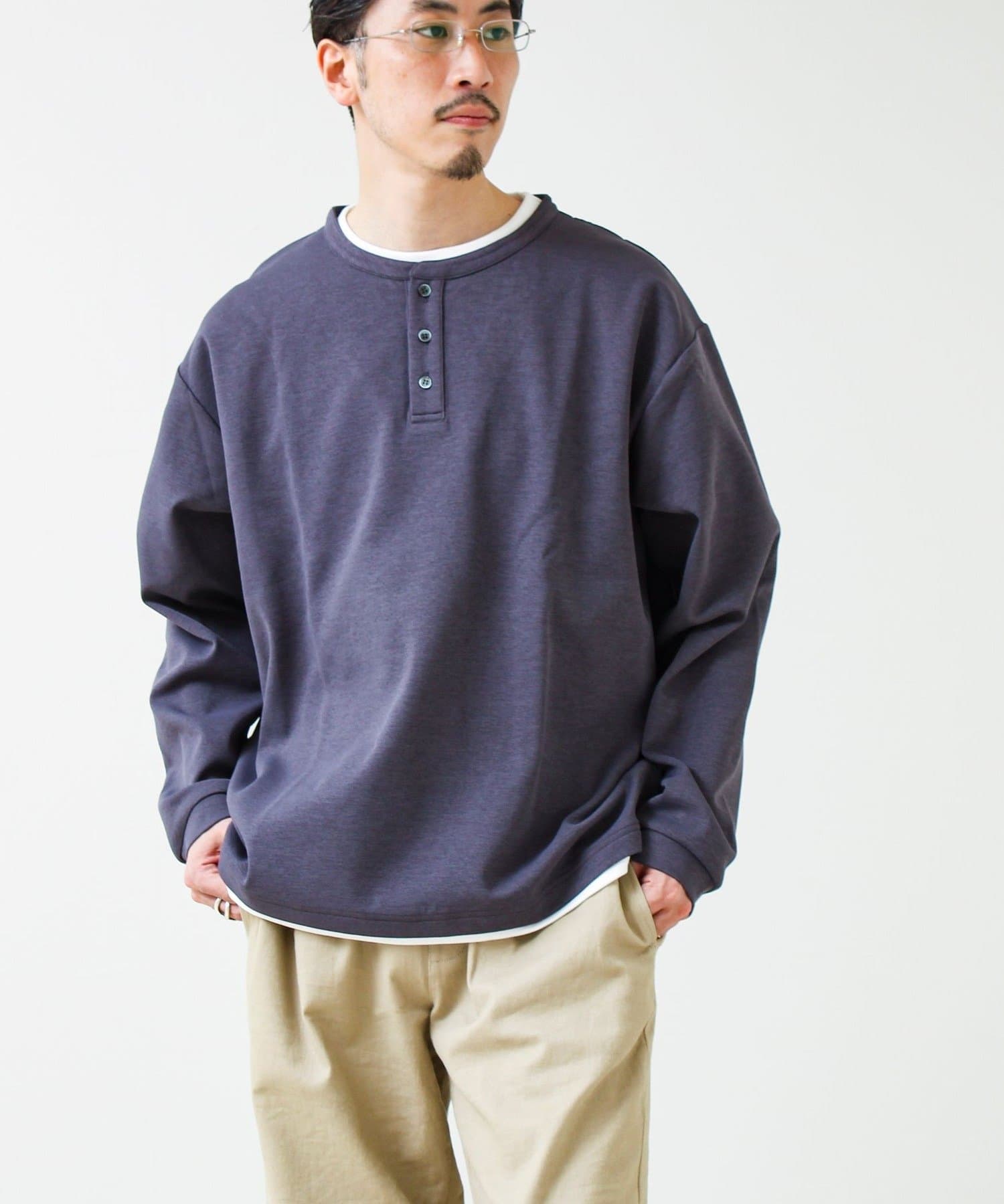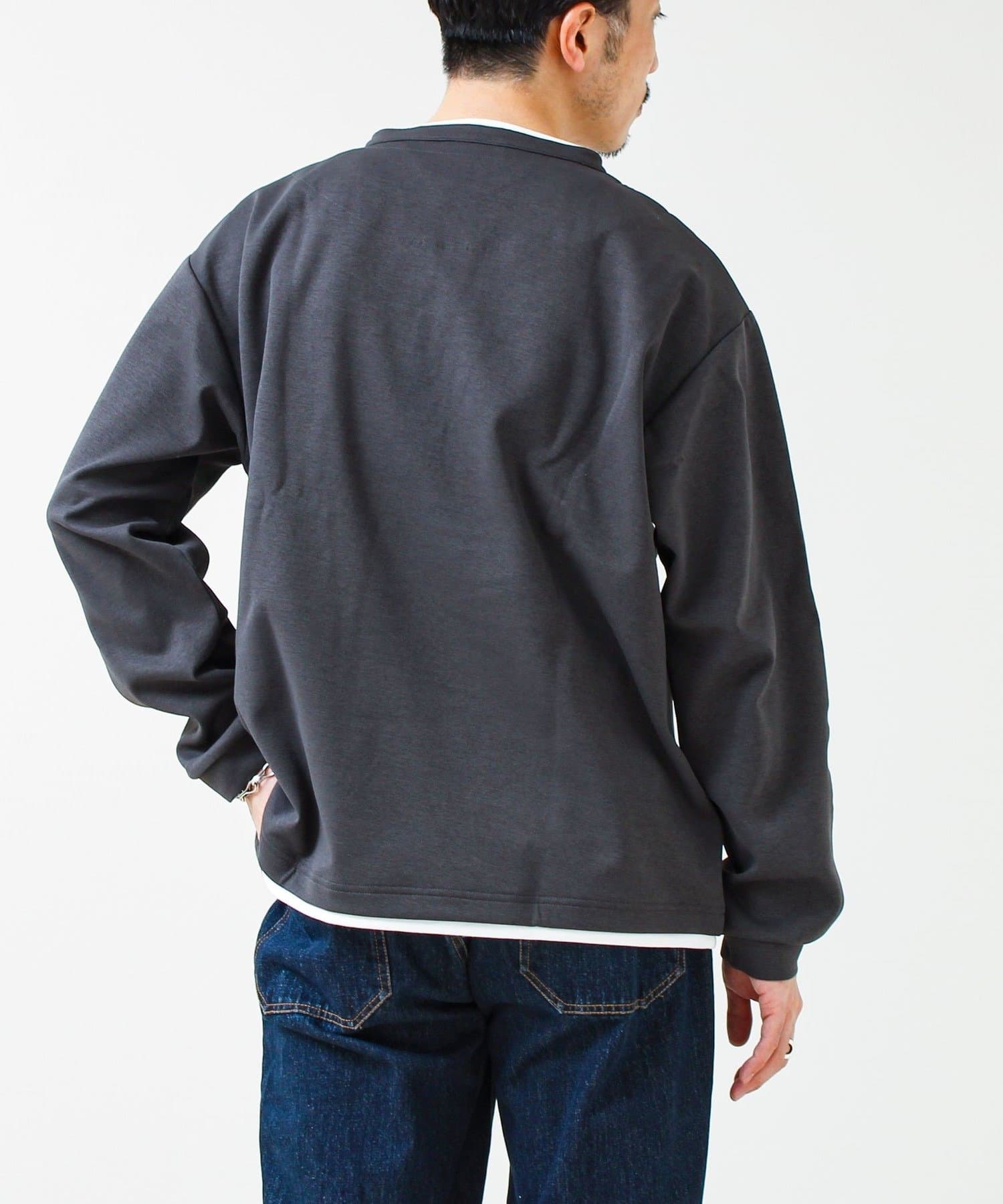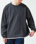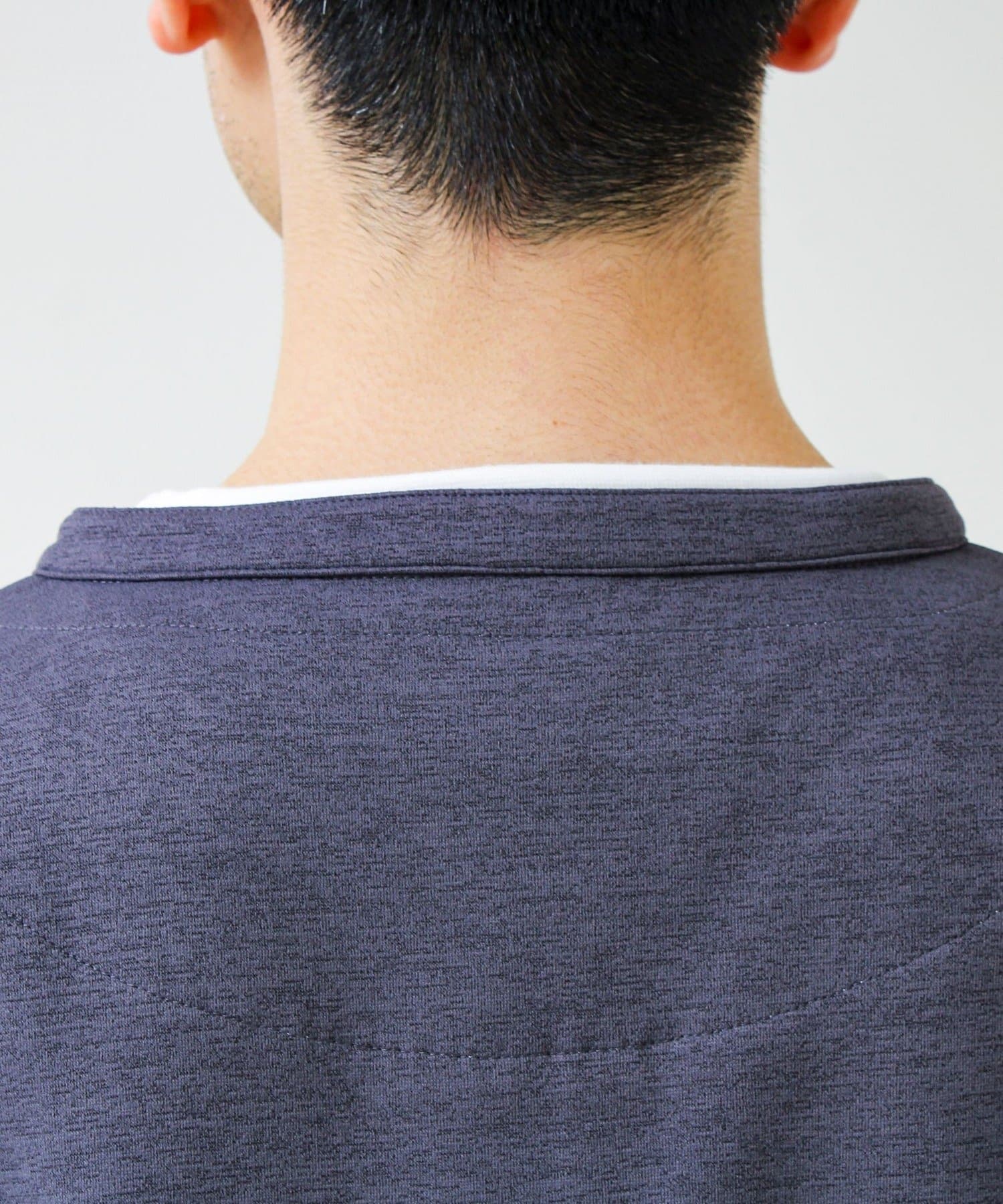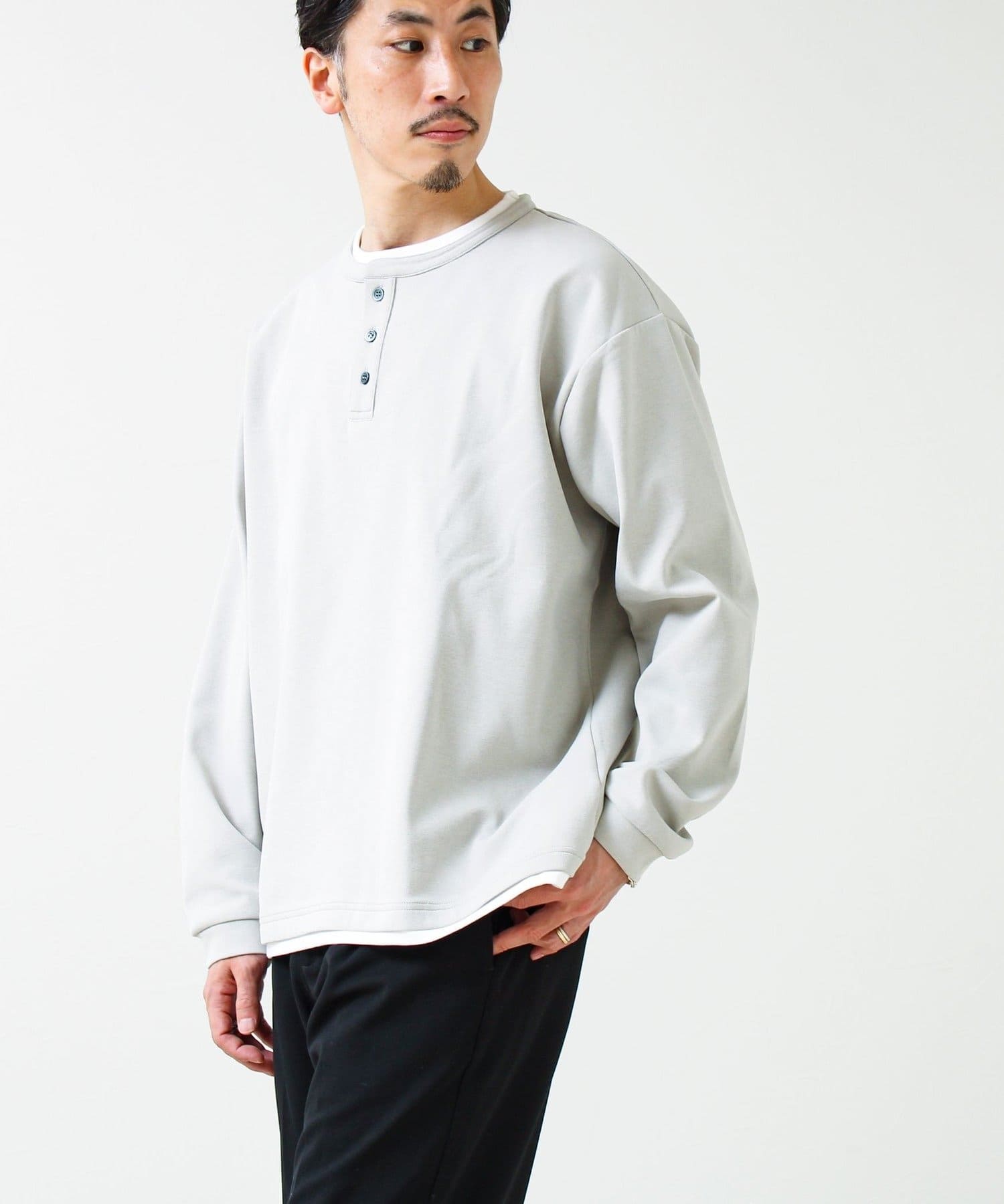 【1枚で完成する】杢ダンボール ヘンリーネックフェイクレイヤー ロンT