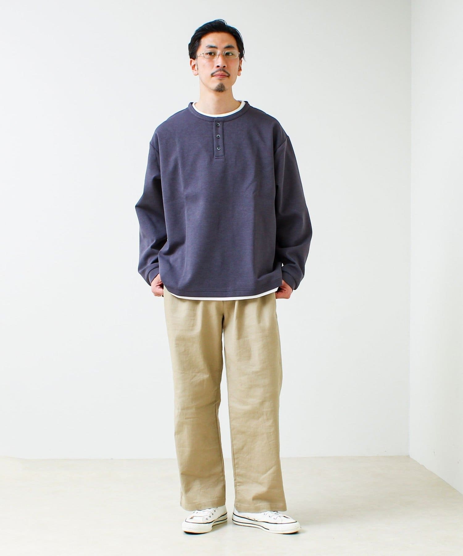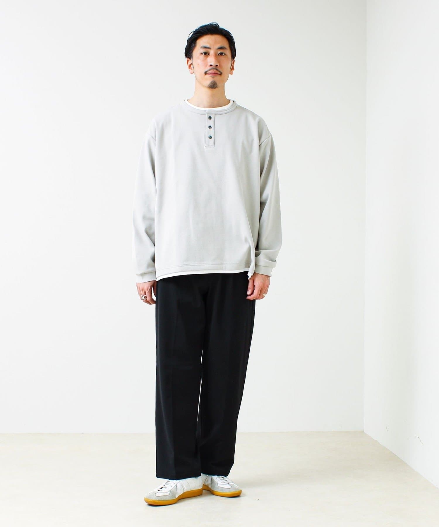 ・ヘンリーネックのボタン使いでクリーンかつ程よい抜け感