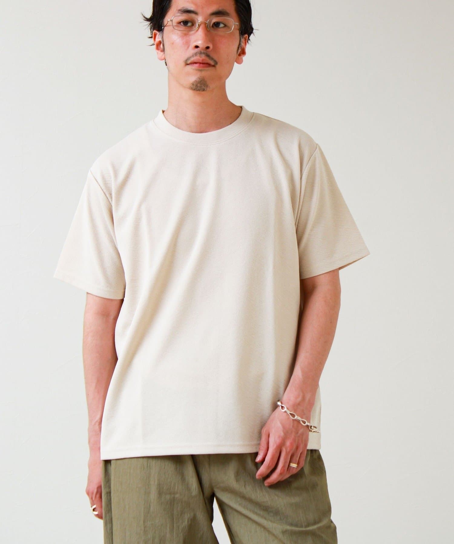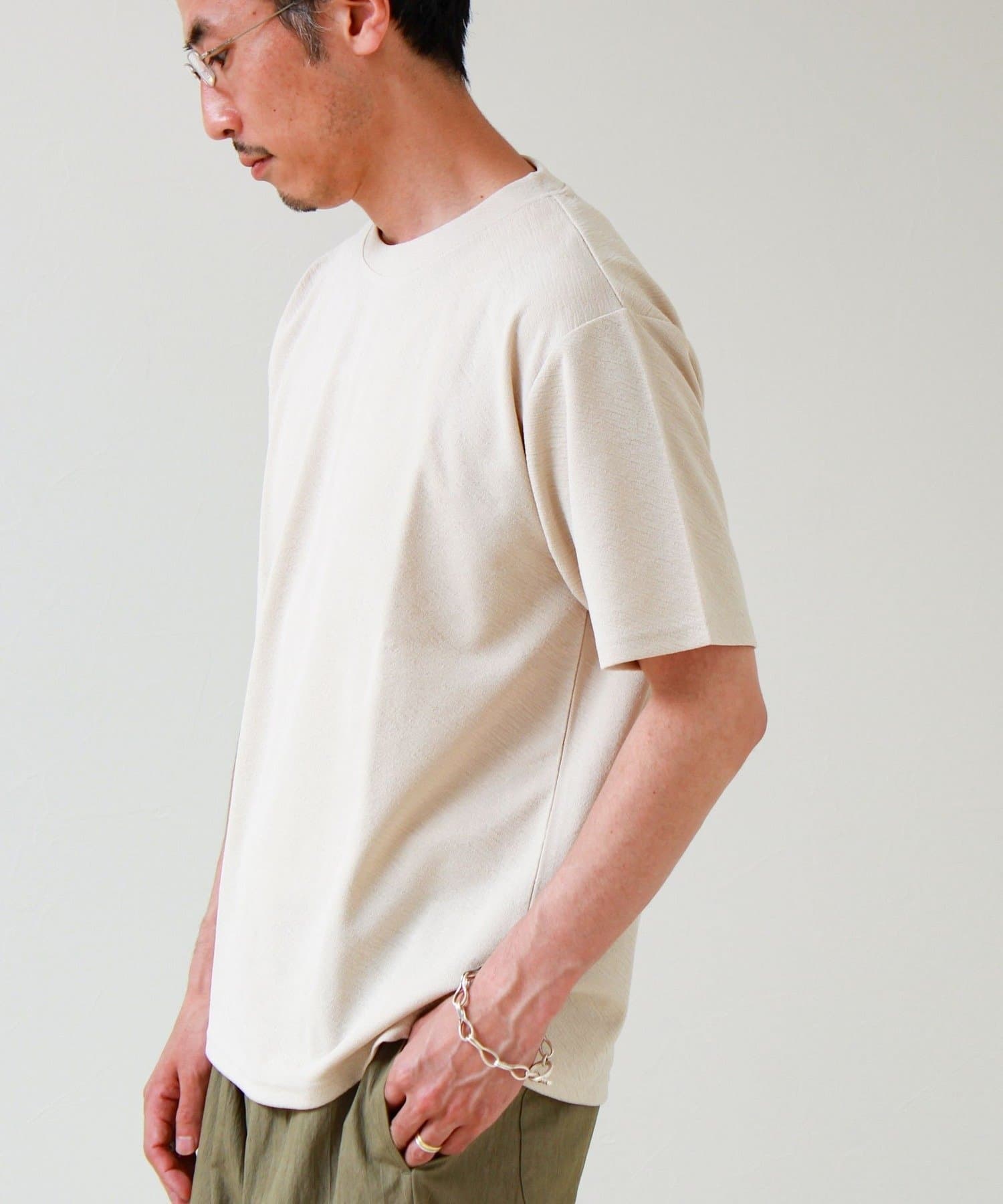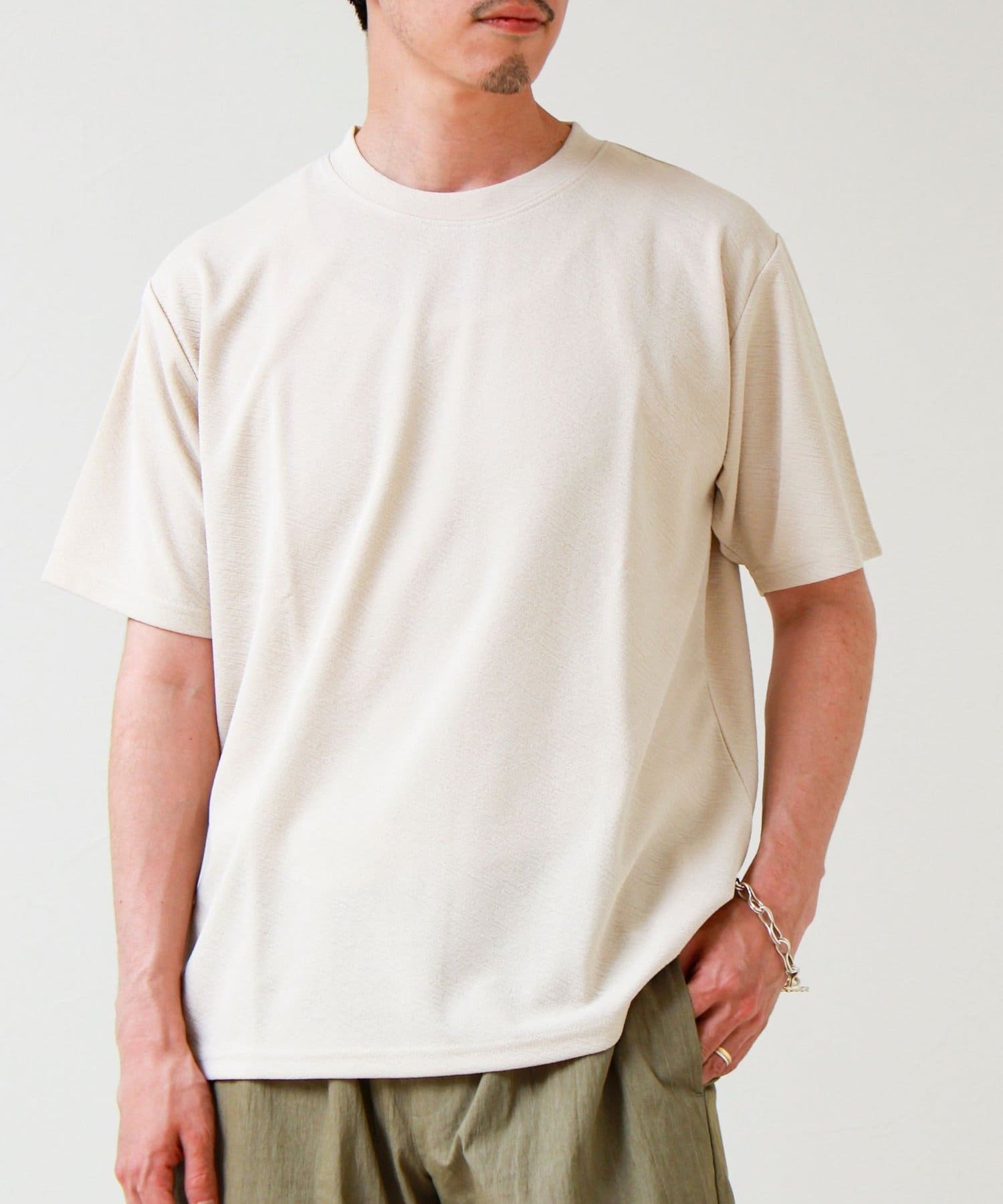 #FREDY&GLOSTER #ジャカードTシャツ #無地見え #大人カジュアル #シンプルコーデ #夏コーデ #リラックススタイル #きれいめカジュアル #ワントーンコーデ #半袖Tシャツ