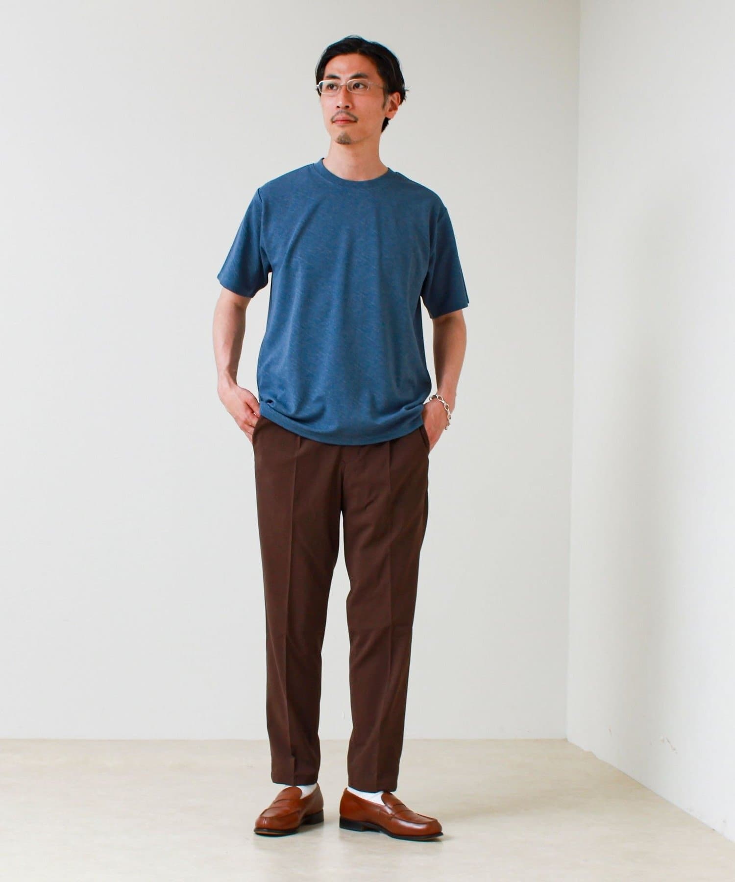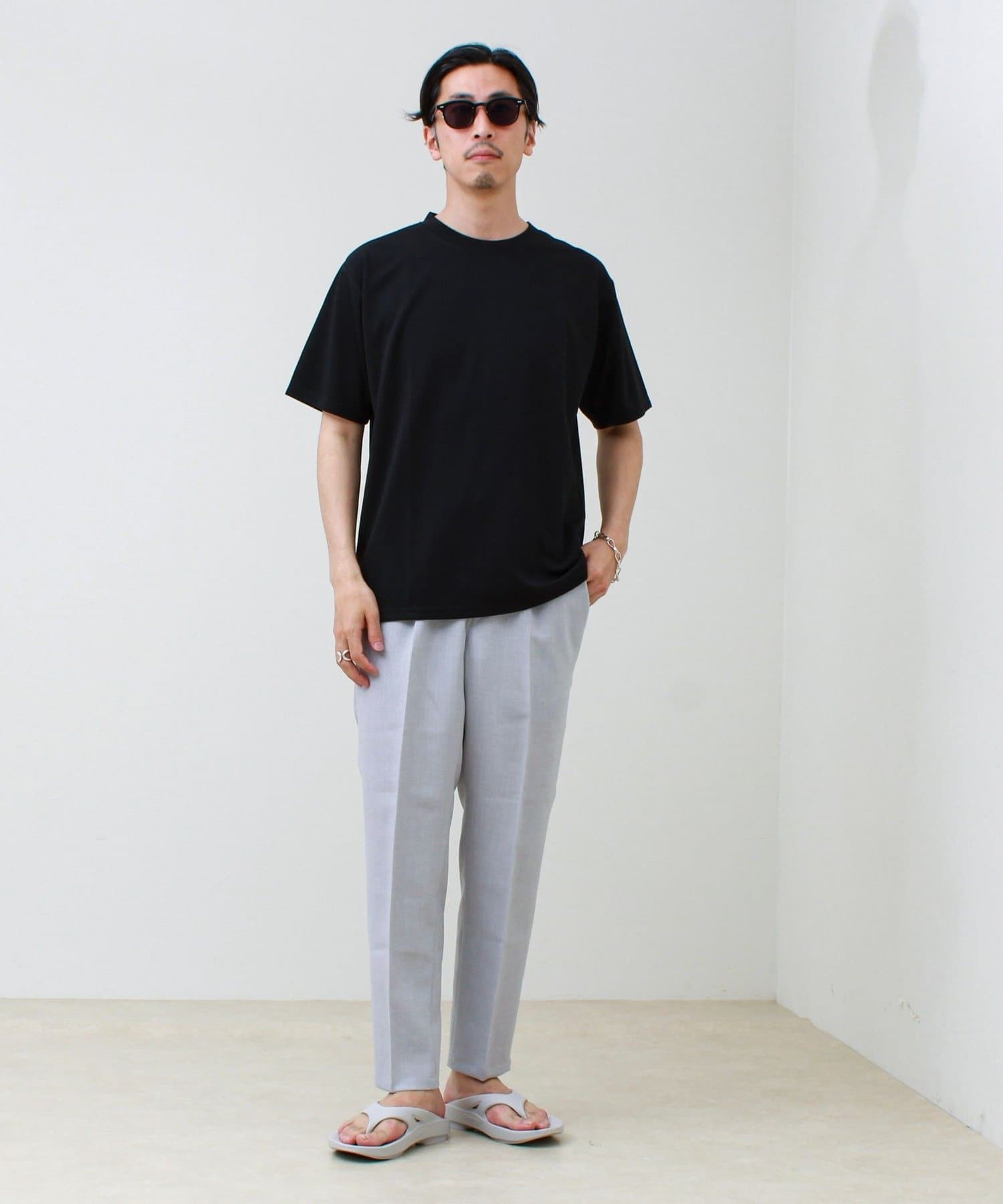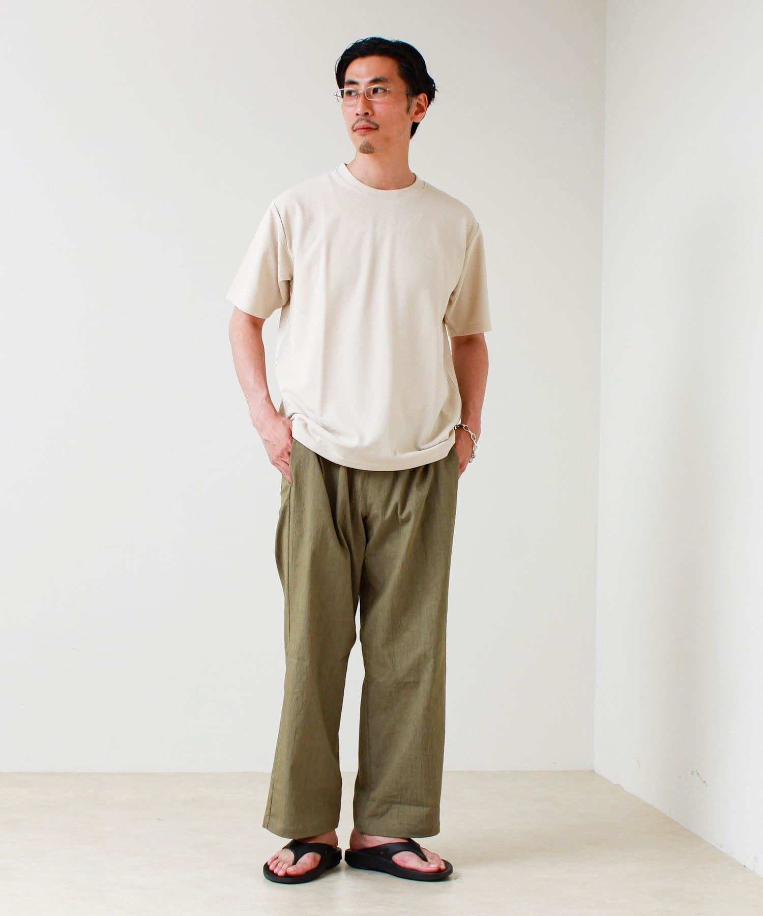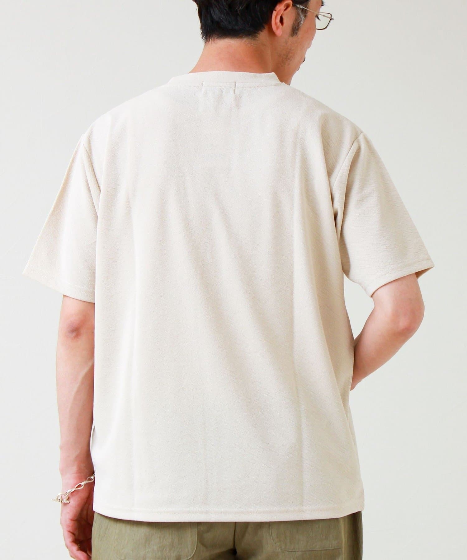 #FREDY&GLOSTER #ジャカードTシャツ #無地見え #大人カジュアル #シンプルコーデ #夏コーデ #リラックススタイル #きれいめカジュアル #ワントーンコーデ #半袖Tシャツ