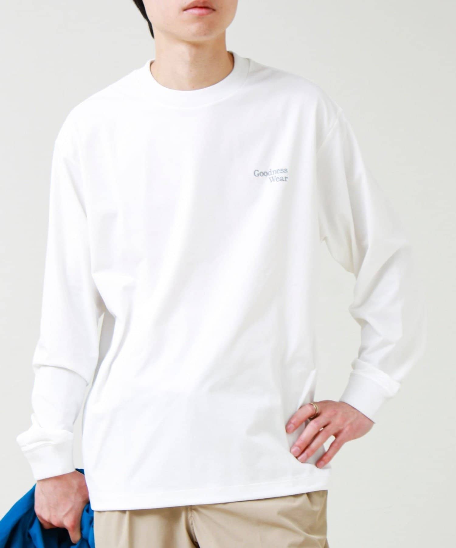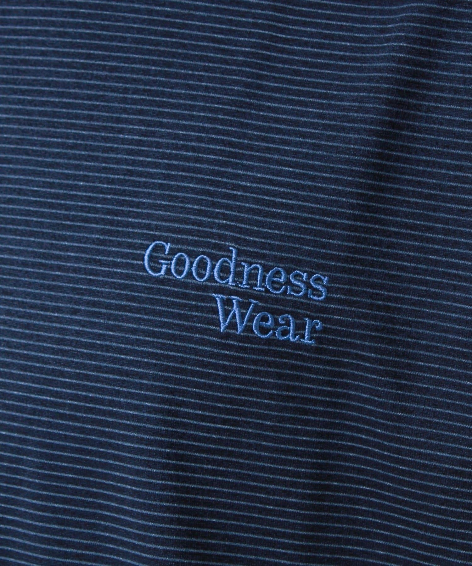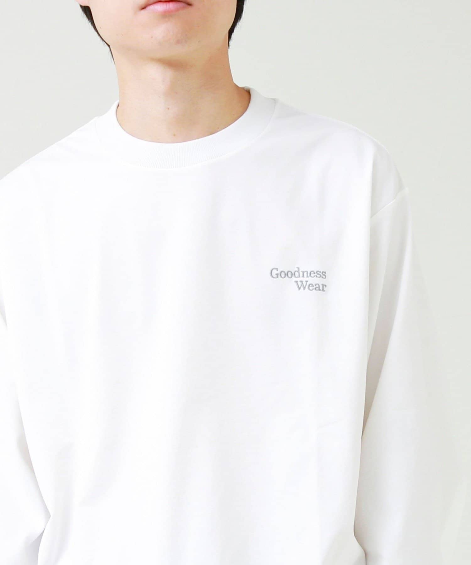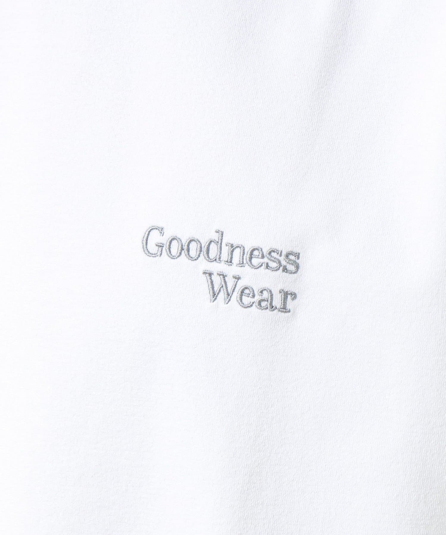 左胸には「Goodness Wear」のミニロゴ刺繍を配置し、シンプルながらアクセントの効いたデザインに。