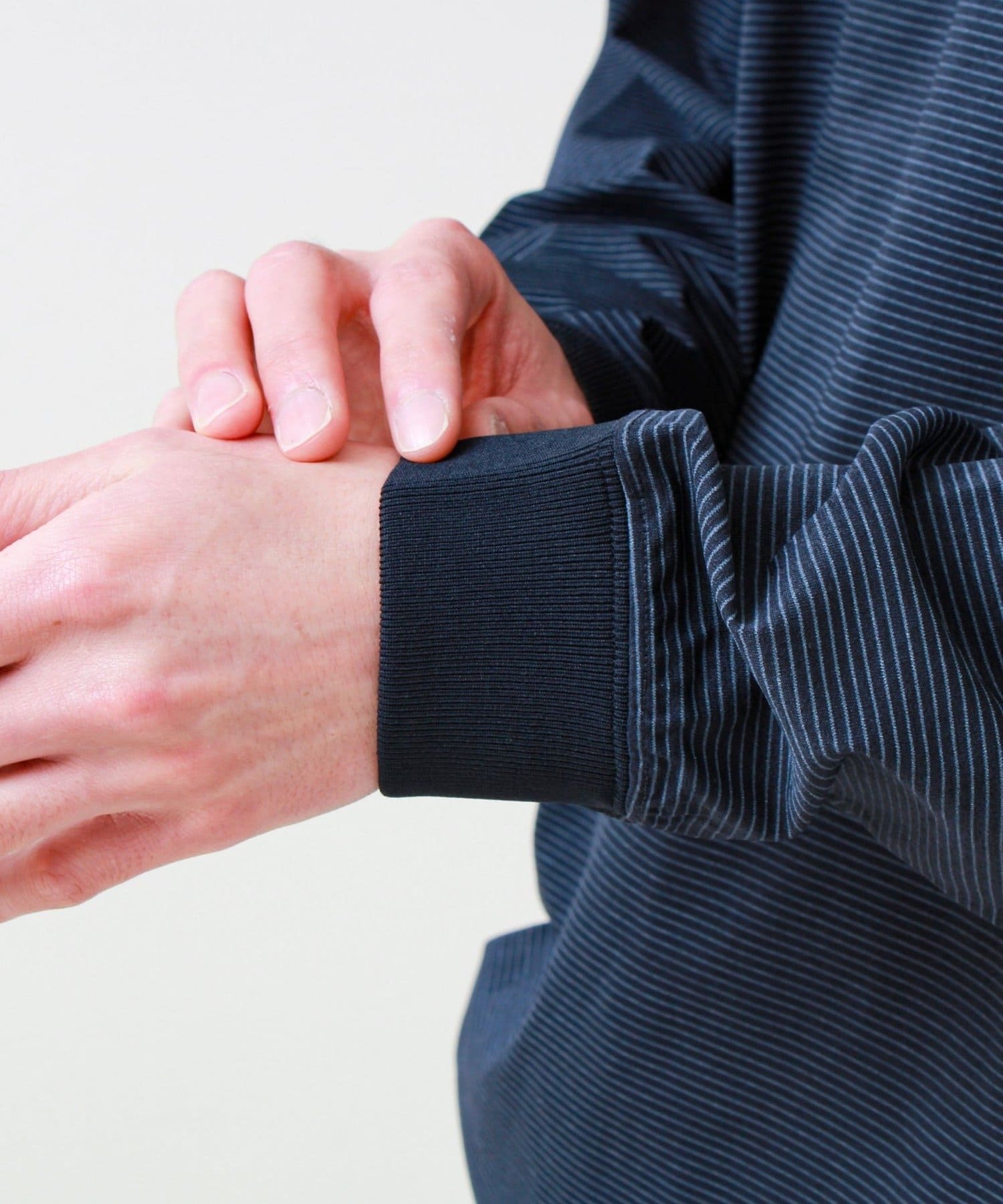 特殊ポリエステル糸を使用した生地は、優れた速乾性・ストレッチ性・耐久性を兼ね備え、街着はもちろんスポーツやアウトドア、レジャーシーンまで幅広く活躍します。