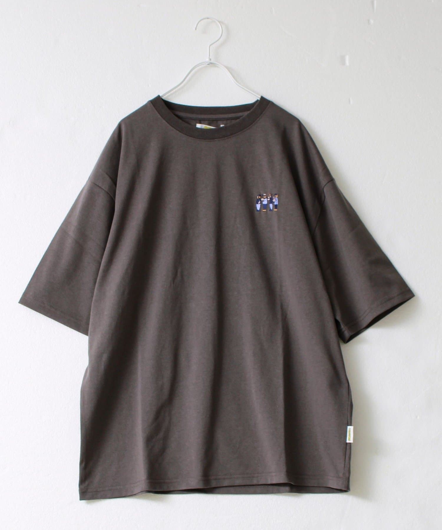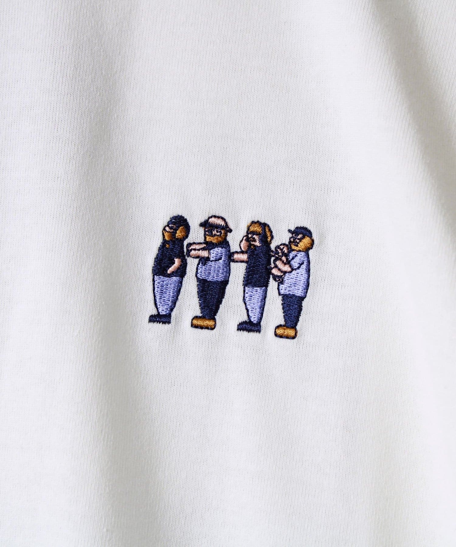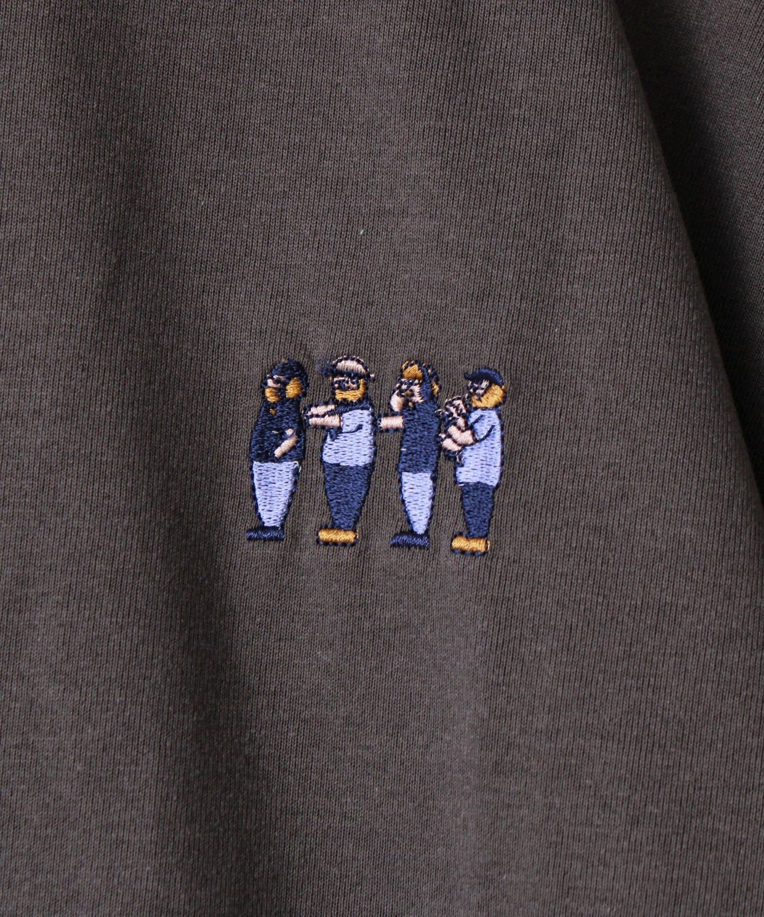 フロントにはさりげないサイズ感のオジサン刺繍。遊び心がありつつも、落ち着いた印象に。