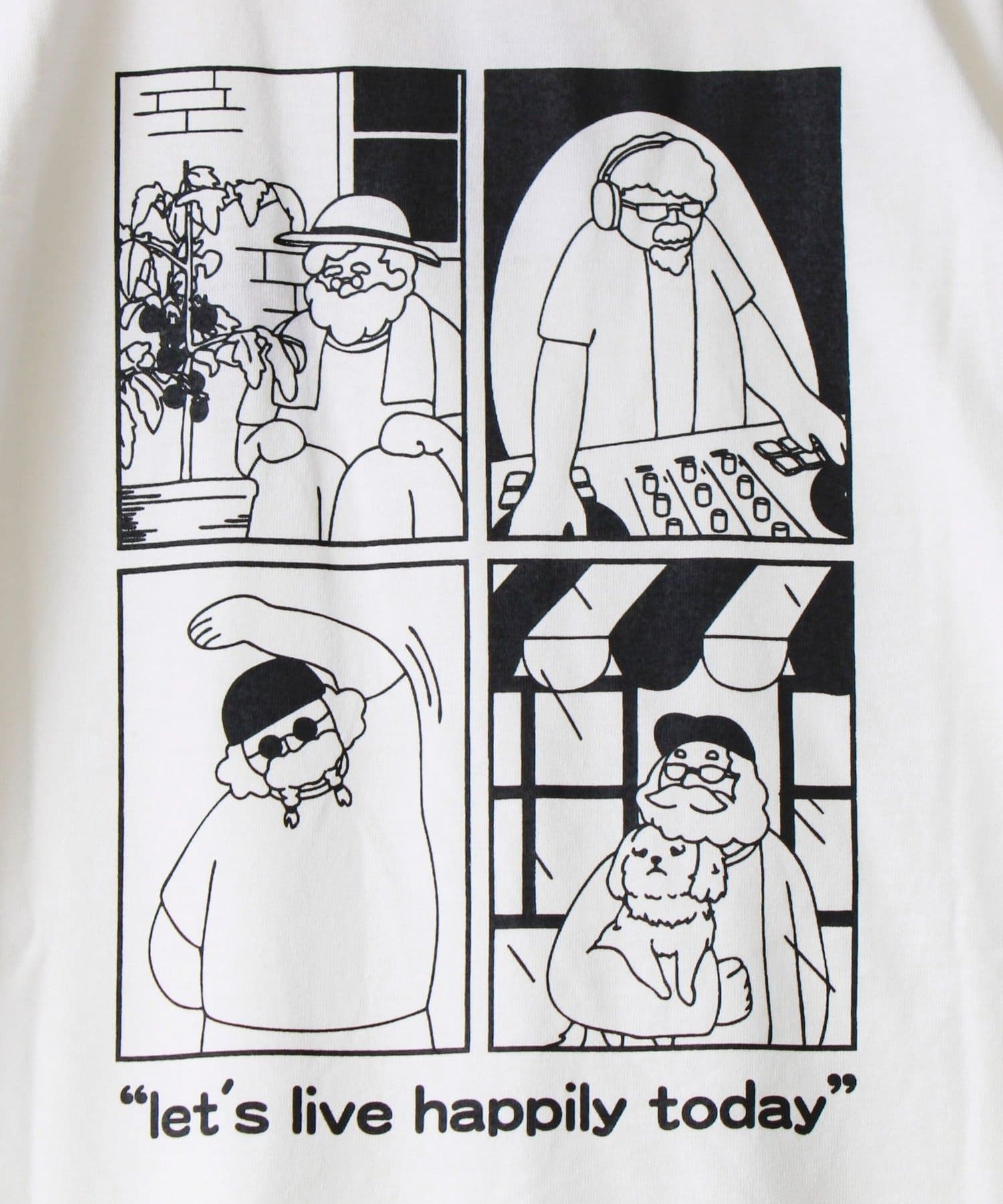 背面には4コマ風のグラフィックを配置。日常のワンシーンを切り取ったようなデザインで、後ろ姿まで印象的。