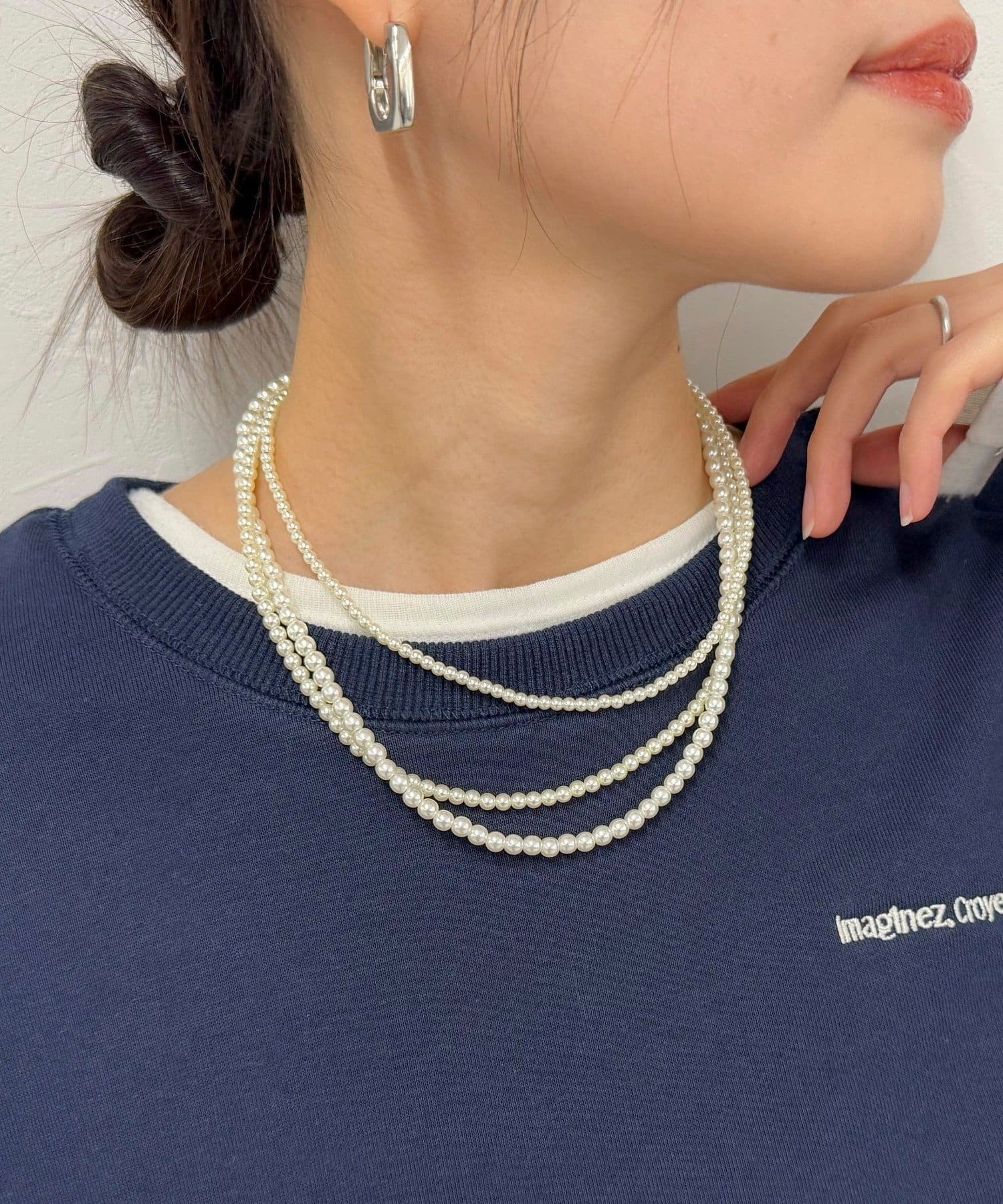 ・程よくボリュームのある3連ネックレスで付けるだけで胸元を明るくしてくれます