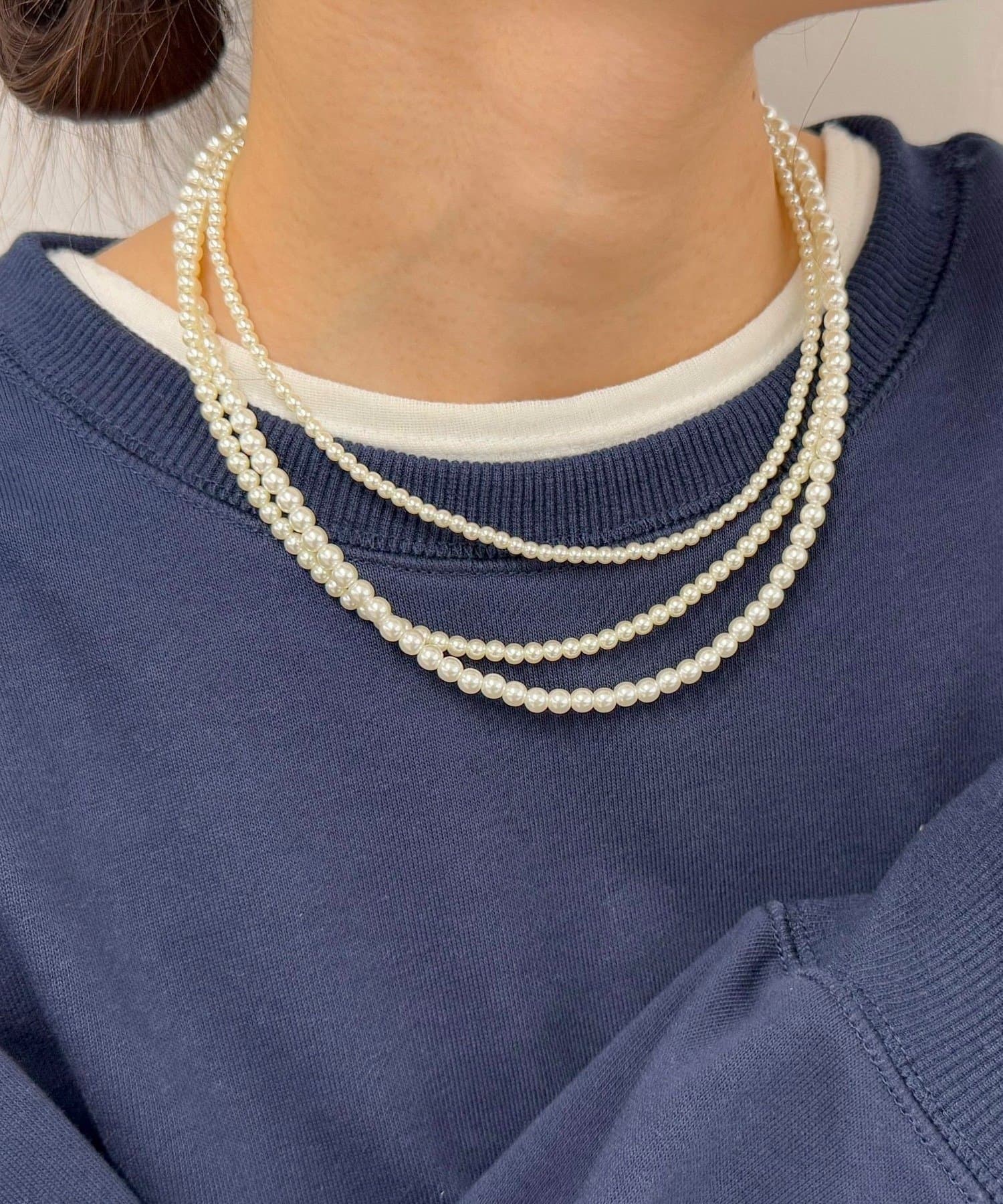 胸元が華やぐパール3連ショートネックレス