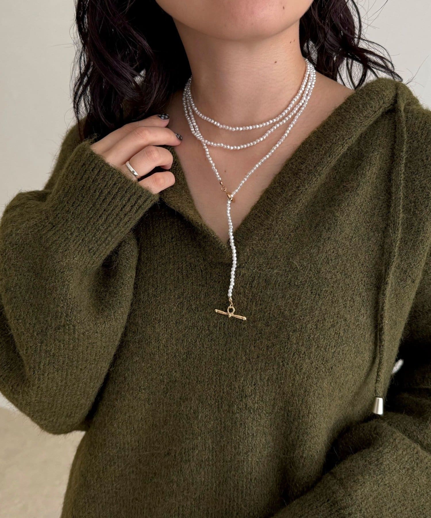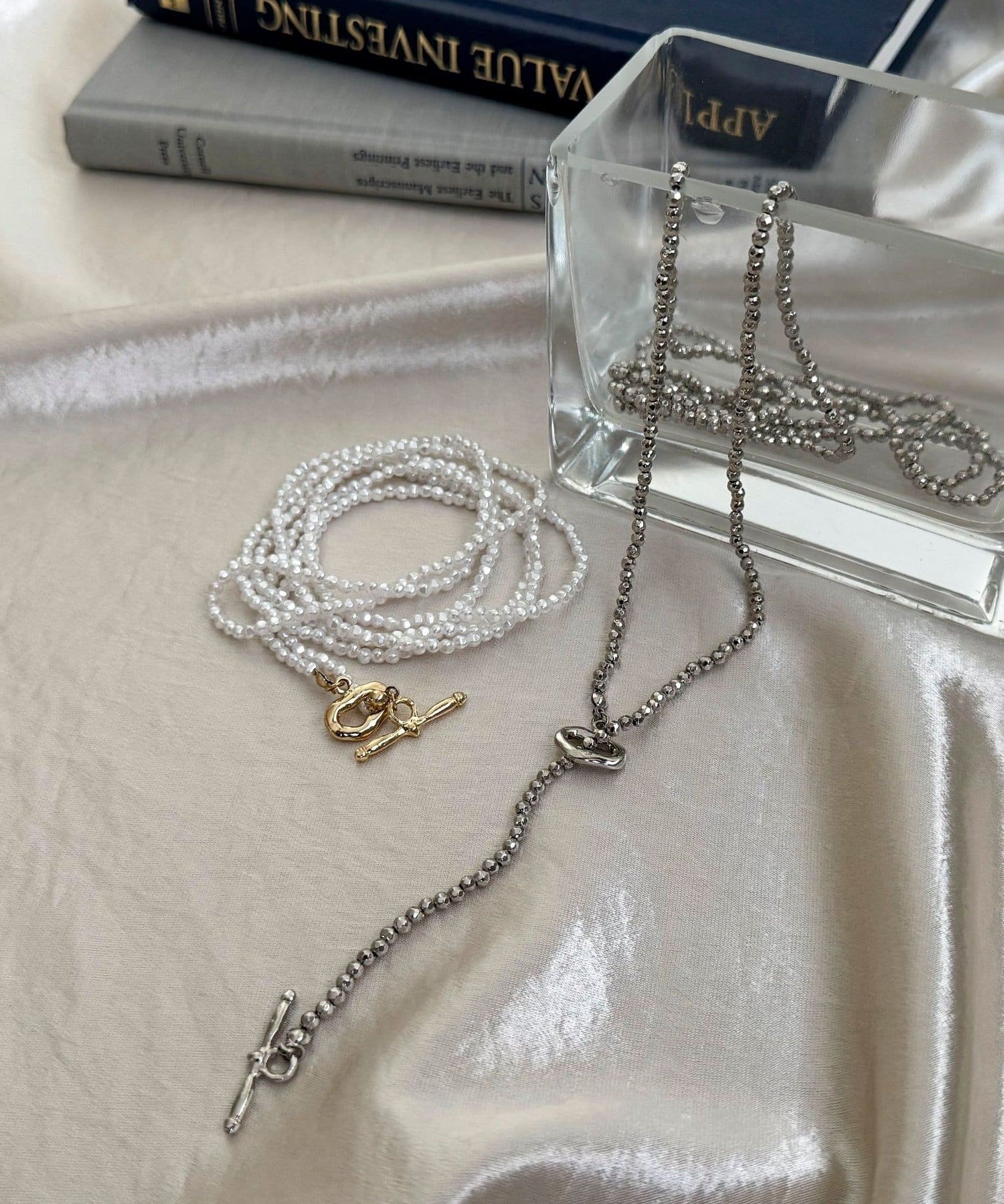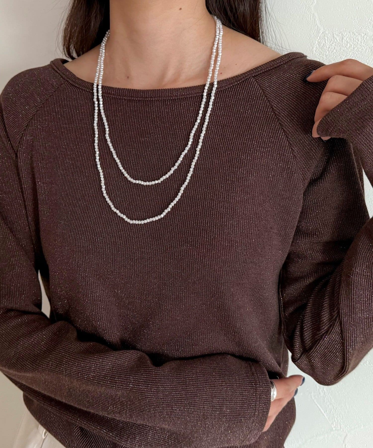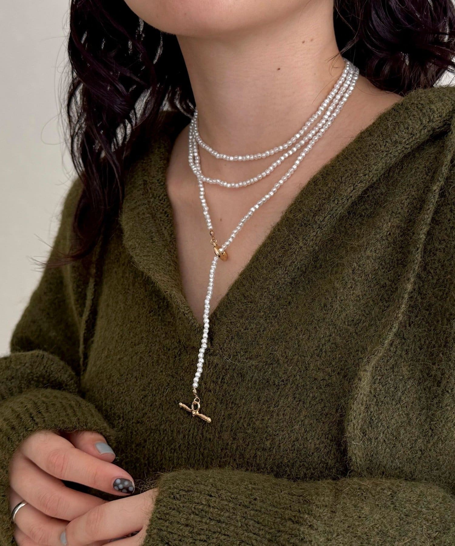 ・艶のある小粒ビーズをあしらったマンテルタイプのロングネックレス
