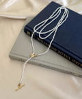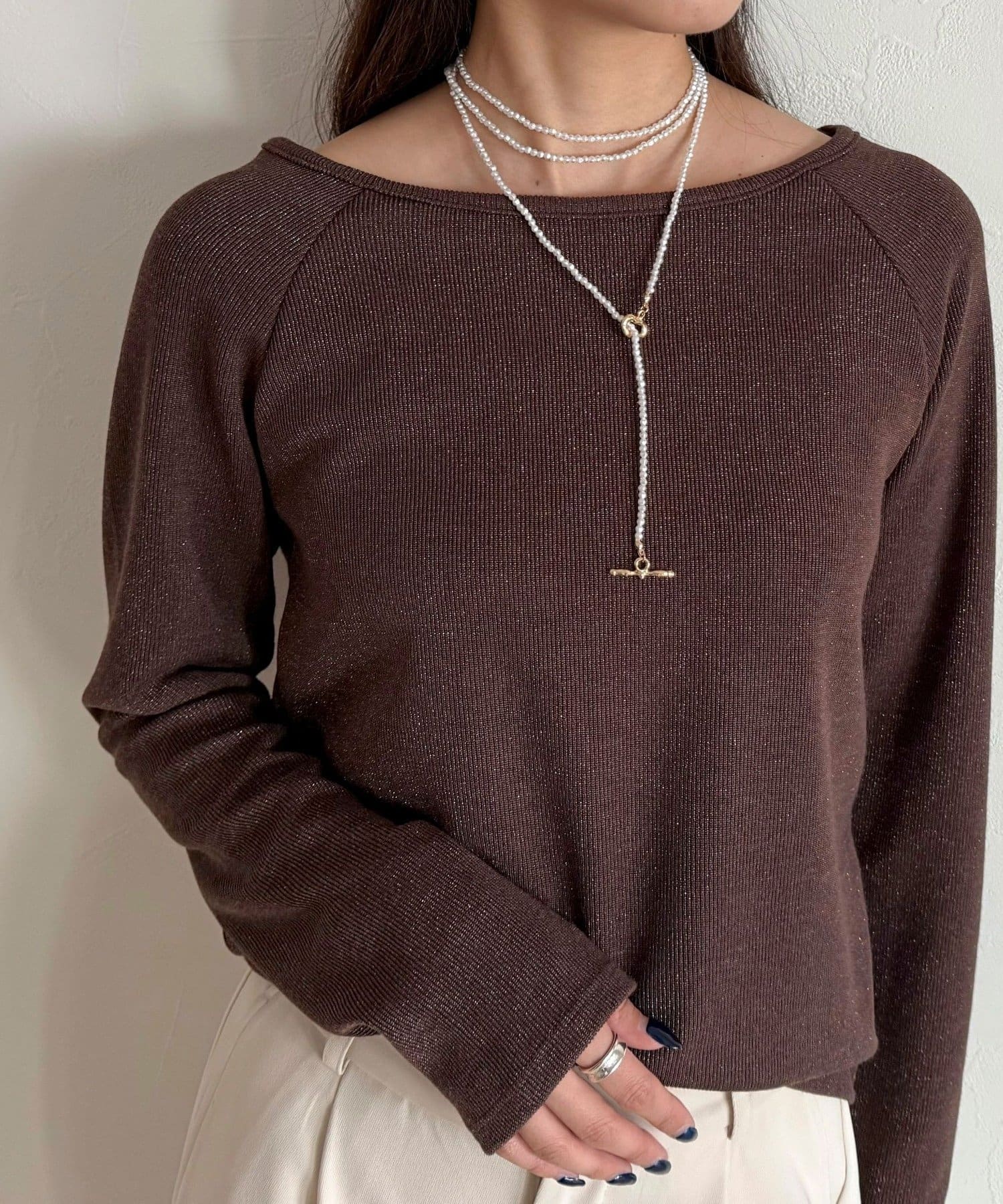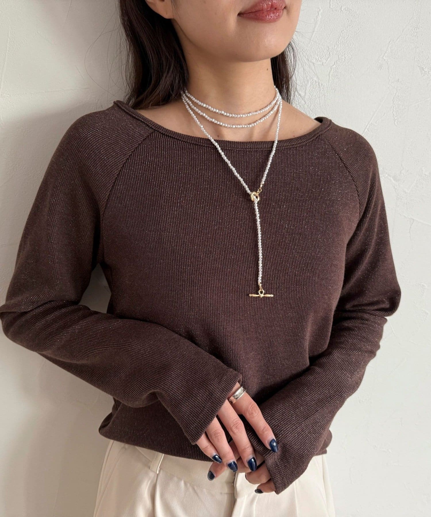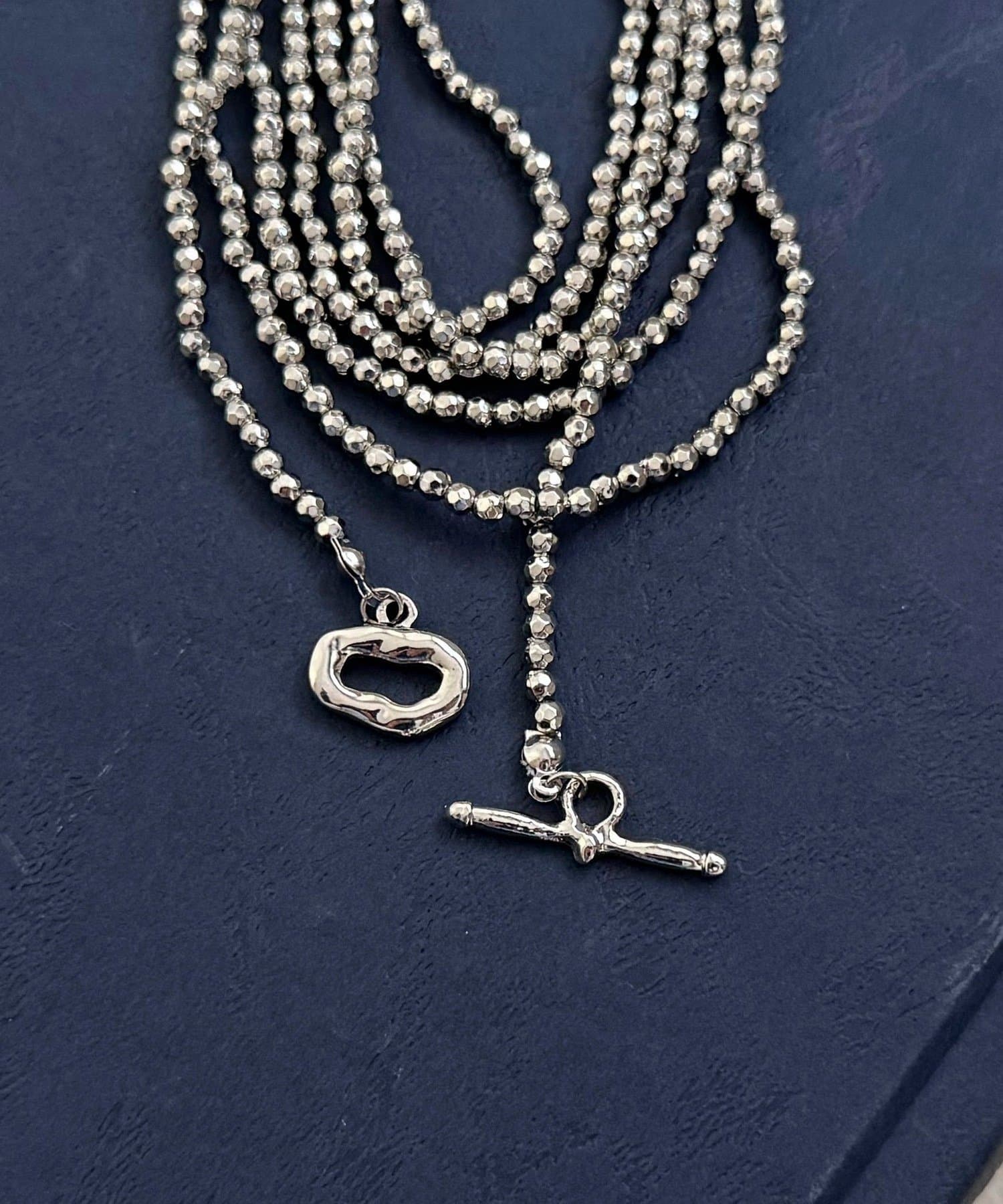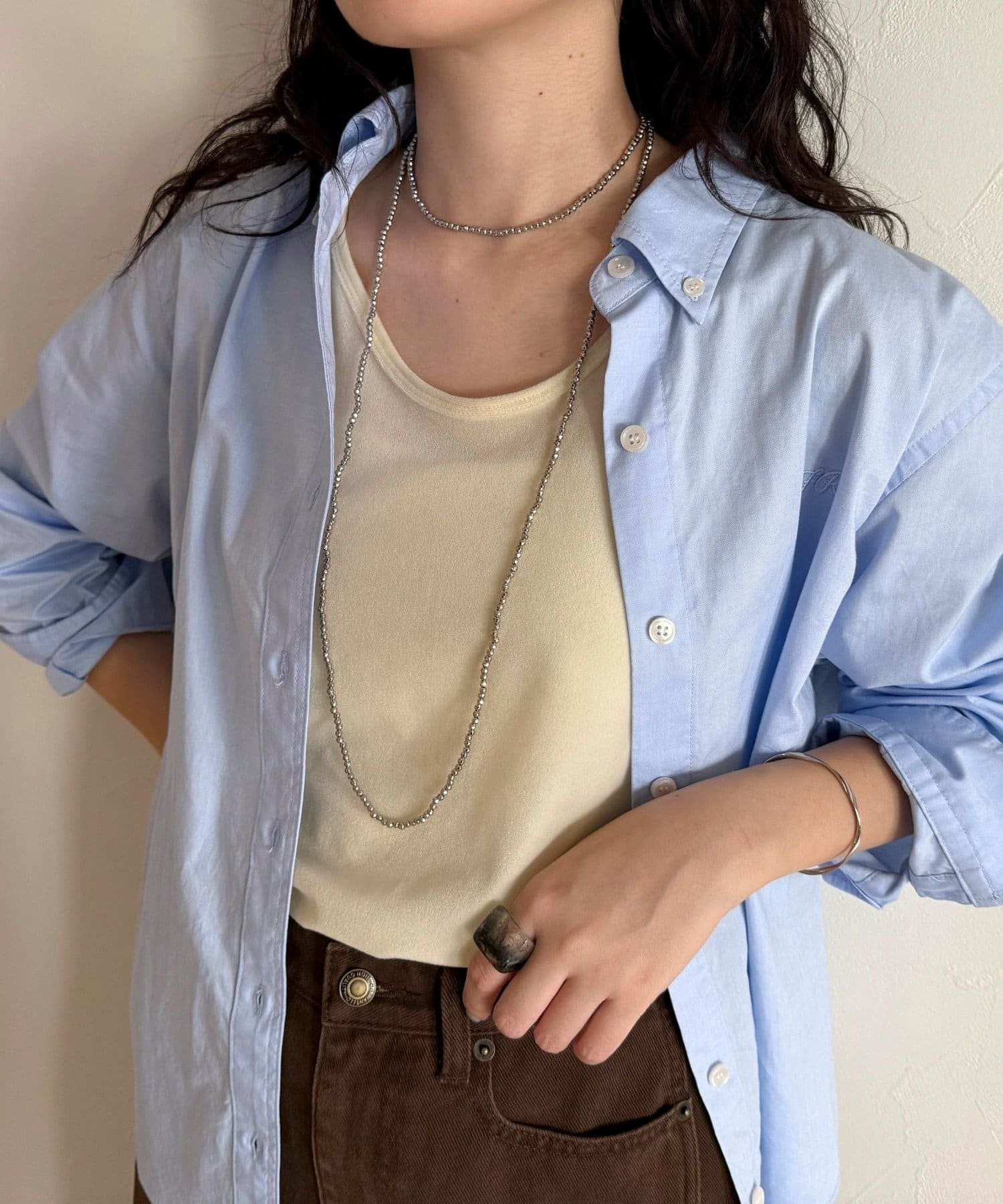 ・艶のある小粒ビーズをあしらったマンテルタイプのロングネックレス