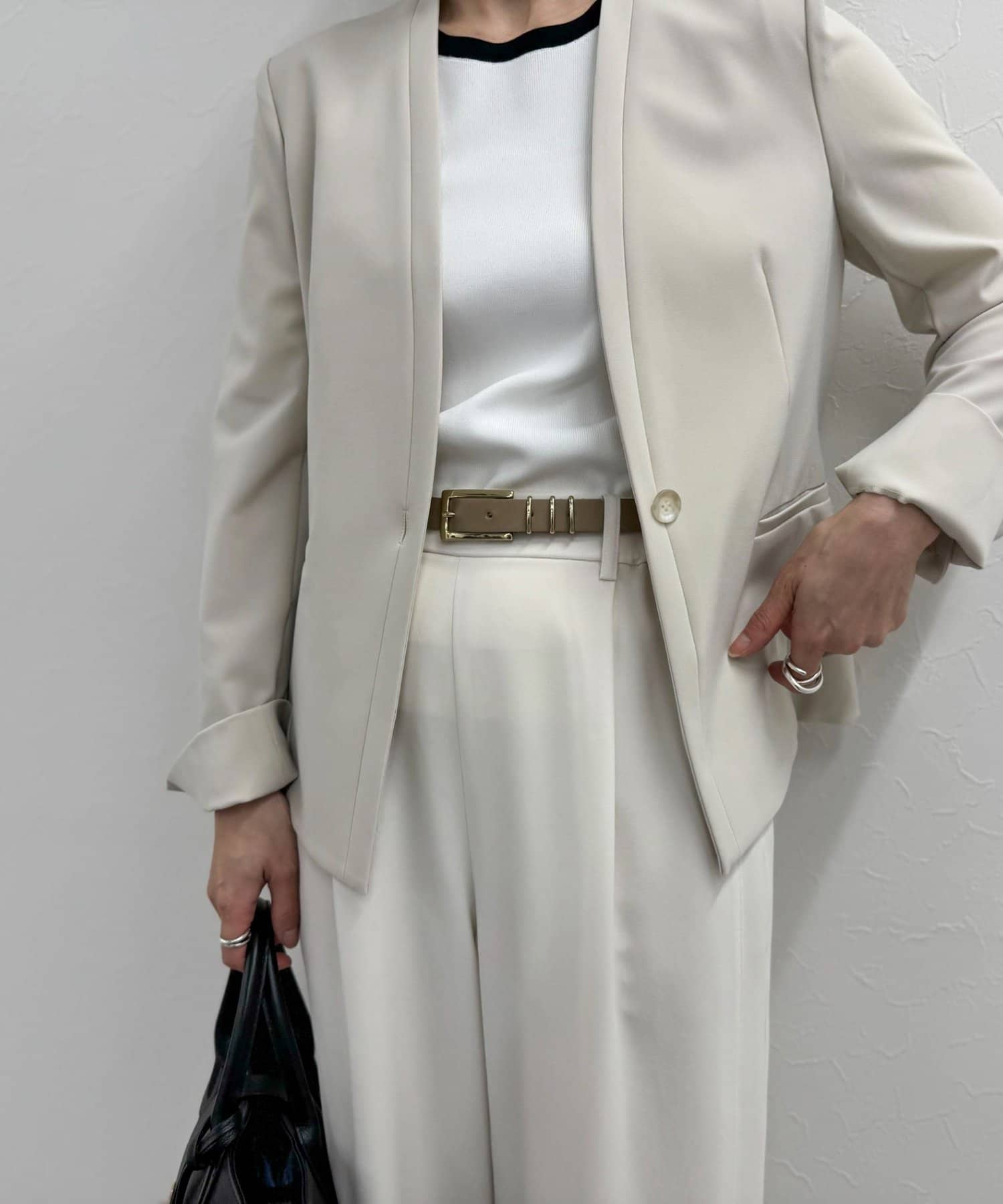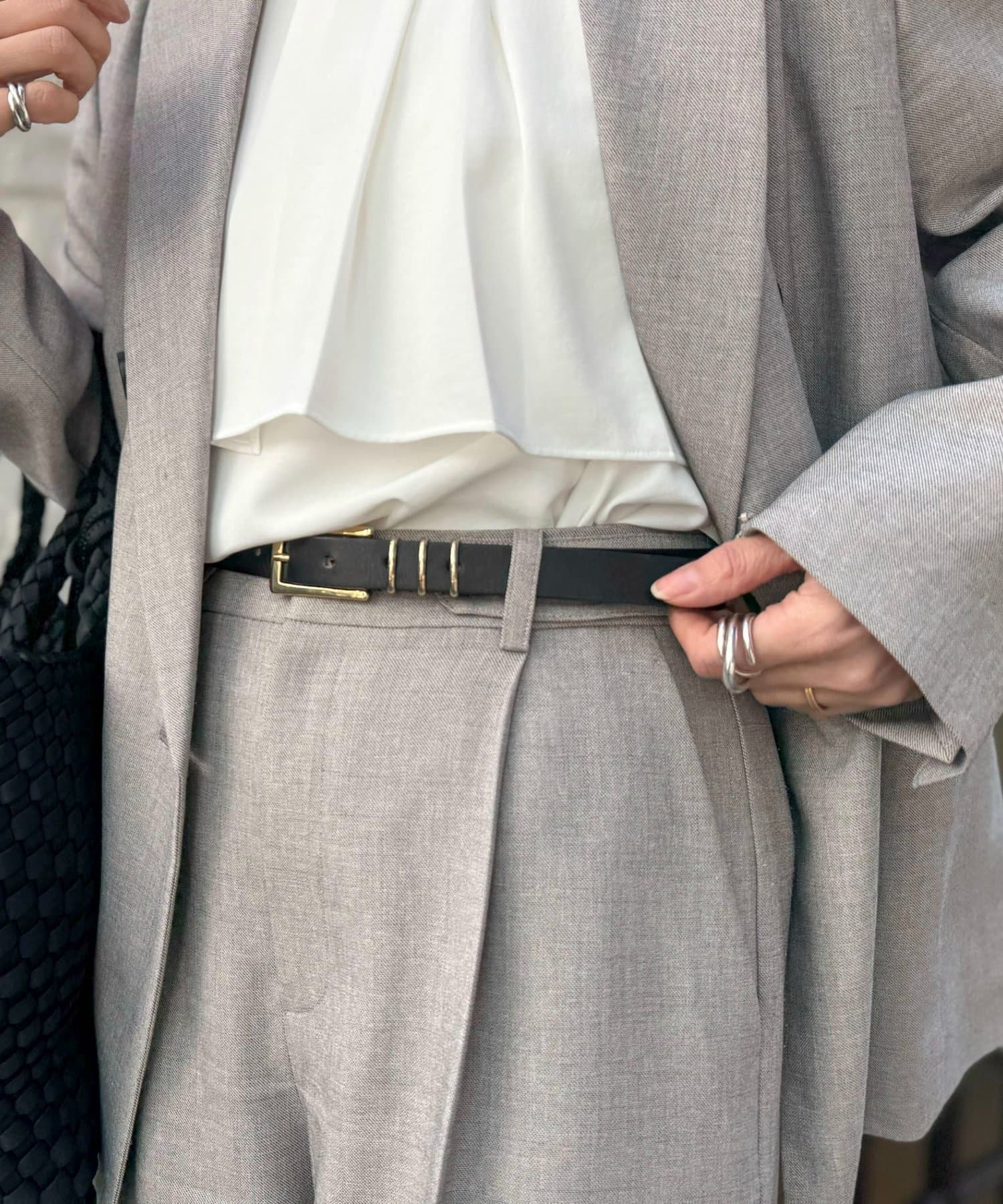 ・ゴールドバックルとリングが、シンプルながらも目を引くアクセントに。