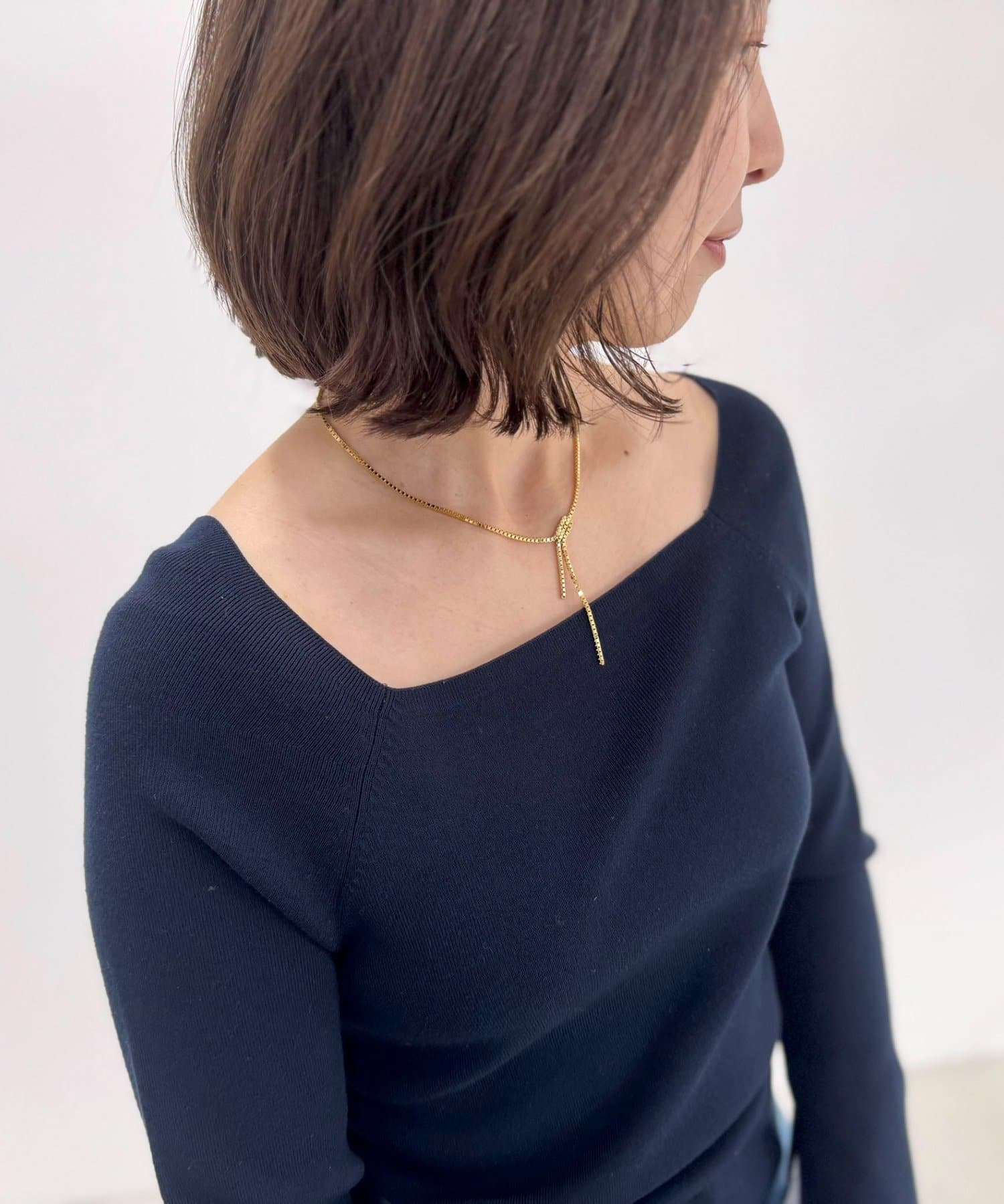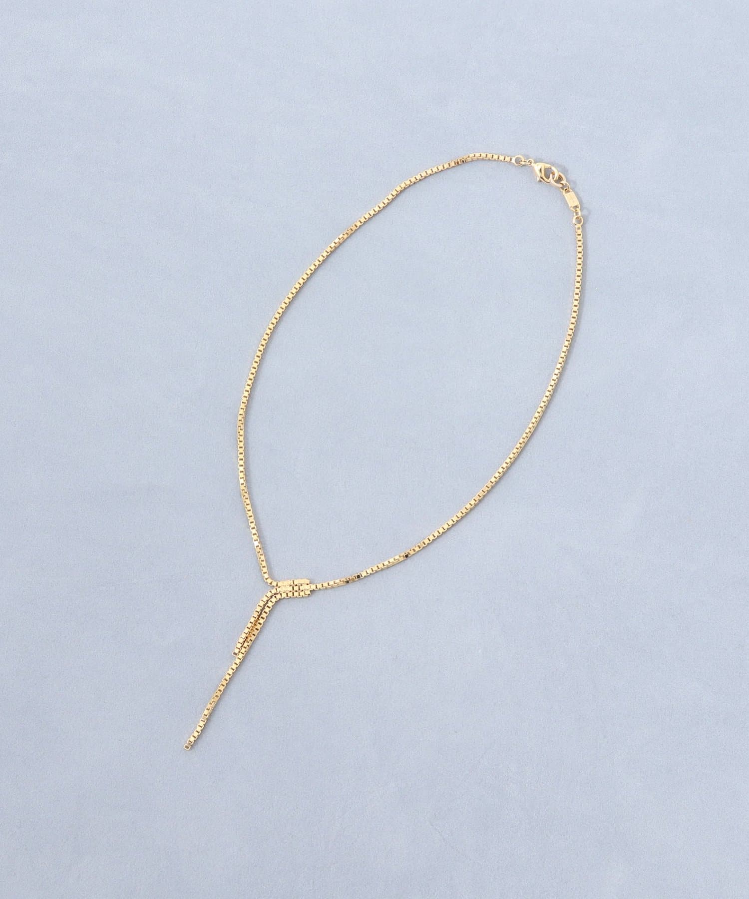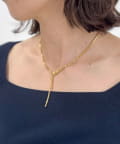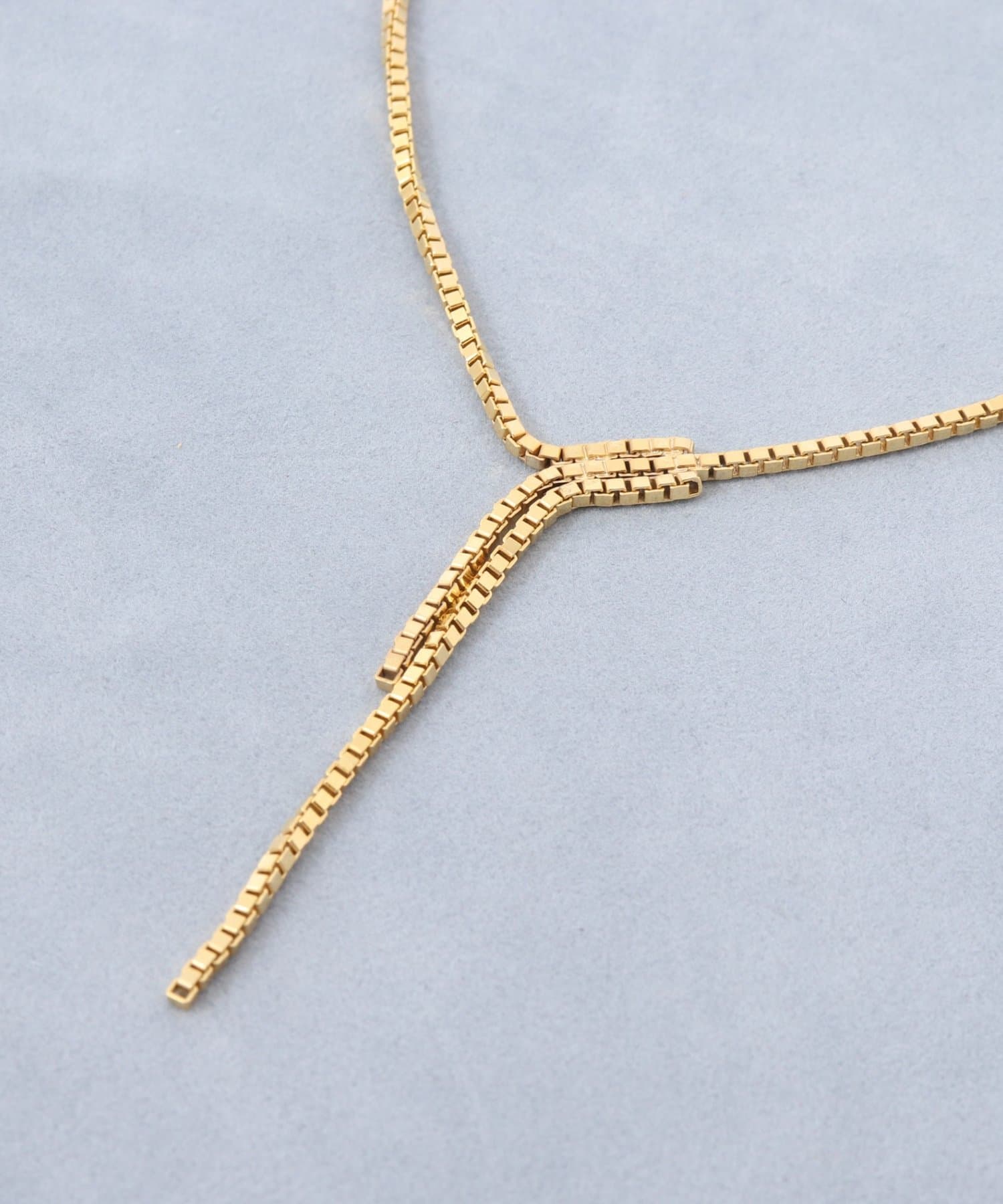 ・繊細な輝きを放つ、Y字型のゴールドネックレス。