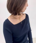 ・アシンメトリーなY字ラインと特徴的なボックスチェーンでデコルテを華やかに引き立てます。