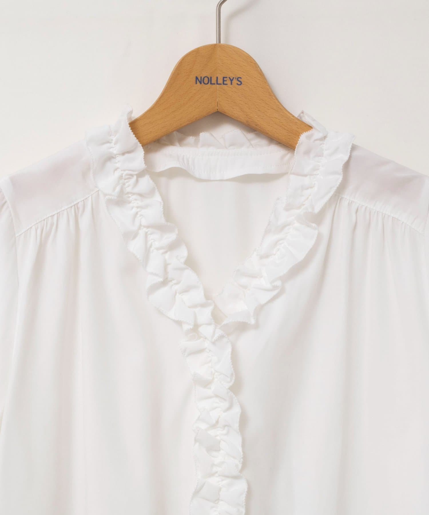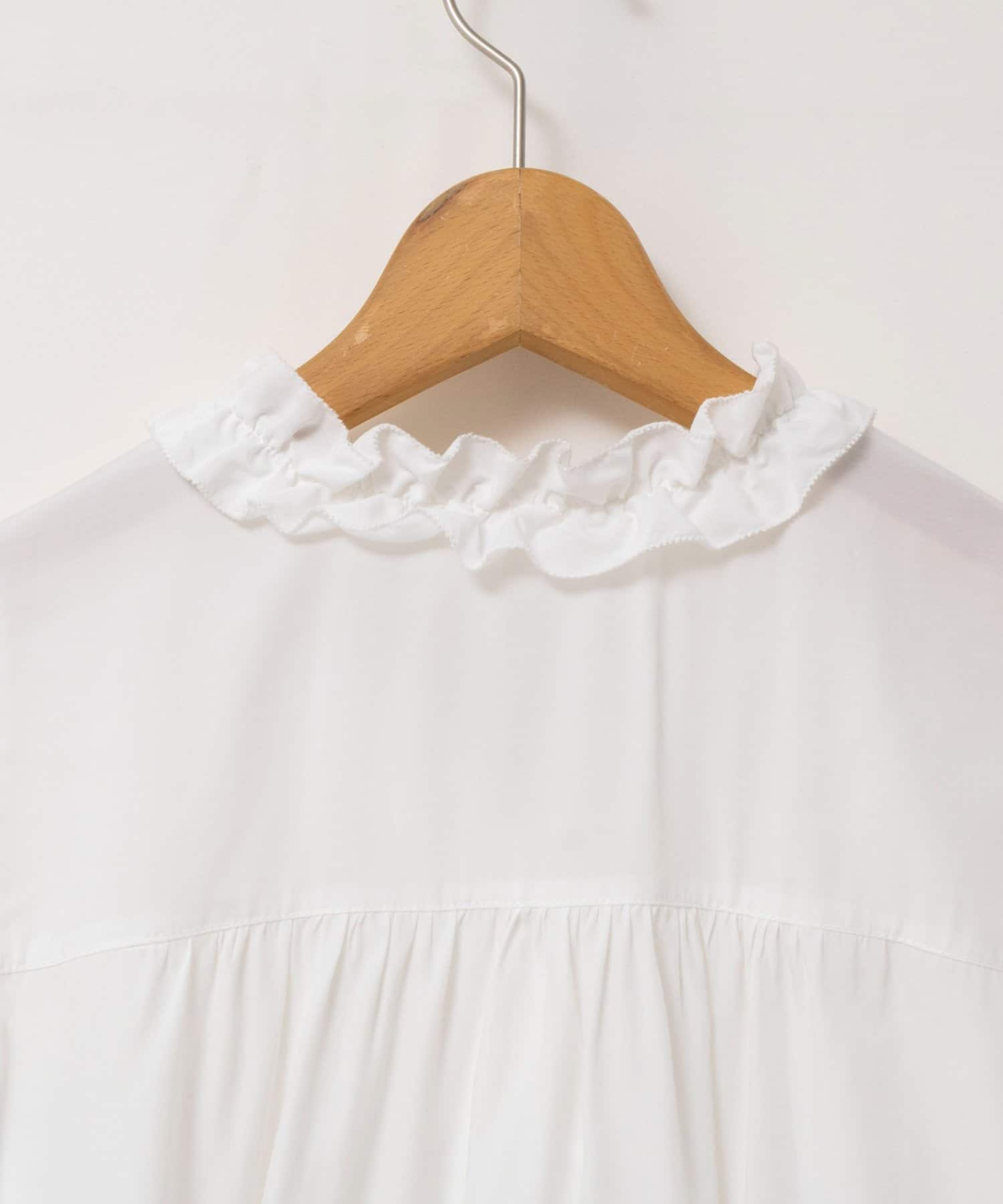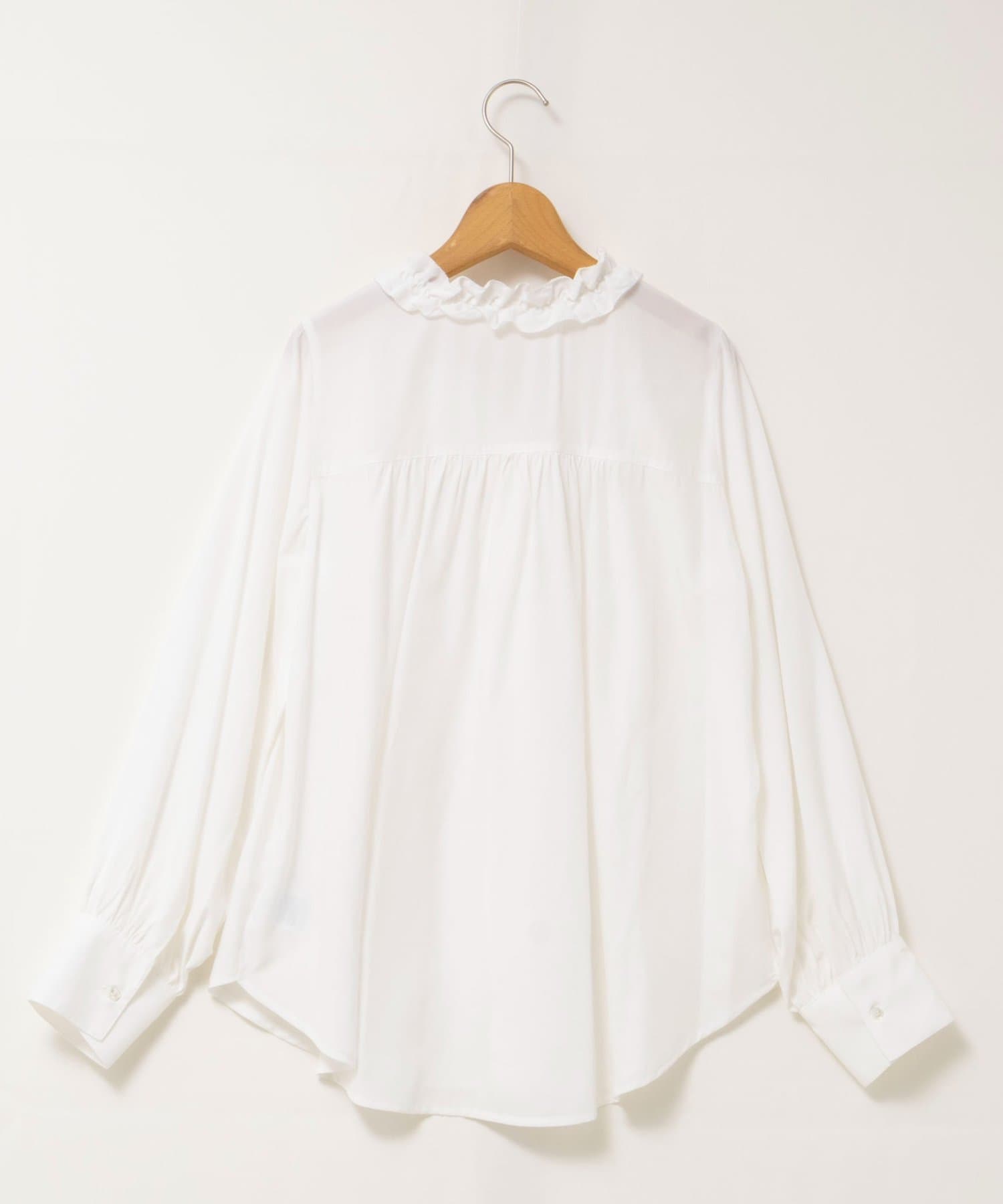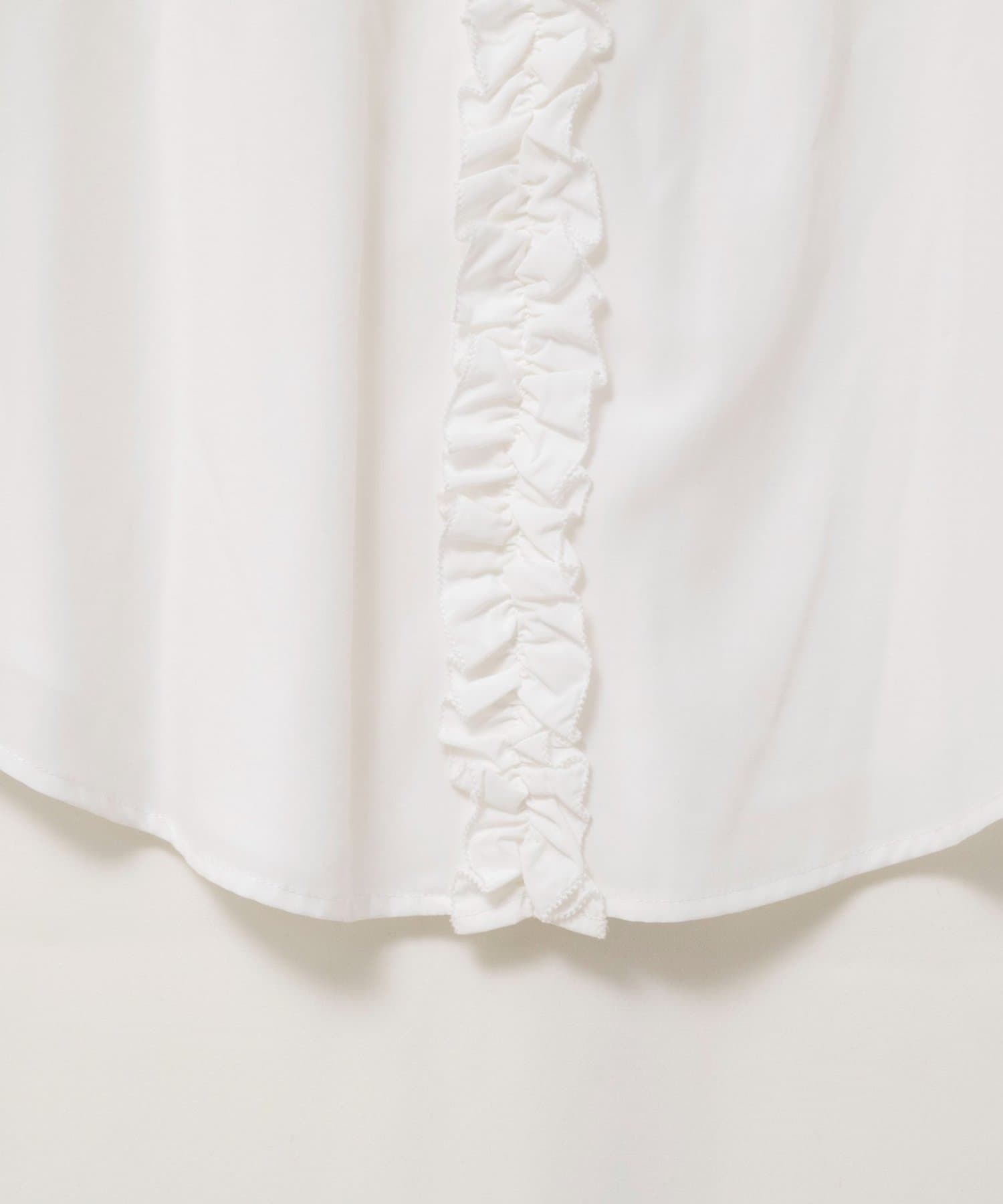 ・襟から前立てに続けてフリルの付いた華やかなブラウス