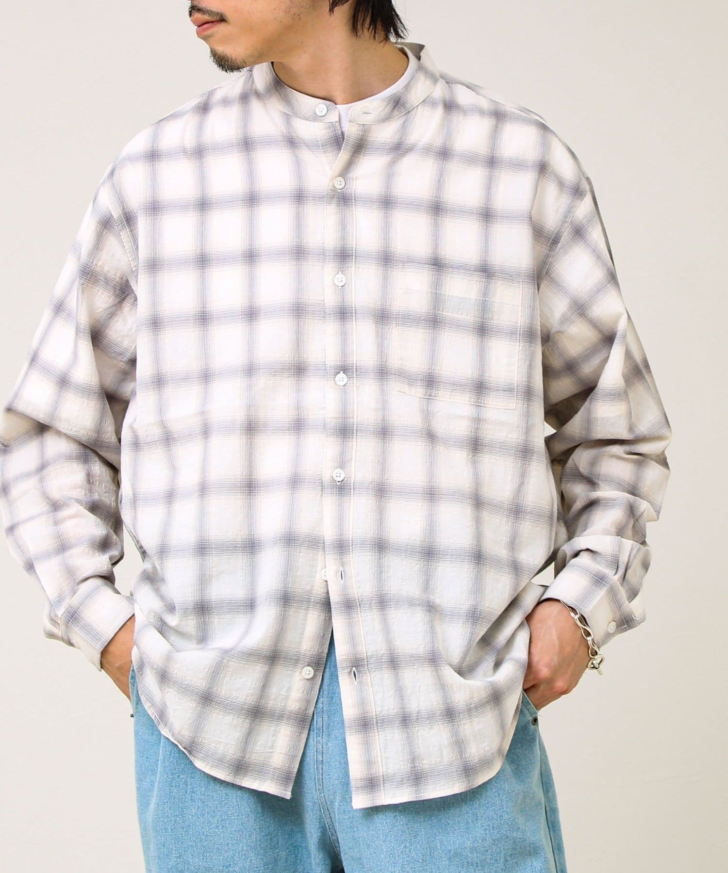 TOP > FREDY & GLOSTER > メンズ > トップス > シャツ/ブラウス(ボタン) > 【夏まで使える】テクスチャーバンドカラーチェックシャツ