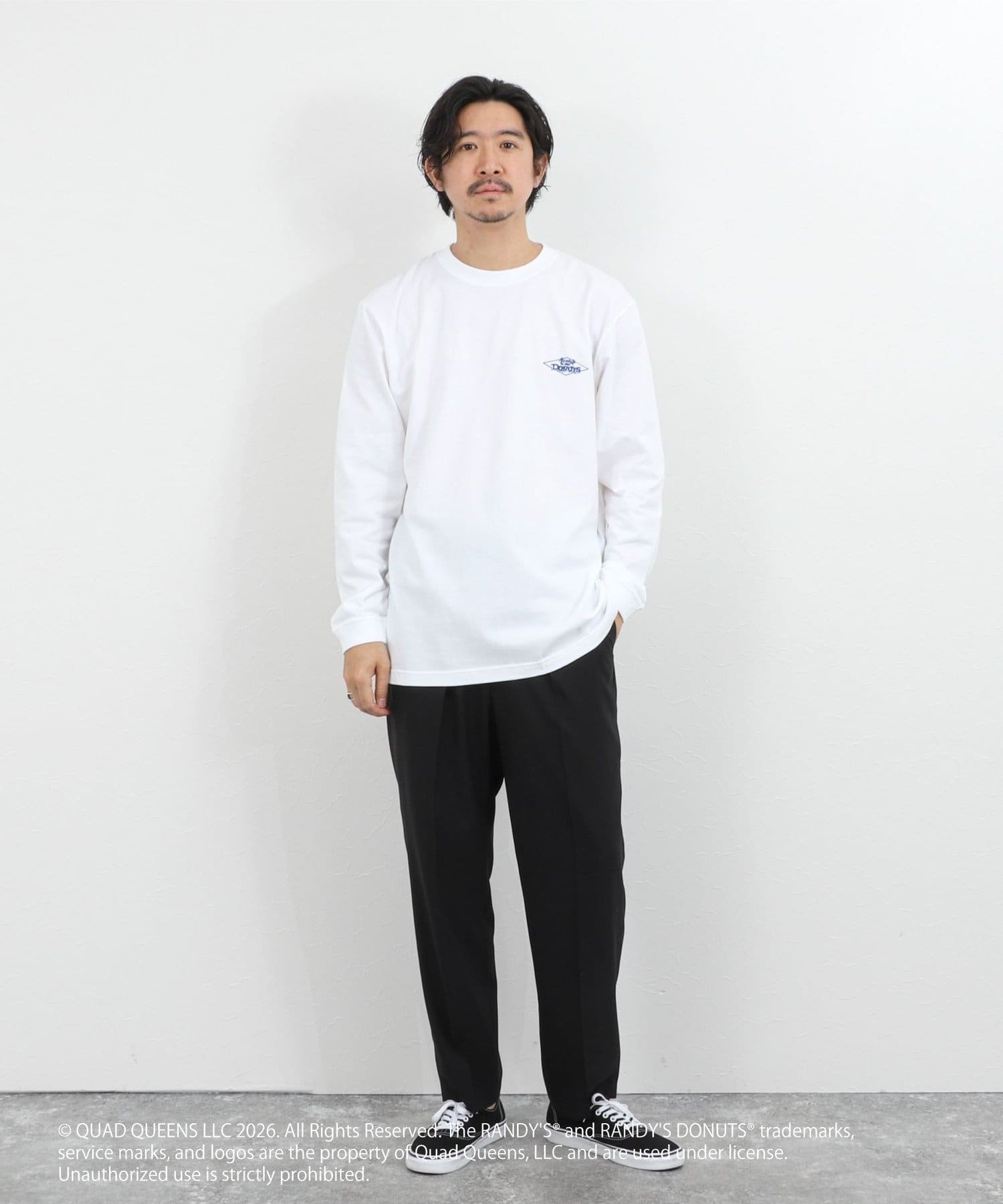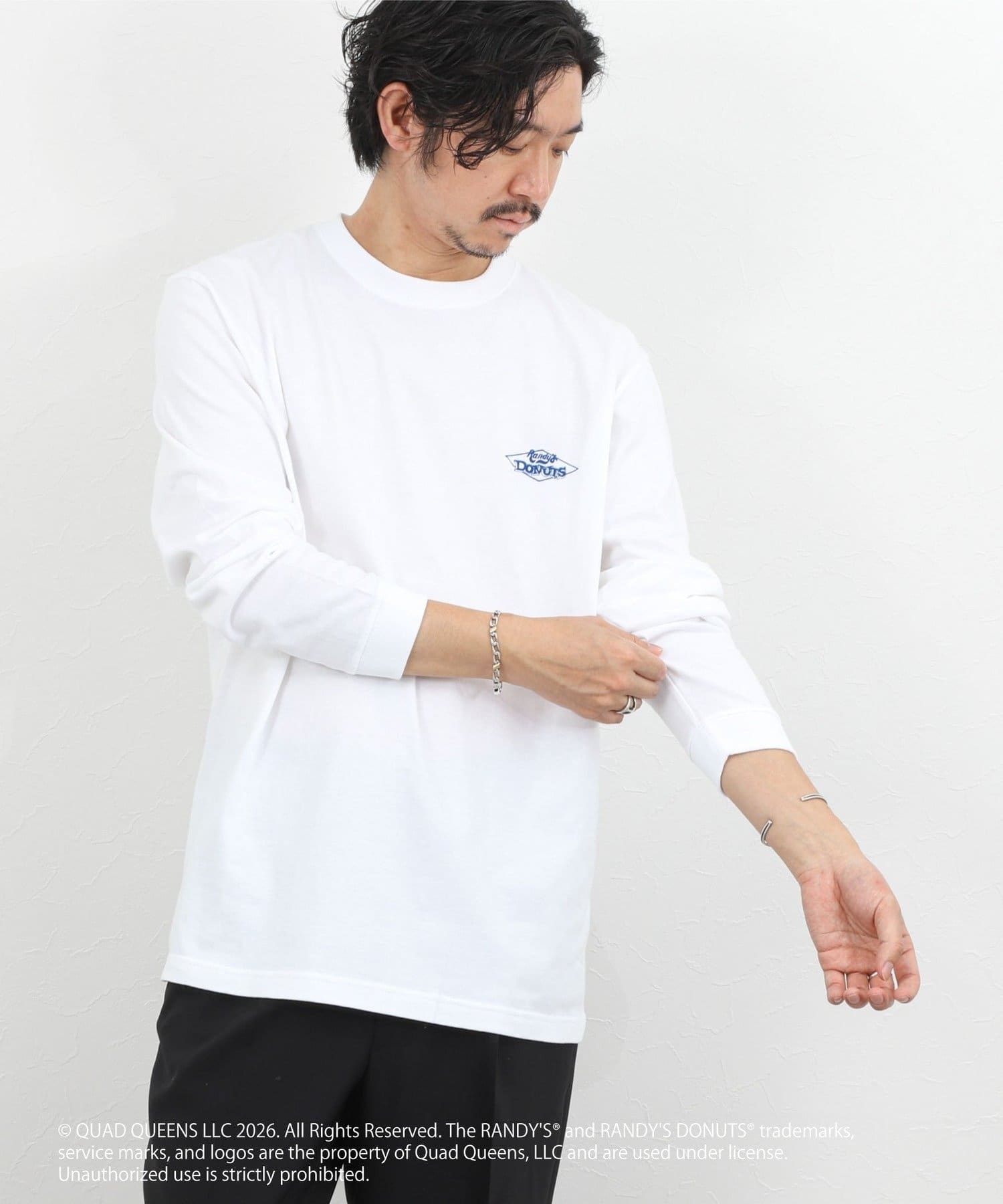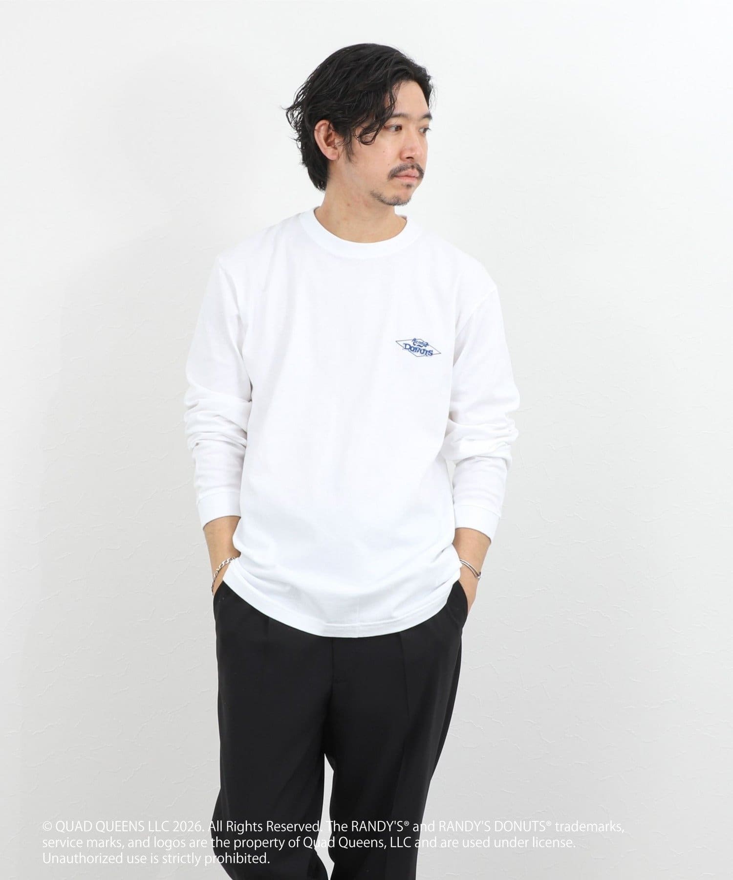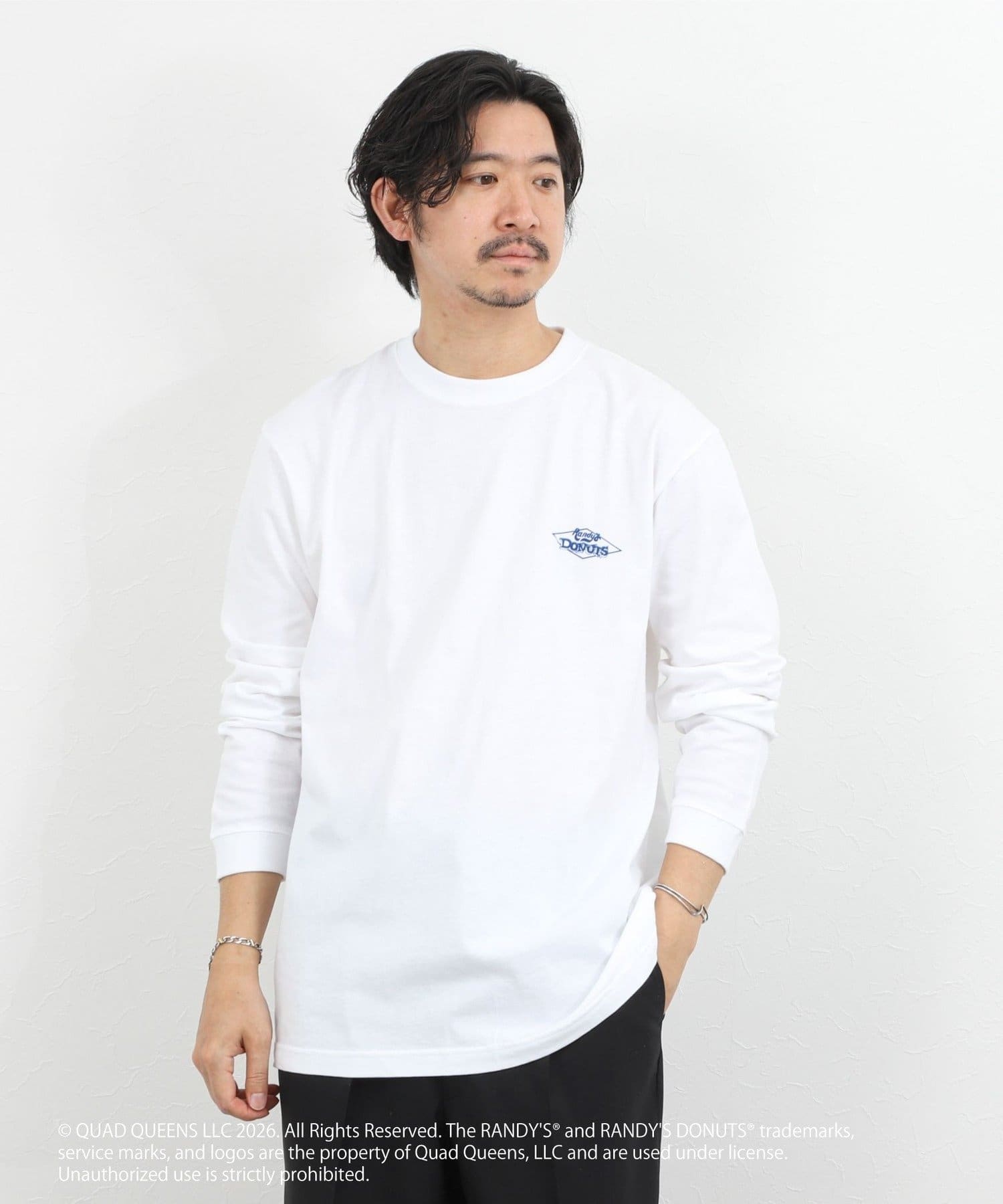 1952年にロサンゼルスで創業した大人気ドーナツ店。フロントはシンプルなロゴデザイン、バックには実際のメニューをモチーフにしたドーナツプリントを大胆に配置したデザイン。