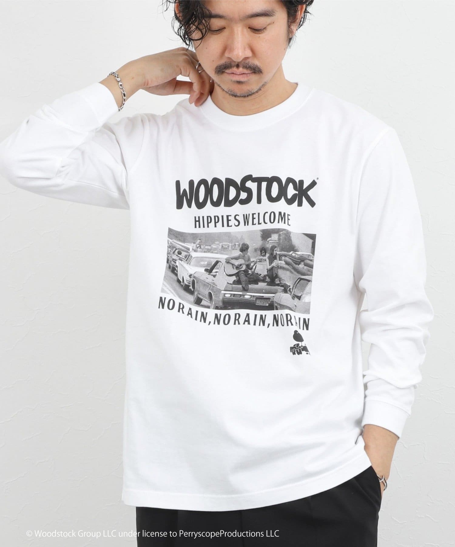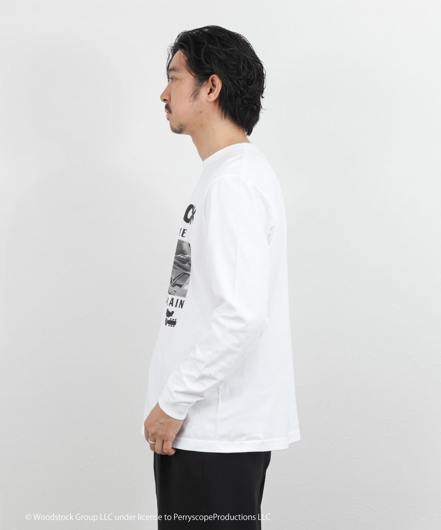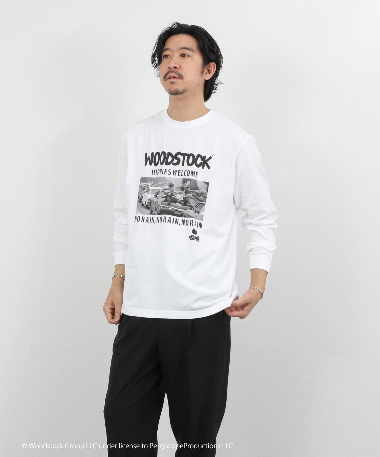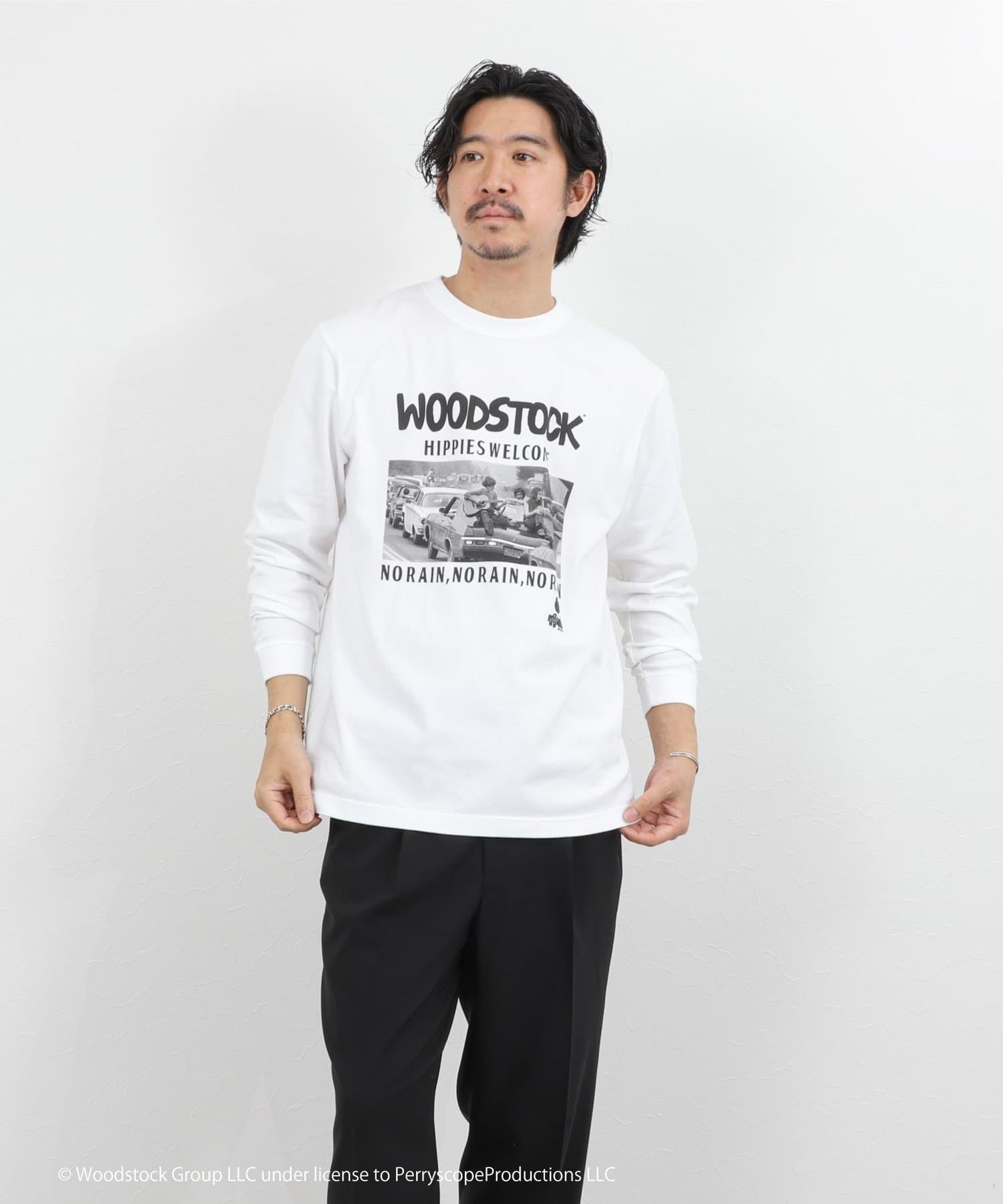 1969年の伝説的なウッドストック音楽祭を象徴するフォトをあしらったロングスリーブTシャツ。