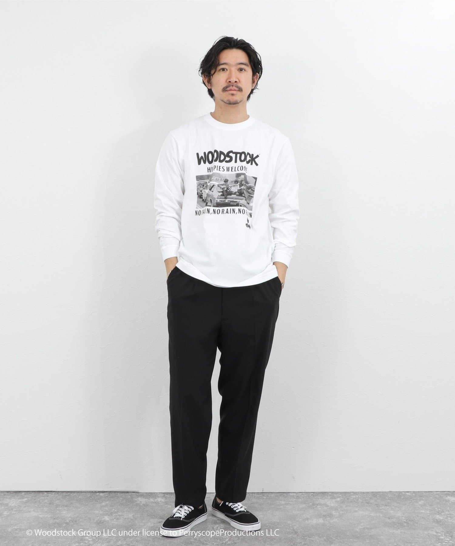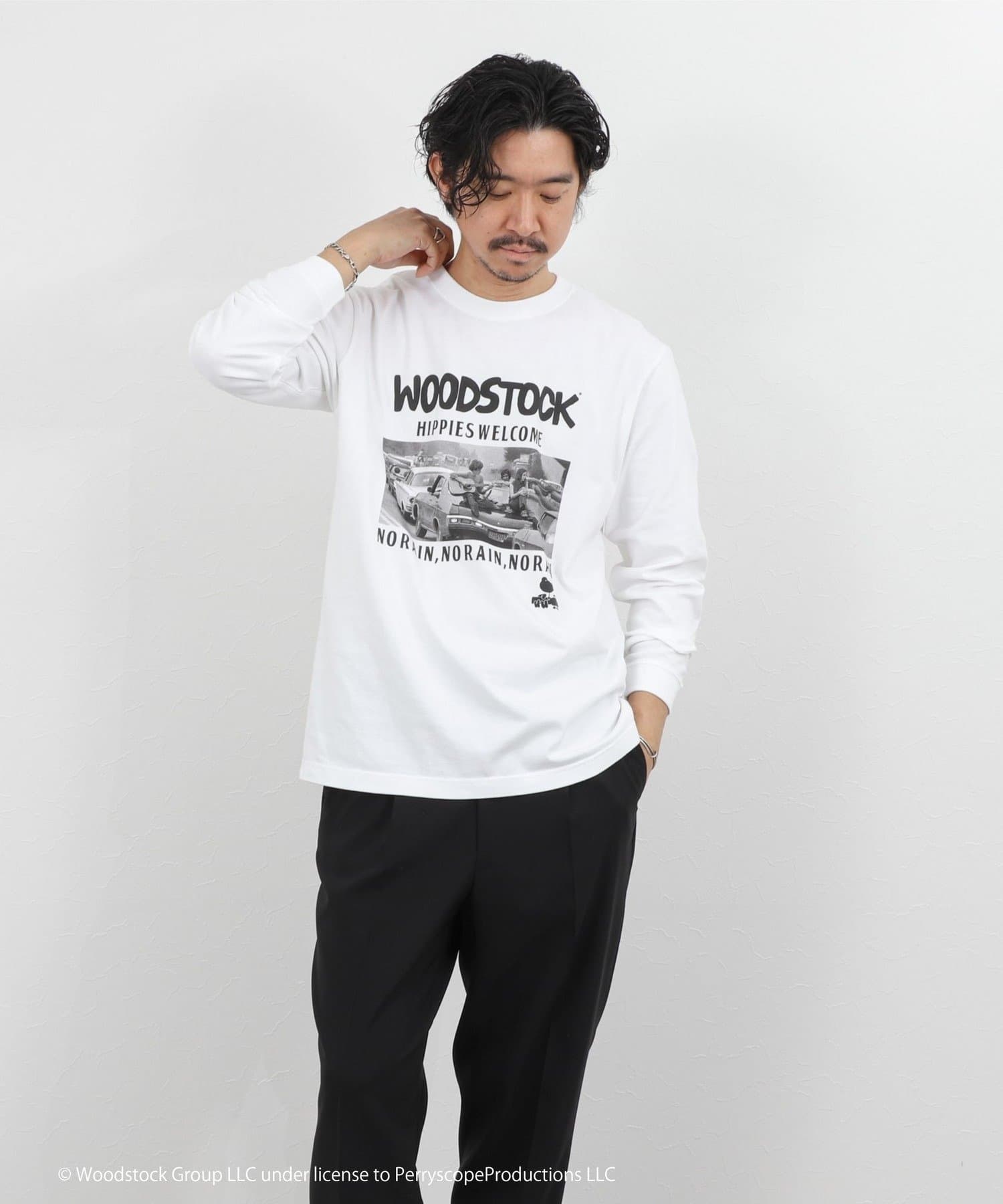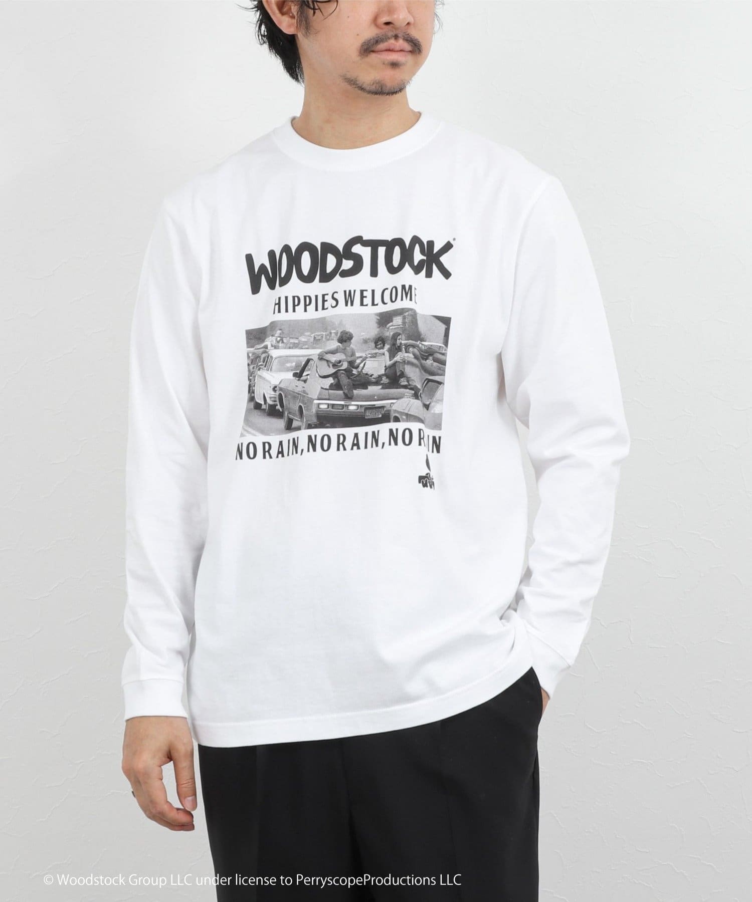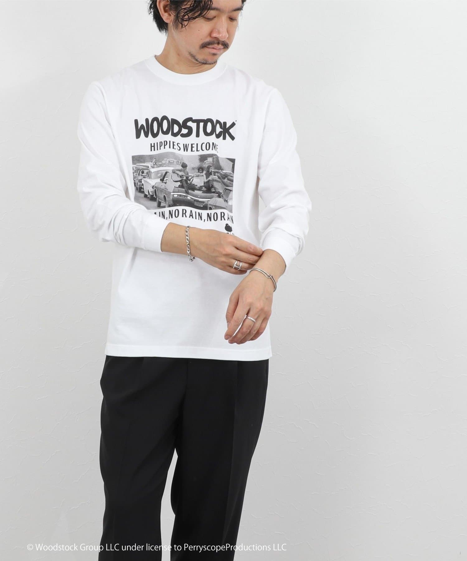 1969年の伝説的なウッドストック音楽祭を象徴するフォトをあしらったロングスリーブTシャツ。