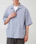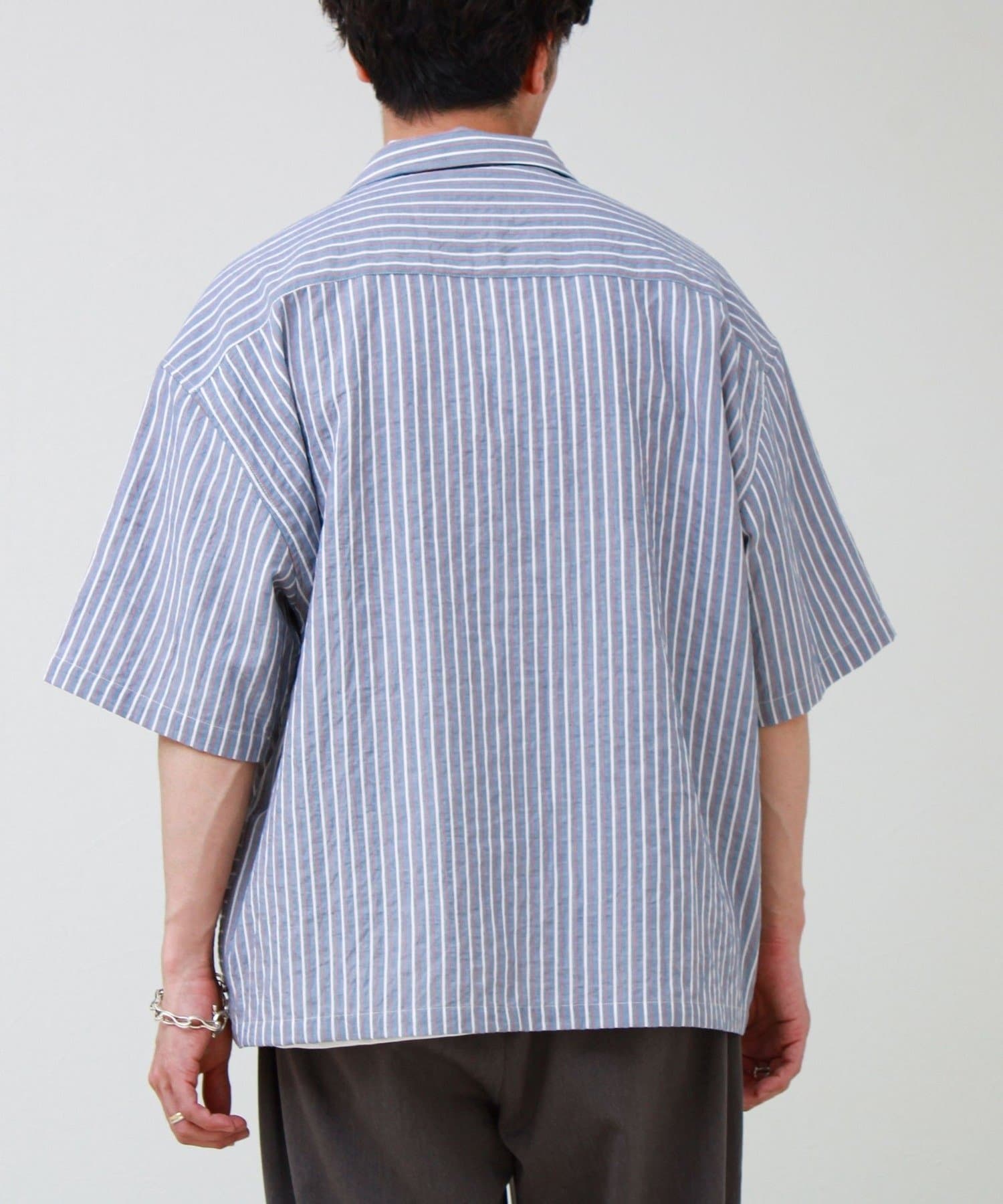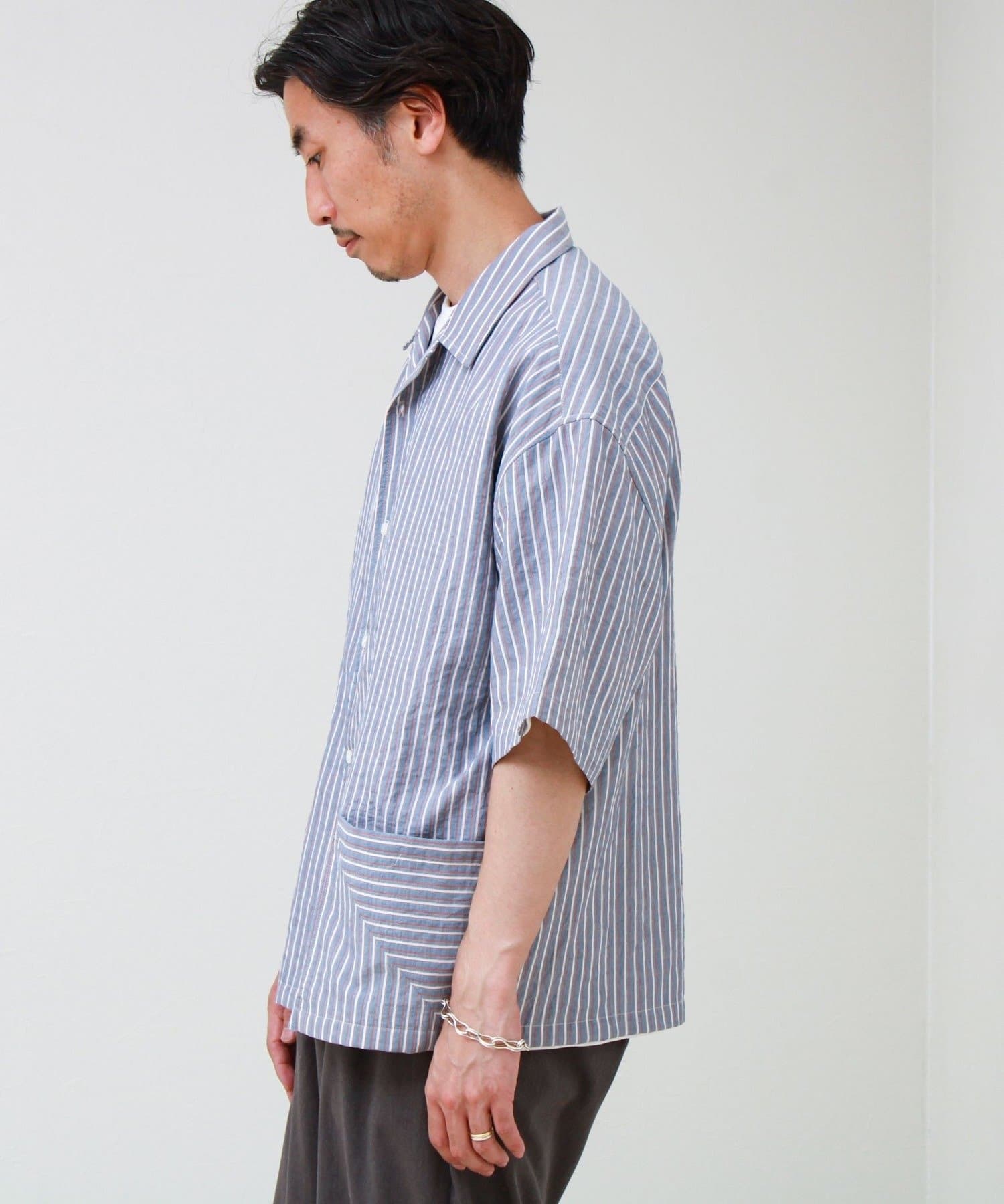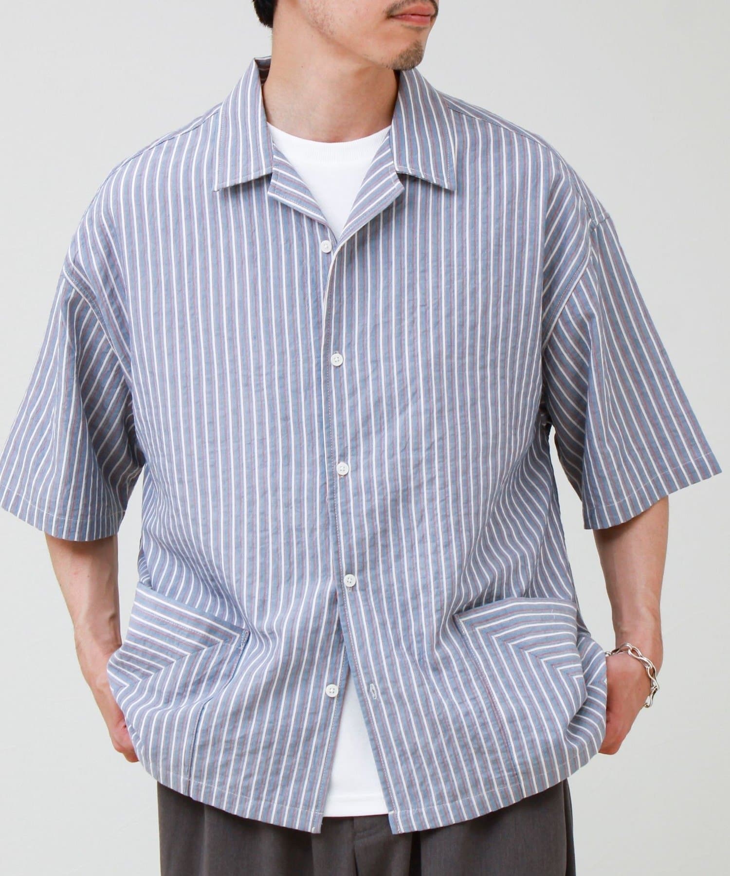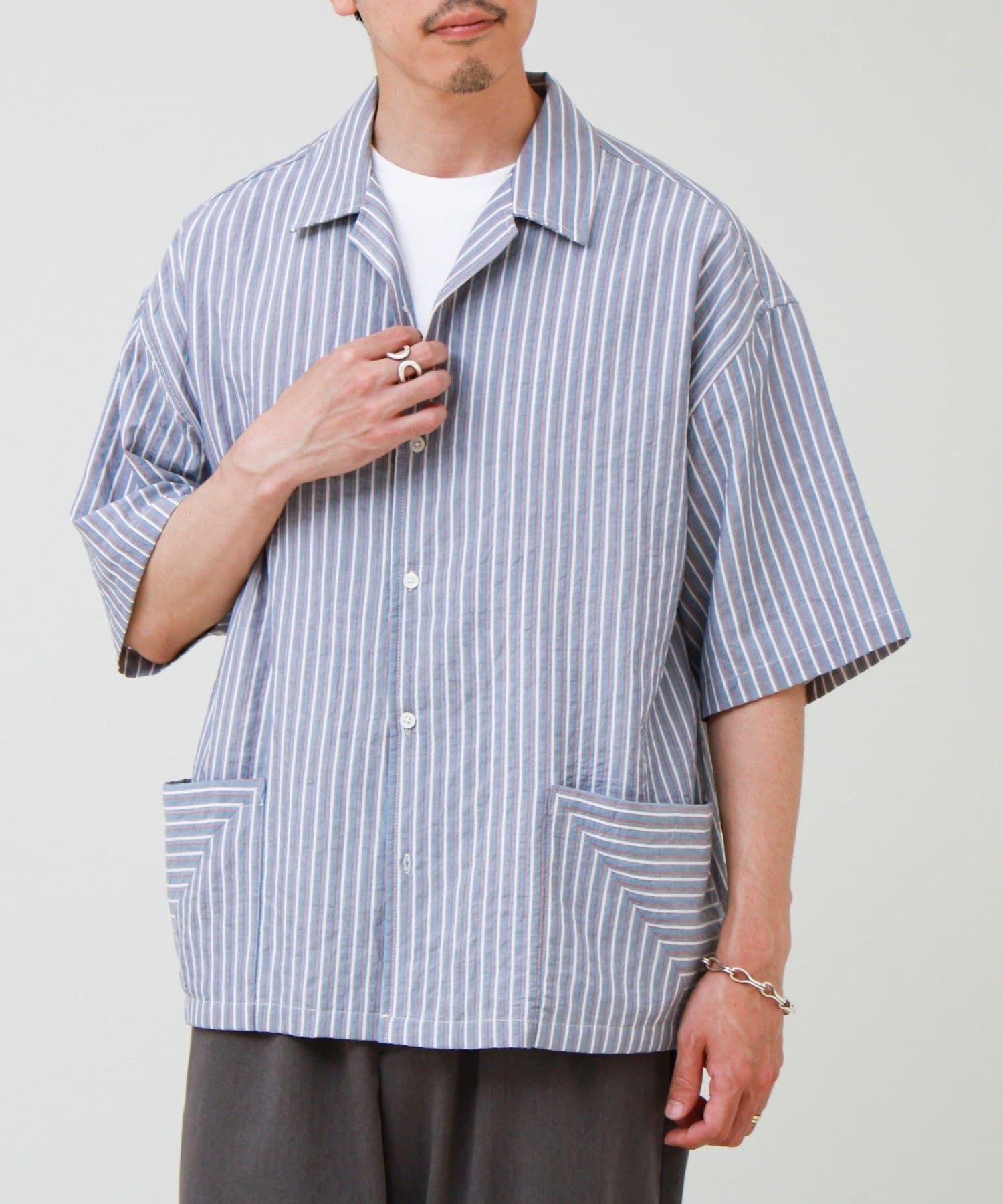 #サッカー素材 #ストライプシャツ #半袖シャツ #夏コーデ #大人カジュアル #ユニセックス #羽織りシャツ #リラックスコーデ #清涼感 #きれいめカジュアル