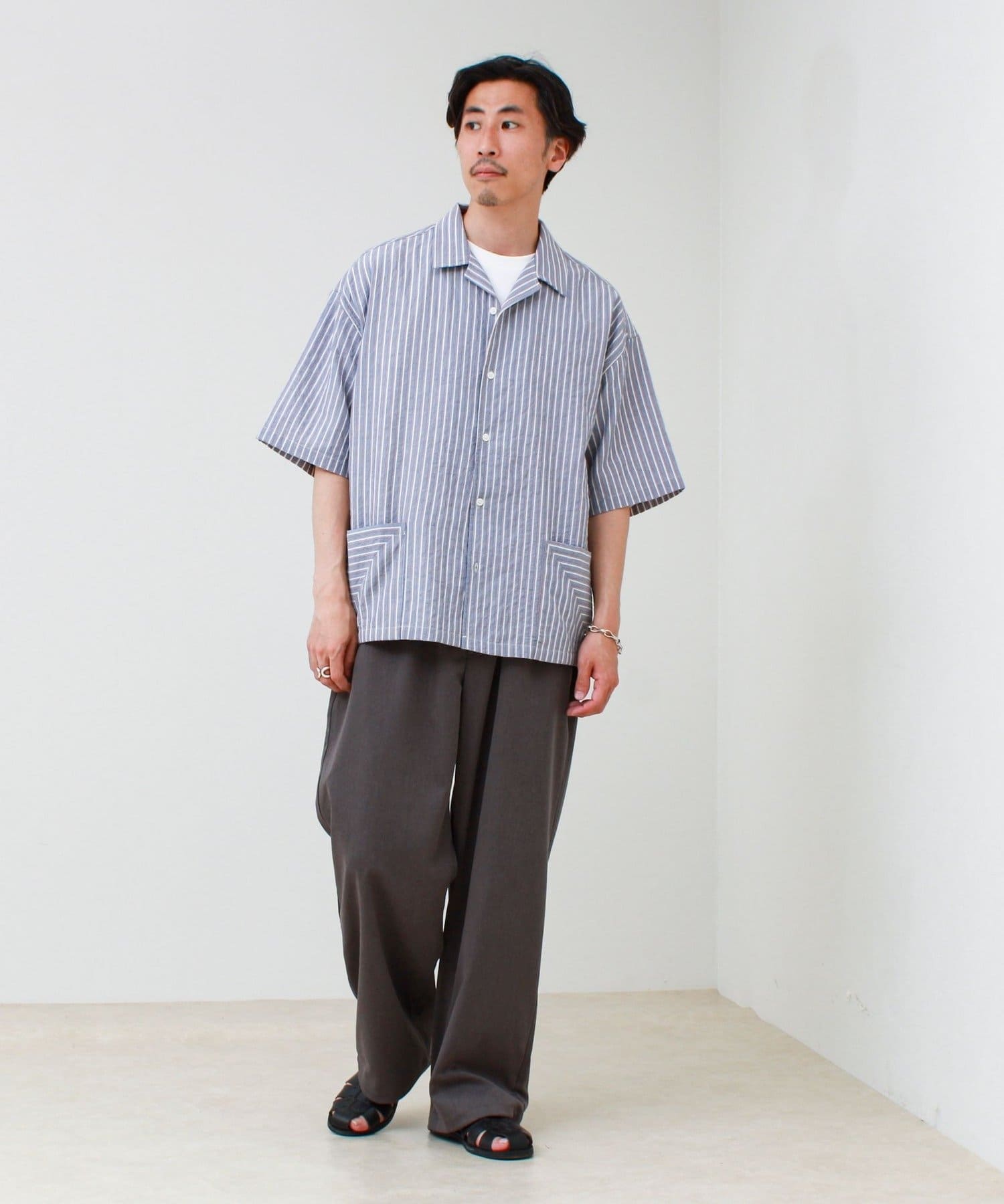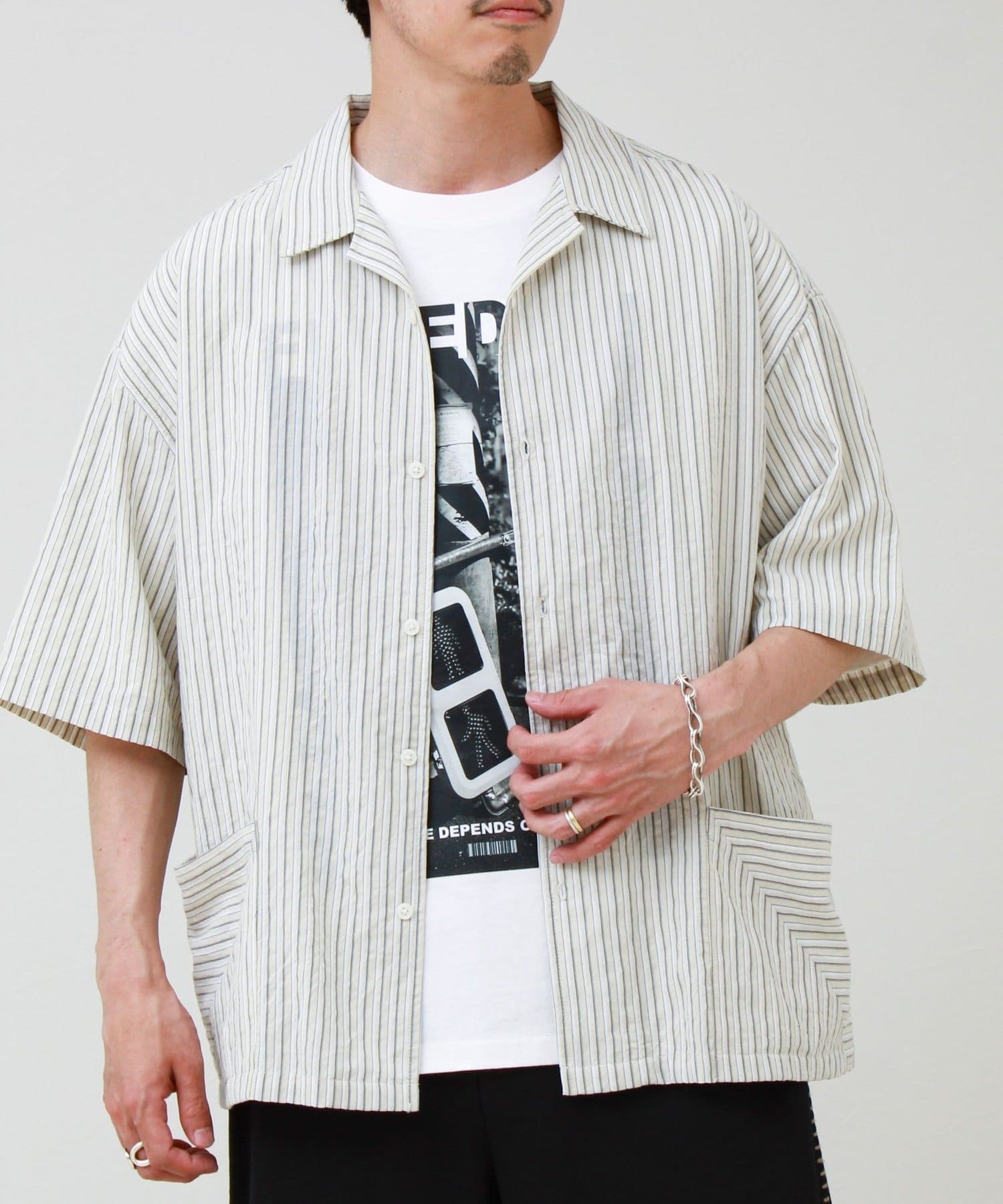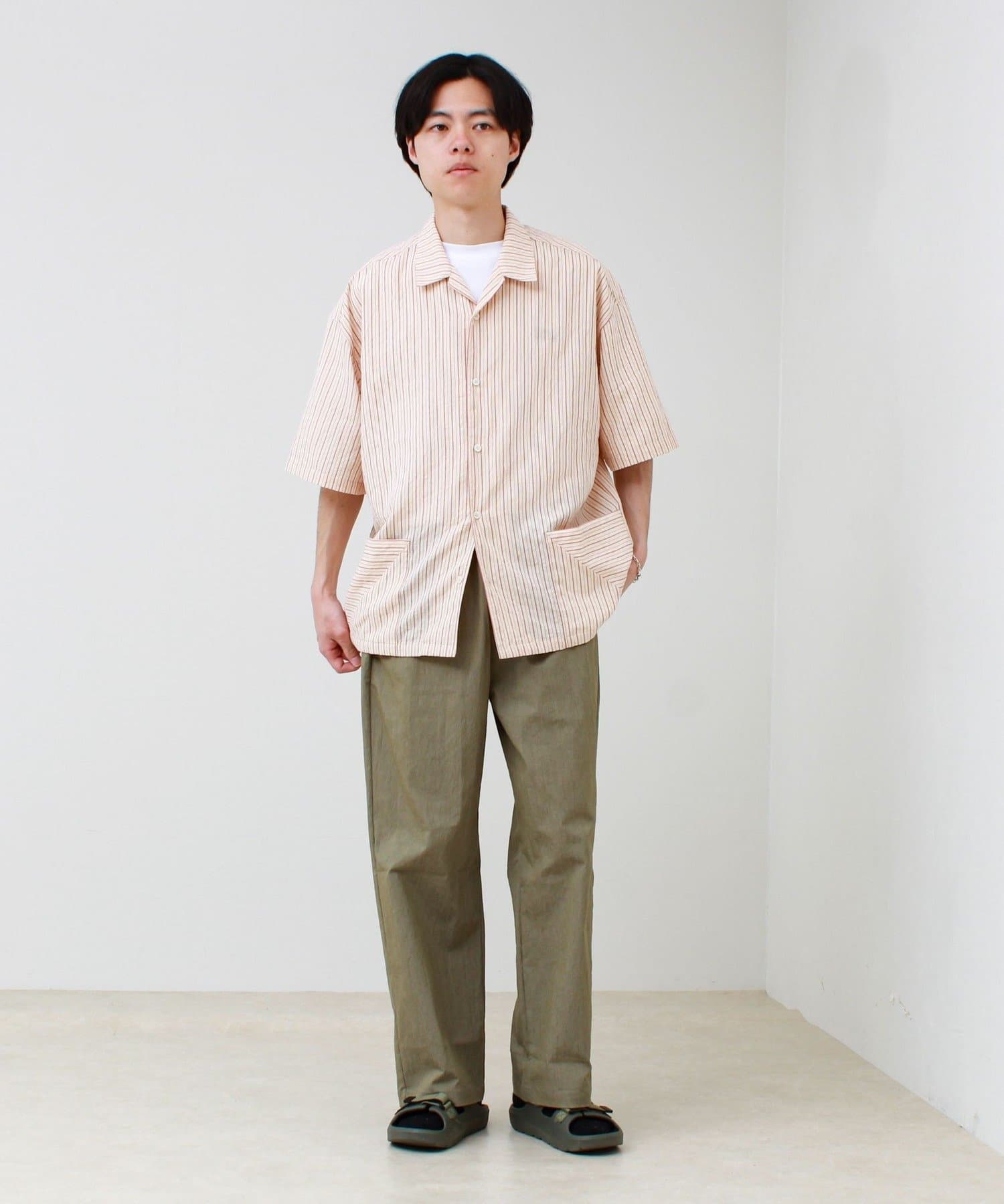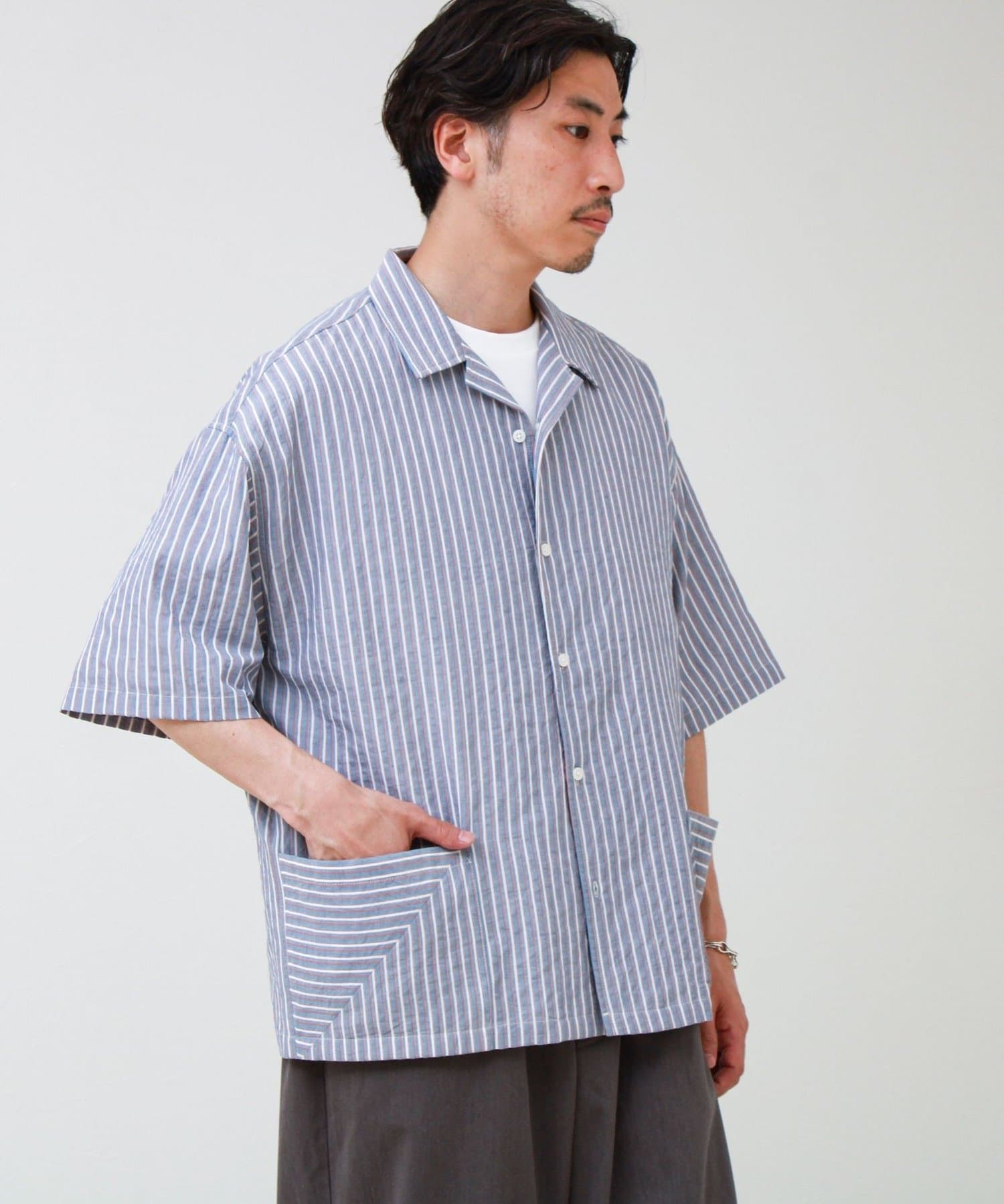 #サッカー素材 #ストライプシャツ #半袖シャツ #夏コーデ #大人カジュアル #ユニセックス #羽織りシャツ #リラックスコーデ #清涼感 #きれいめカジュアル