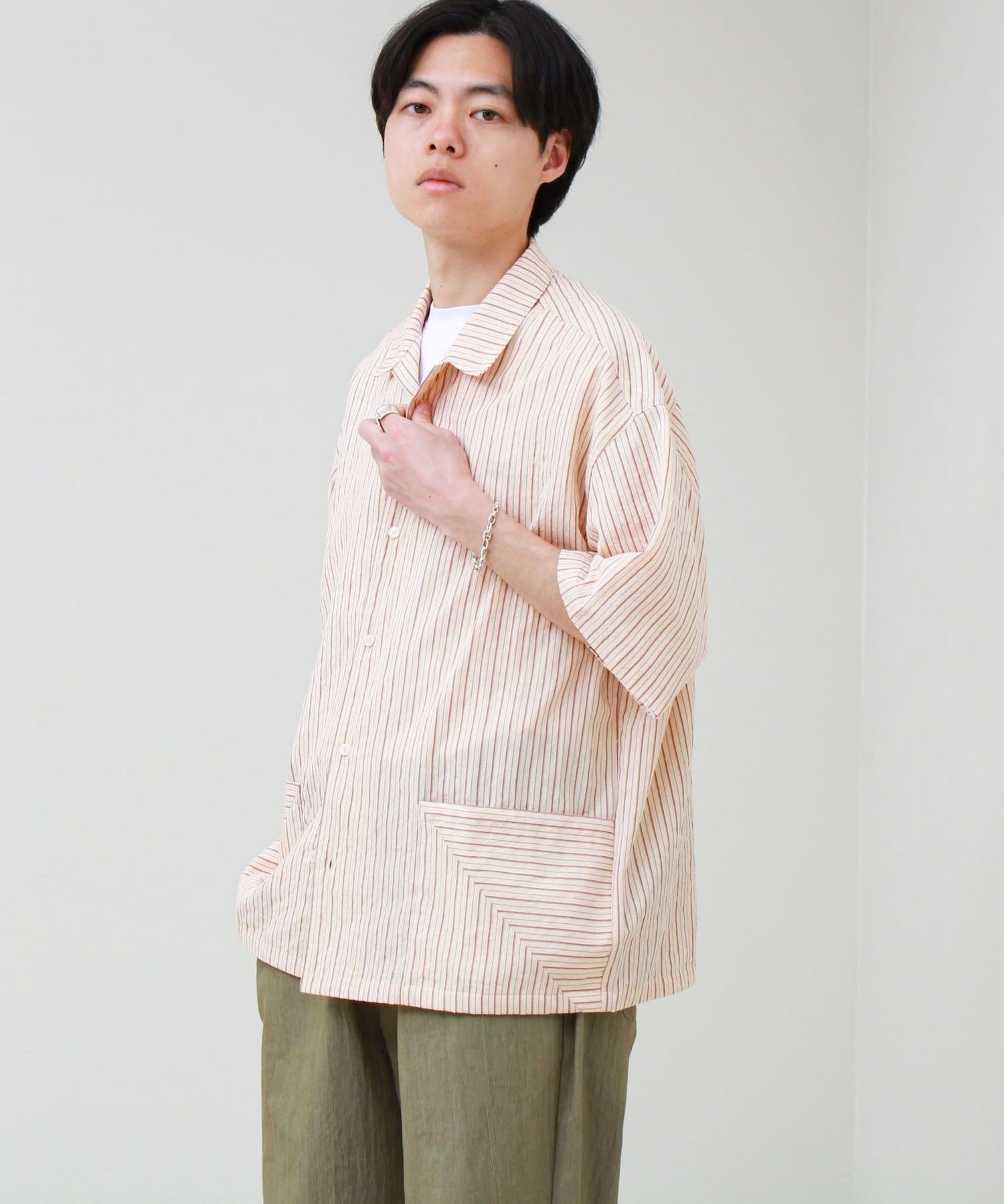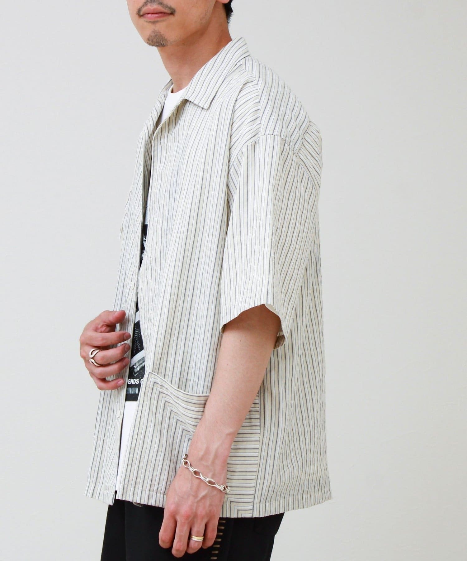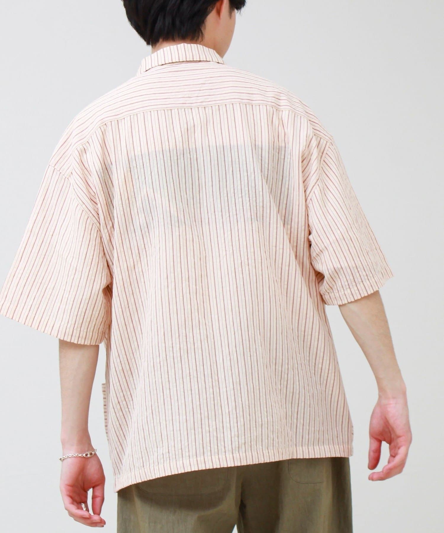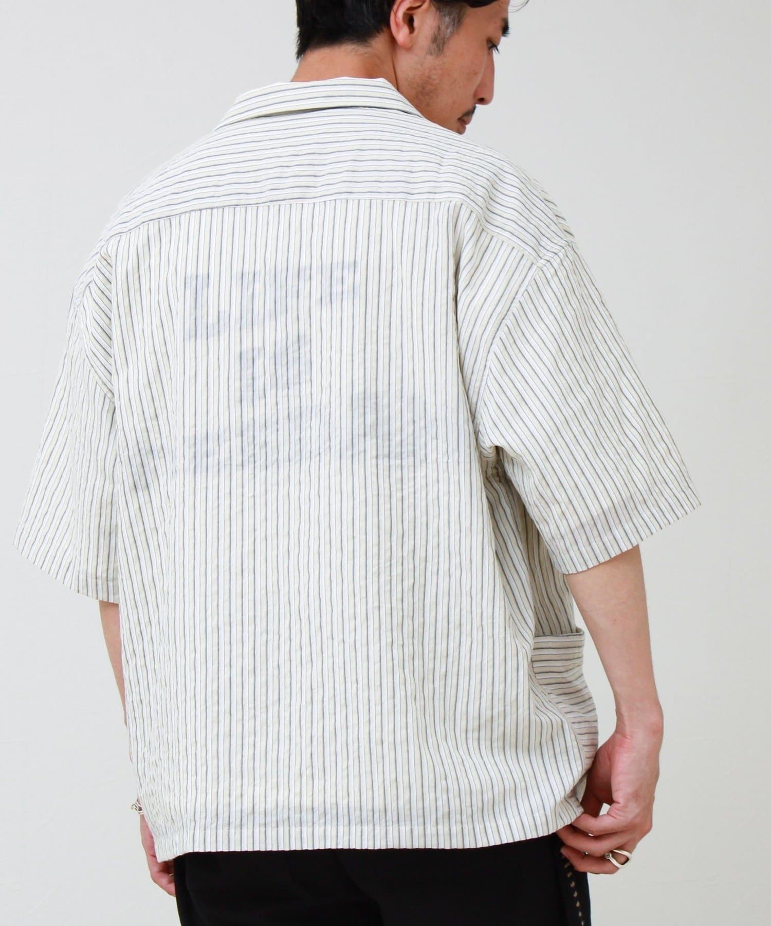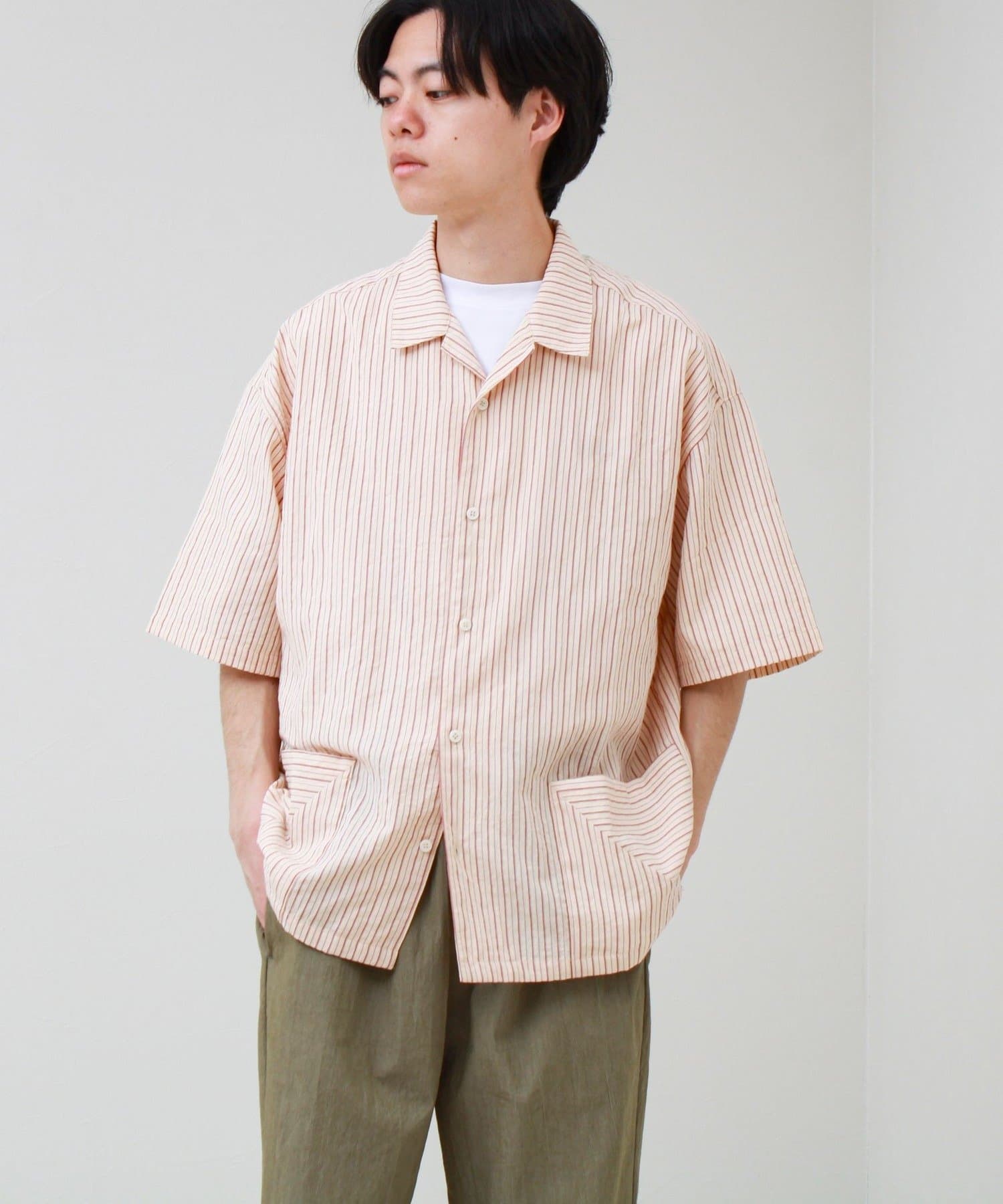 #サッカー素材 #ストライプシャツ #半袖シャツ #夏コーデ #大人カジュアル #ユニセックス #羽織りシャツ #リラックスコーデ #清涼感 #きれいめカジュアル