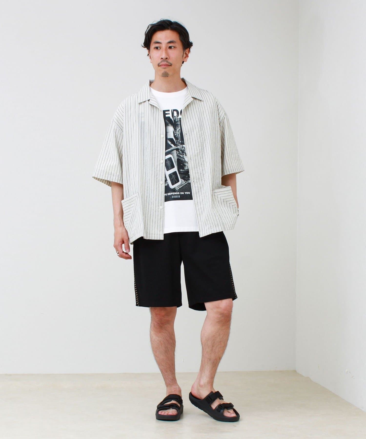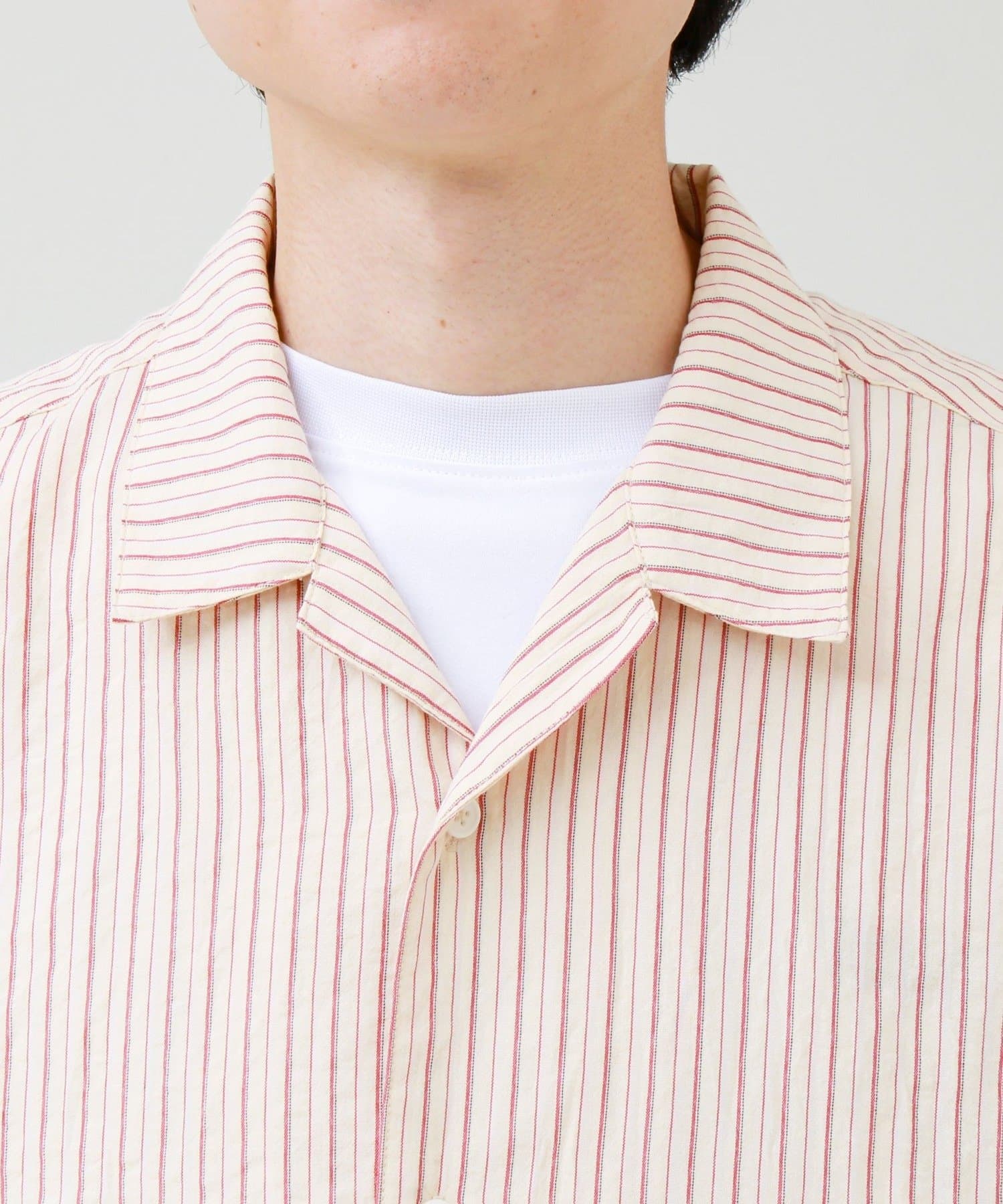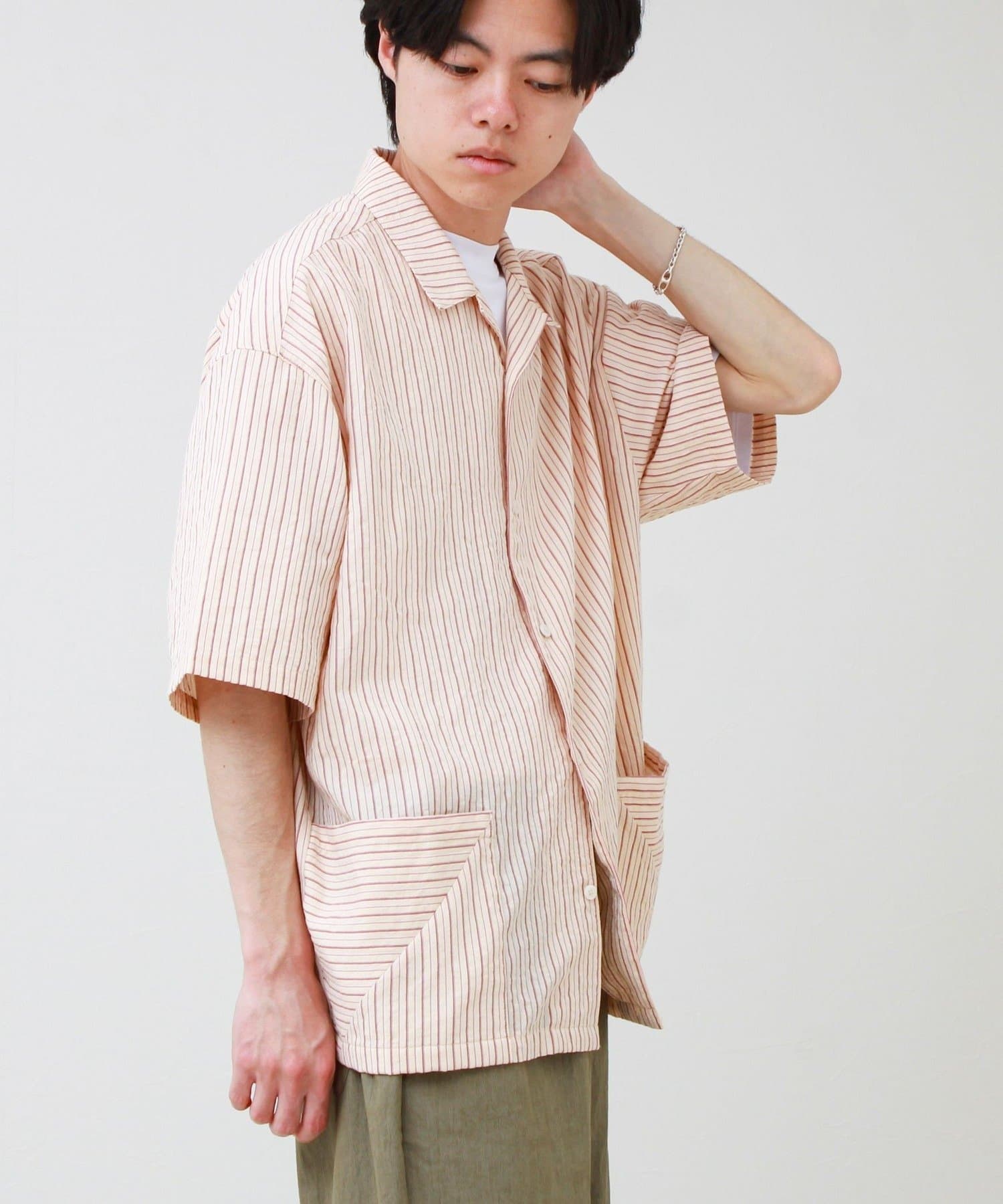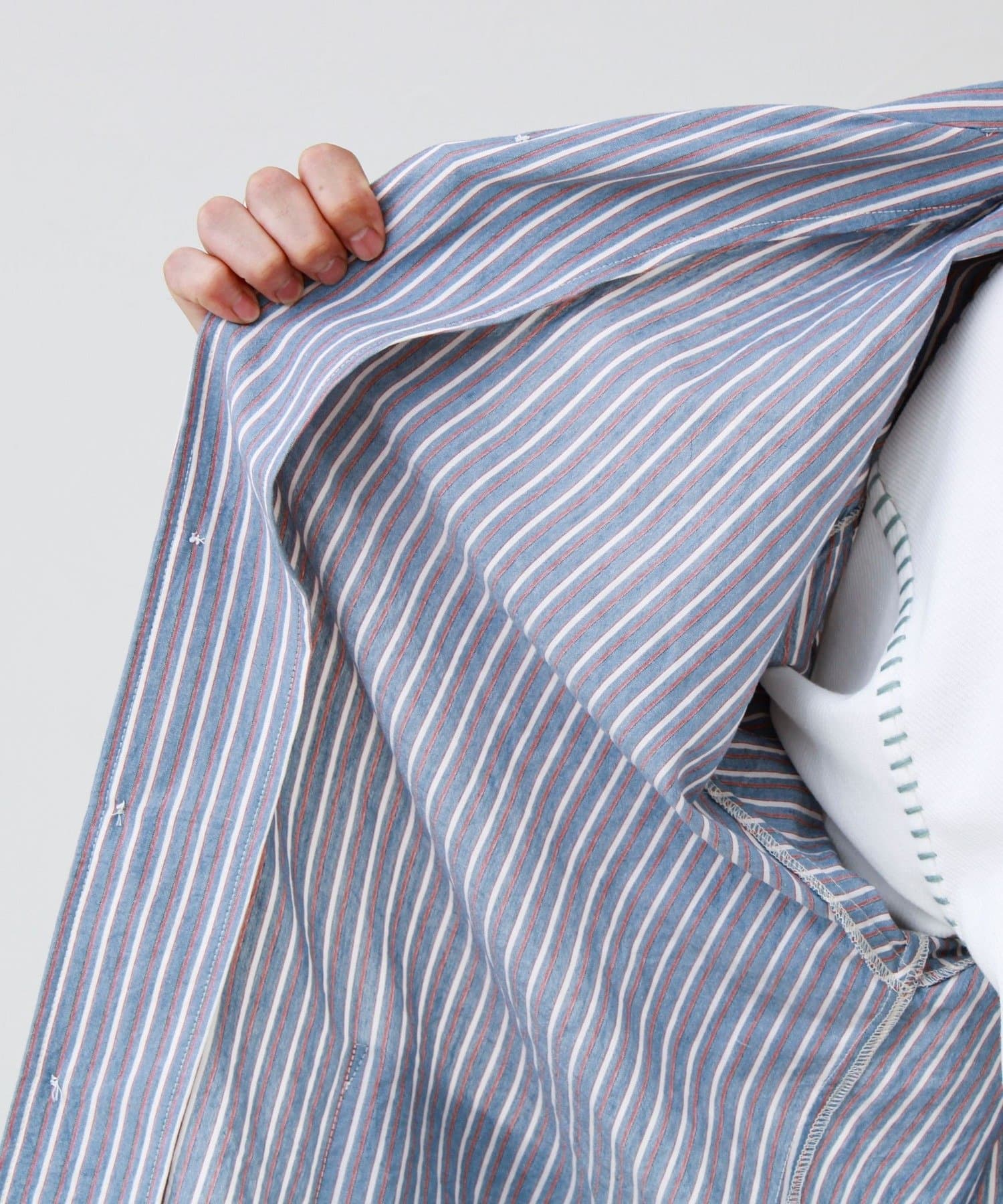 #サッカー素材 #ストライプシャツ #半袖シャツ #夏コーデ #大人カジュアル #ユニセックス #羽織りシャツ #リラックスコーデ #清涼感 #きれいめカジュアル