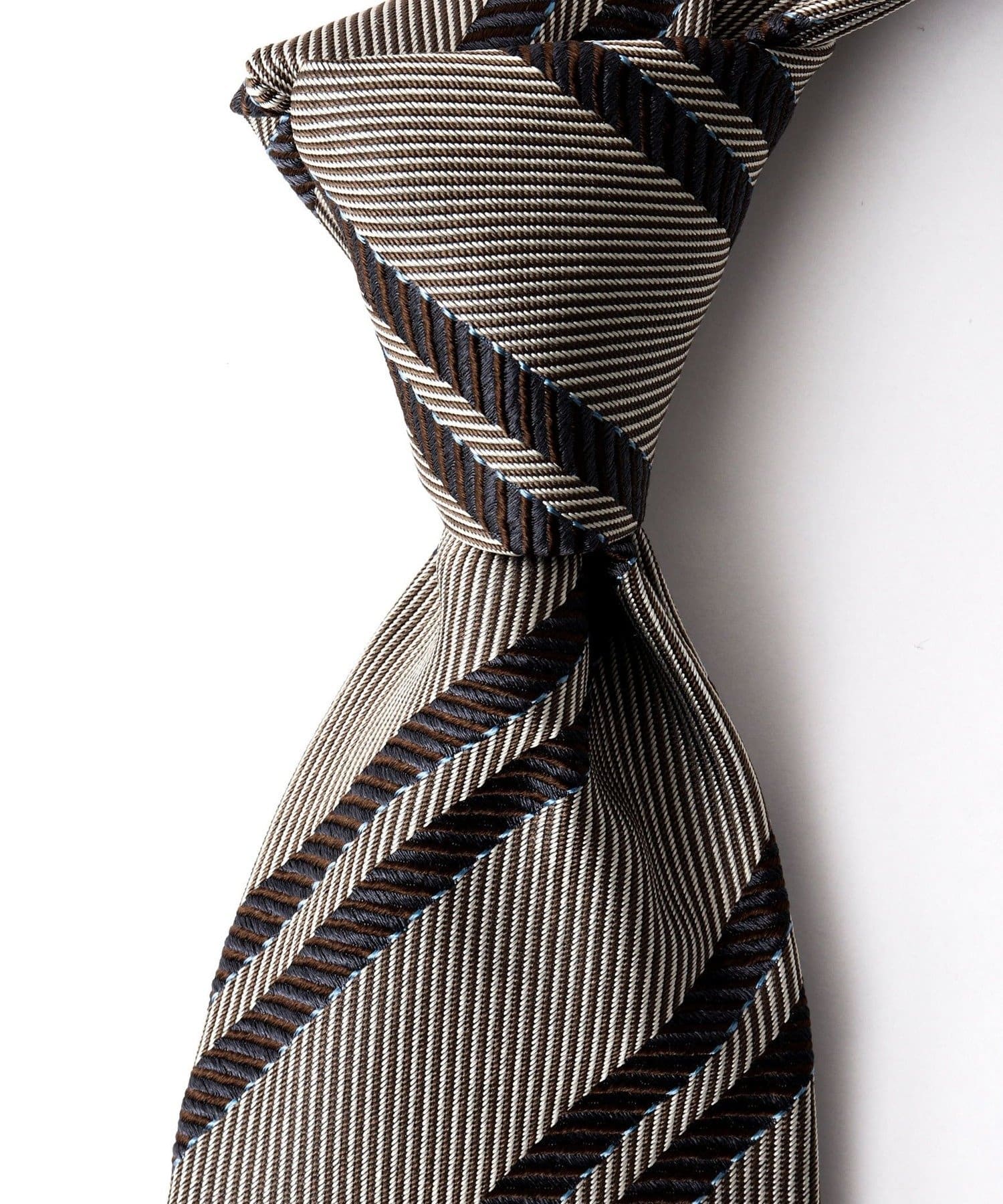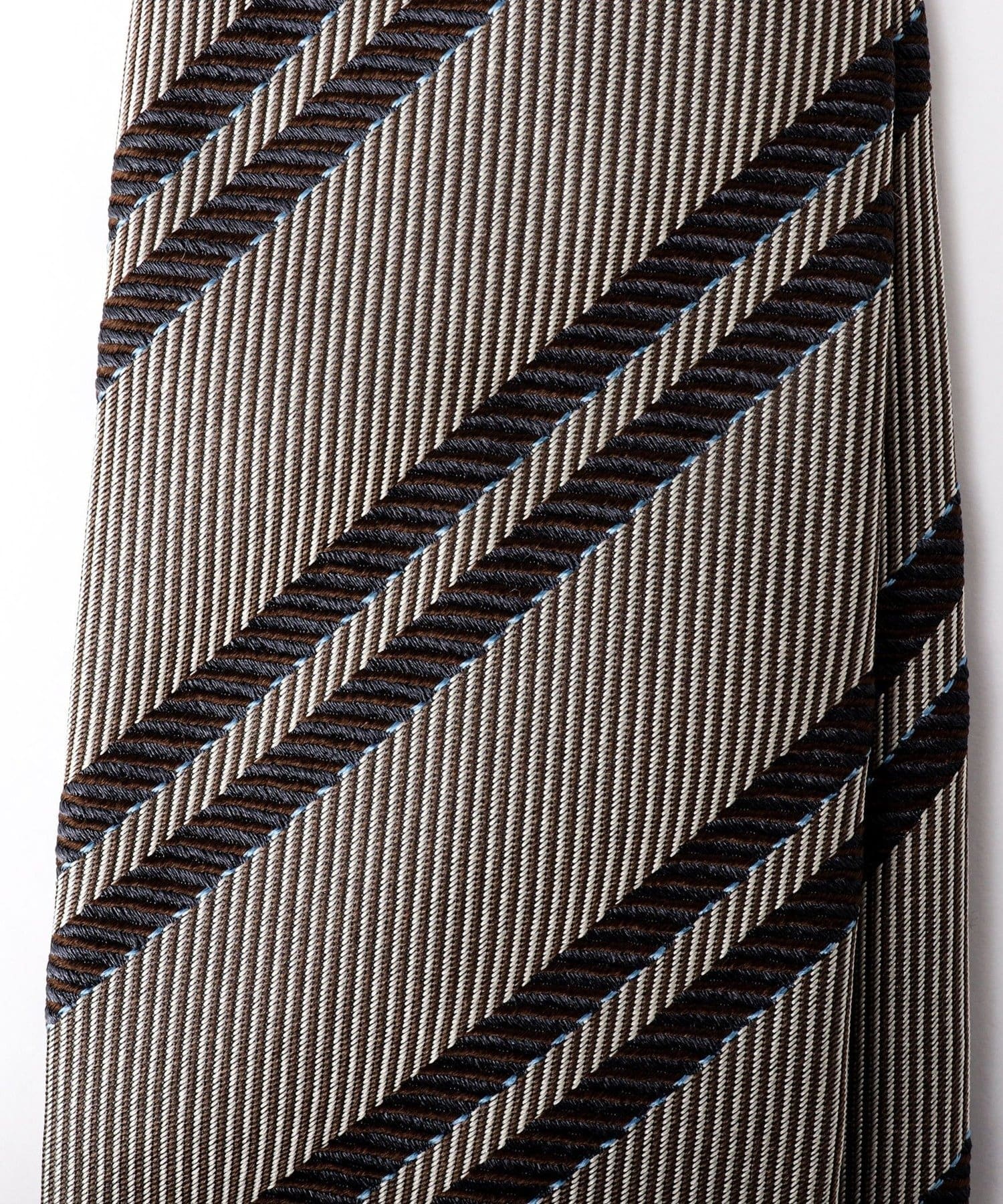 現代のトレンドに合わせて柄や配色を組んだ最高級生地を選定し、デザインの細部にまでこだわったネクタイは、国内の縫製工場にて一本一本手縫いで仕立てられています。裏地にもこだわり、より高級感のあるシルクを使用しています。