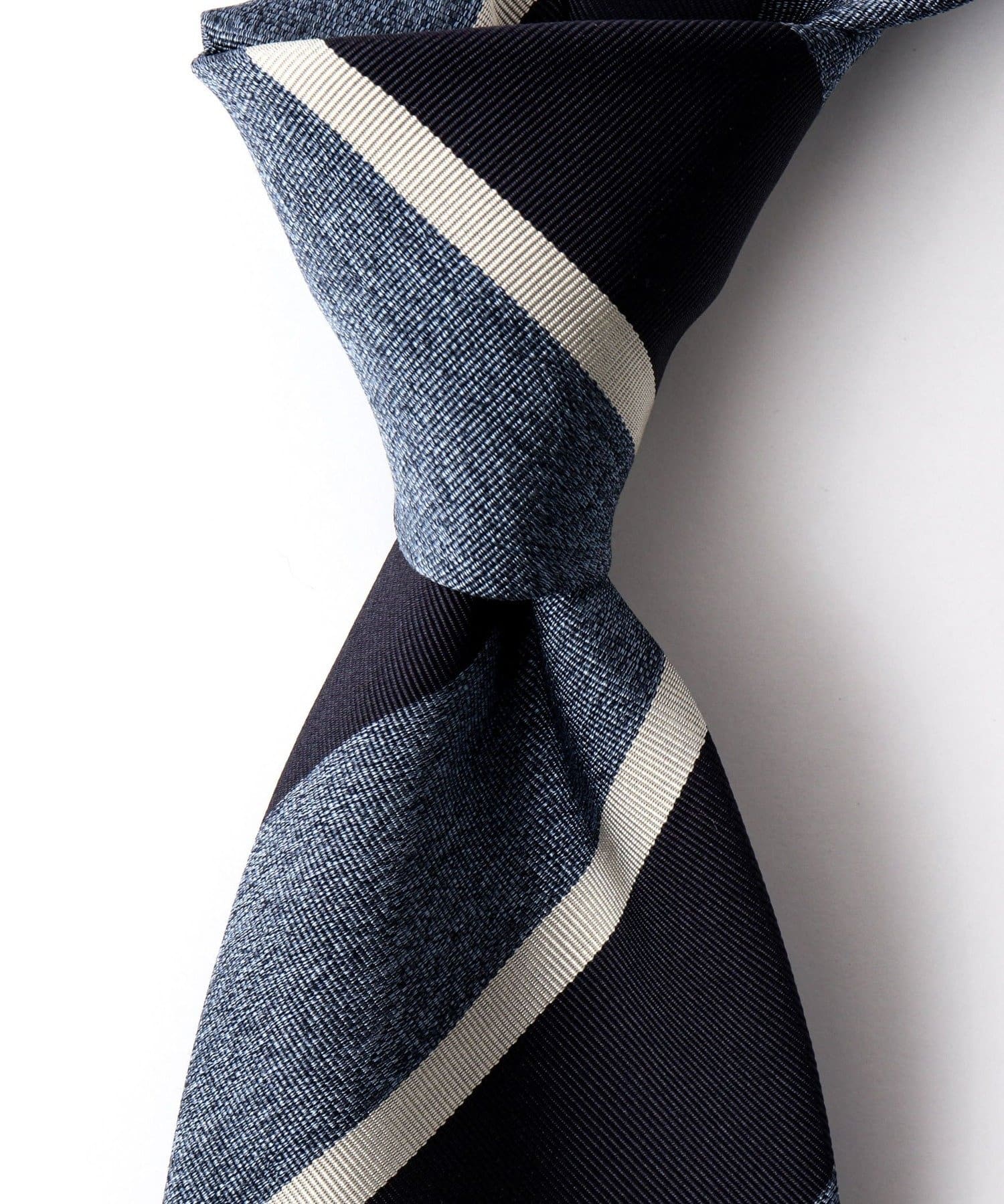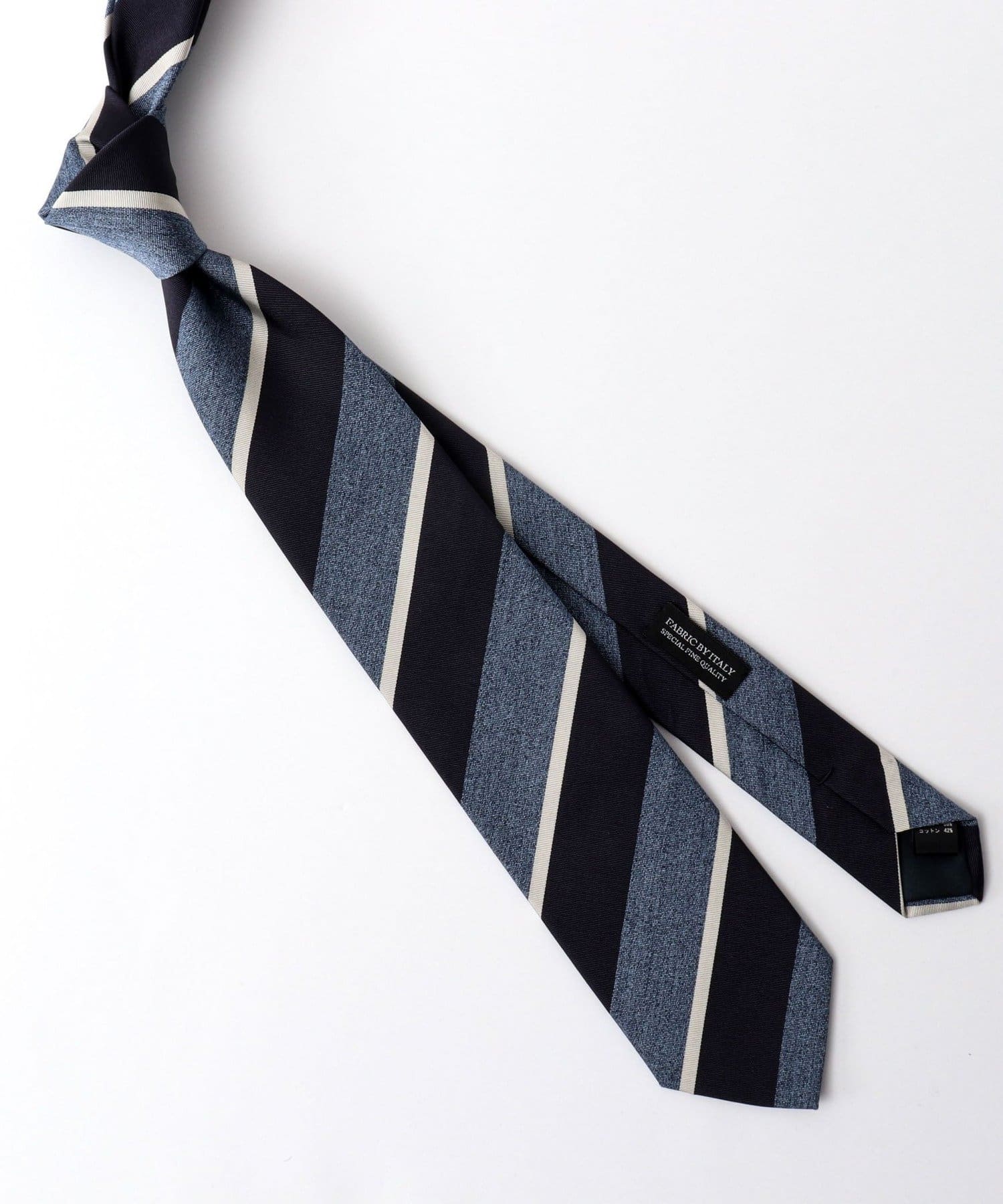 現代のトレンドに合わせて柄や配色を組んだ最高級生地を選定し、デザインの細部にまでこだわったネクタイは、国内の縫製工場にて一本一本手縫いで仕立てられています。裏地にもこだわり、より高級感のあるシルクを使用しています。