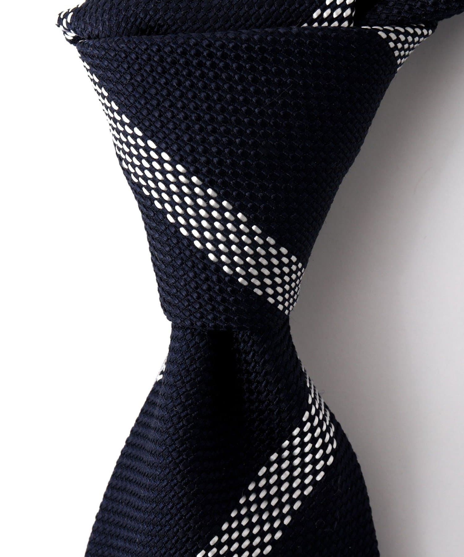 縫い糸の先端に余裕をもたせることで、ネクタイを結ぶ際にスルスルと動き、縫い糸と生地の破損を防ぎます。